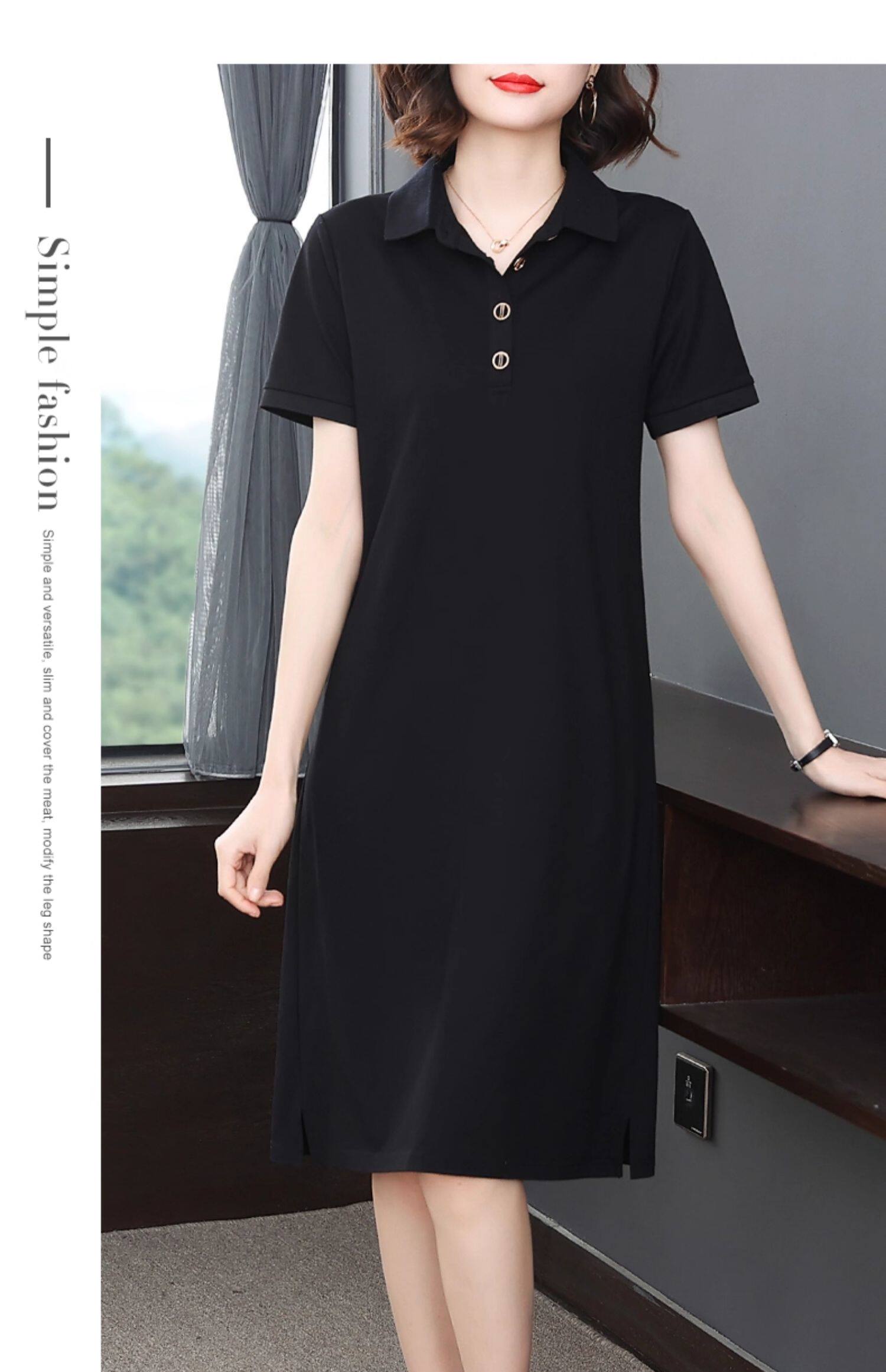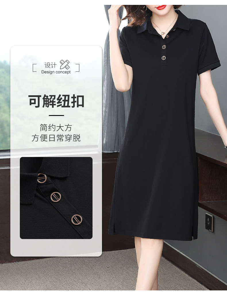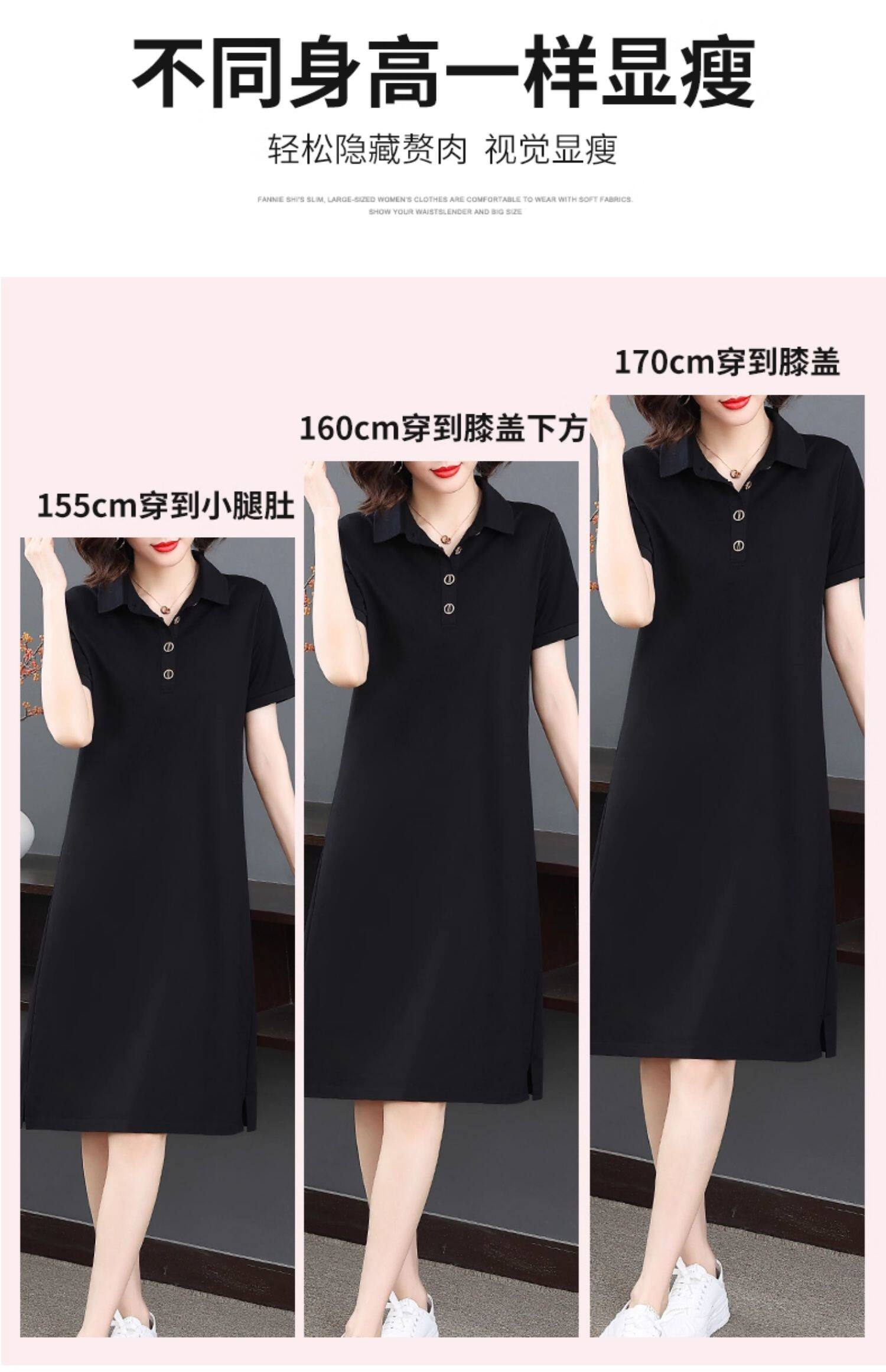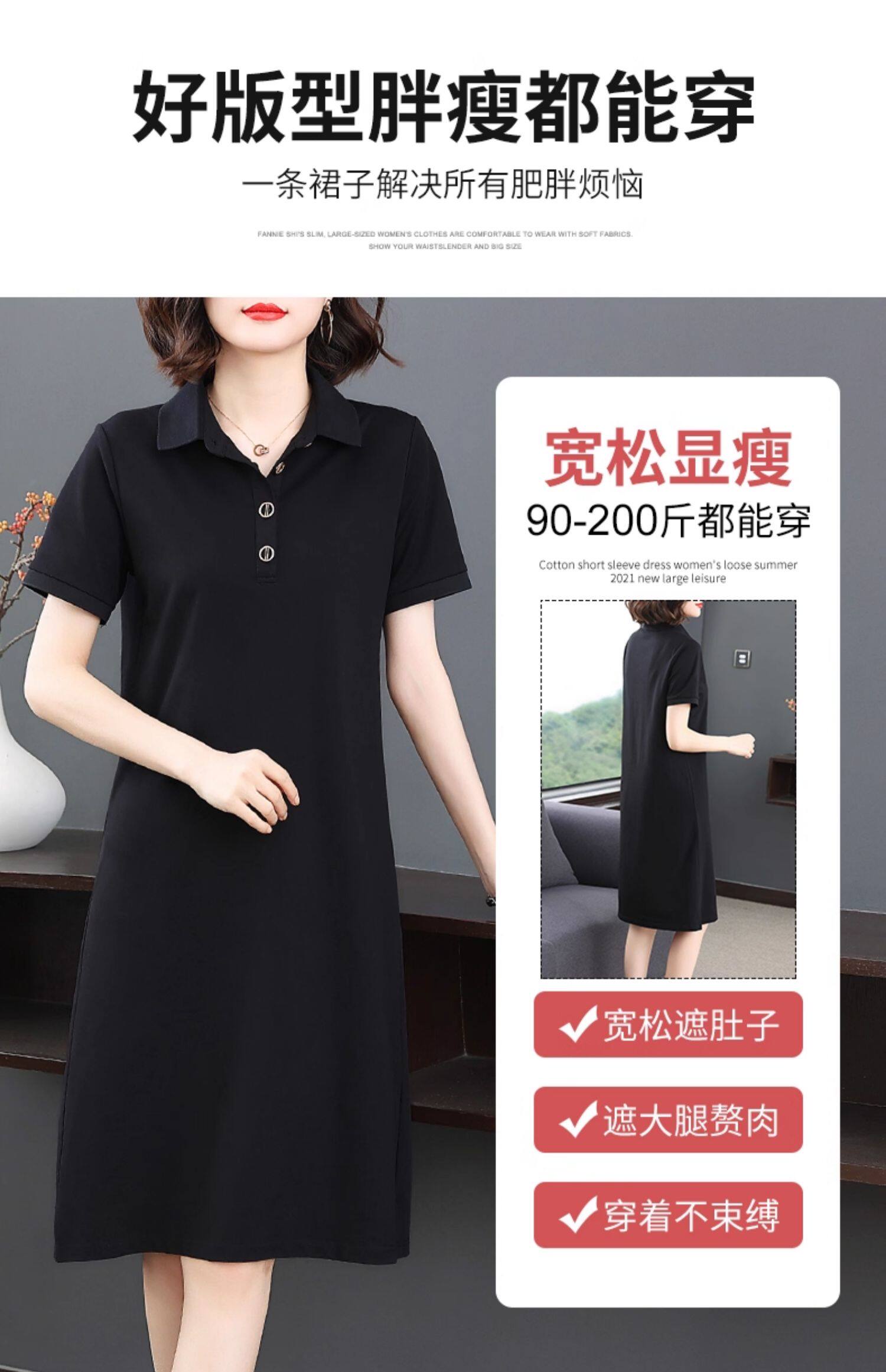 休闲连衣裙女夏季2025新款黑色大码胖mm遮肚显瘦中长款polo领裙子