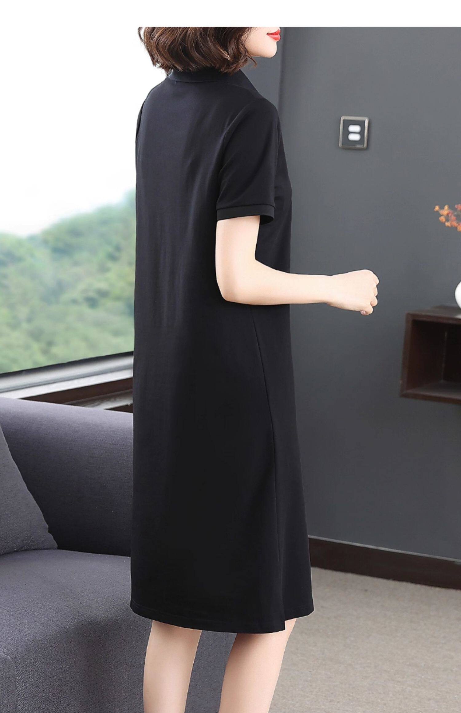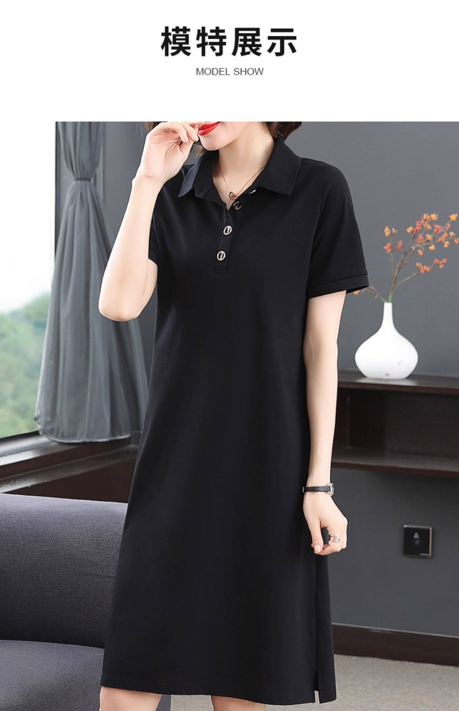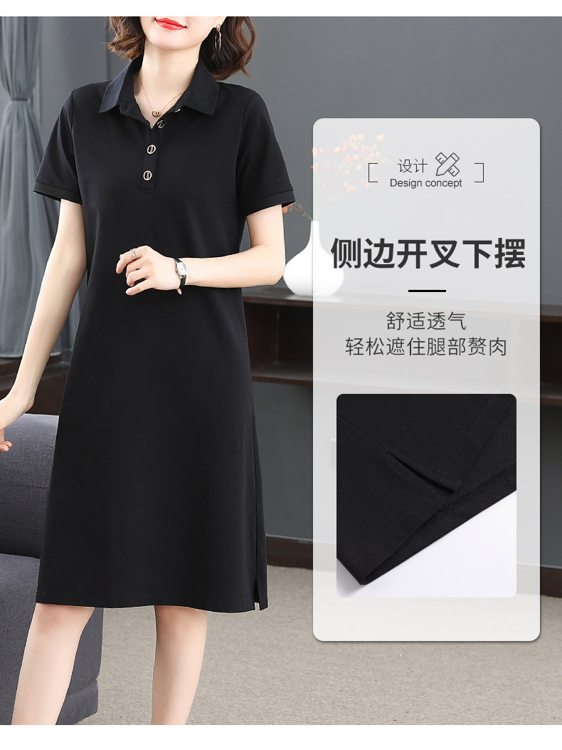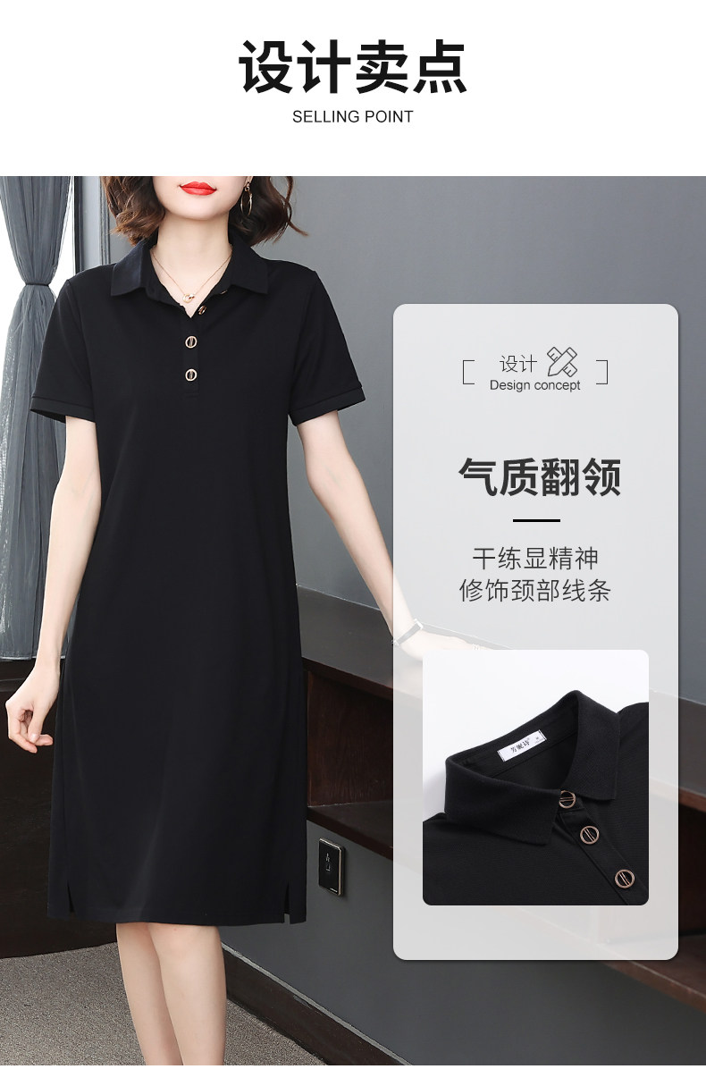 休闲连衣裙女夏季2025新款黑色大码胖mm遮肚显瘦中长款polo领裙子