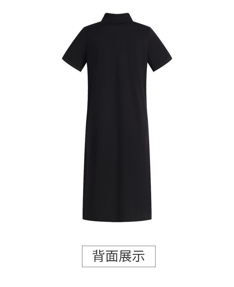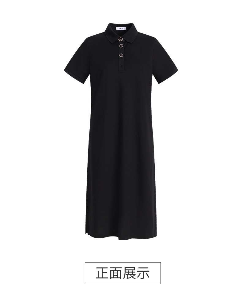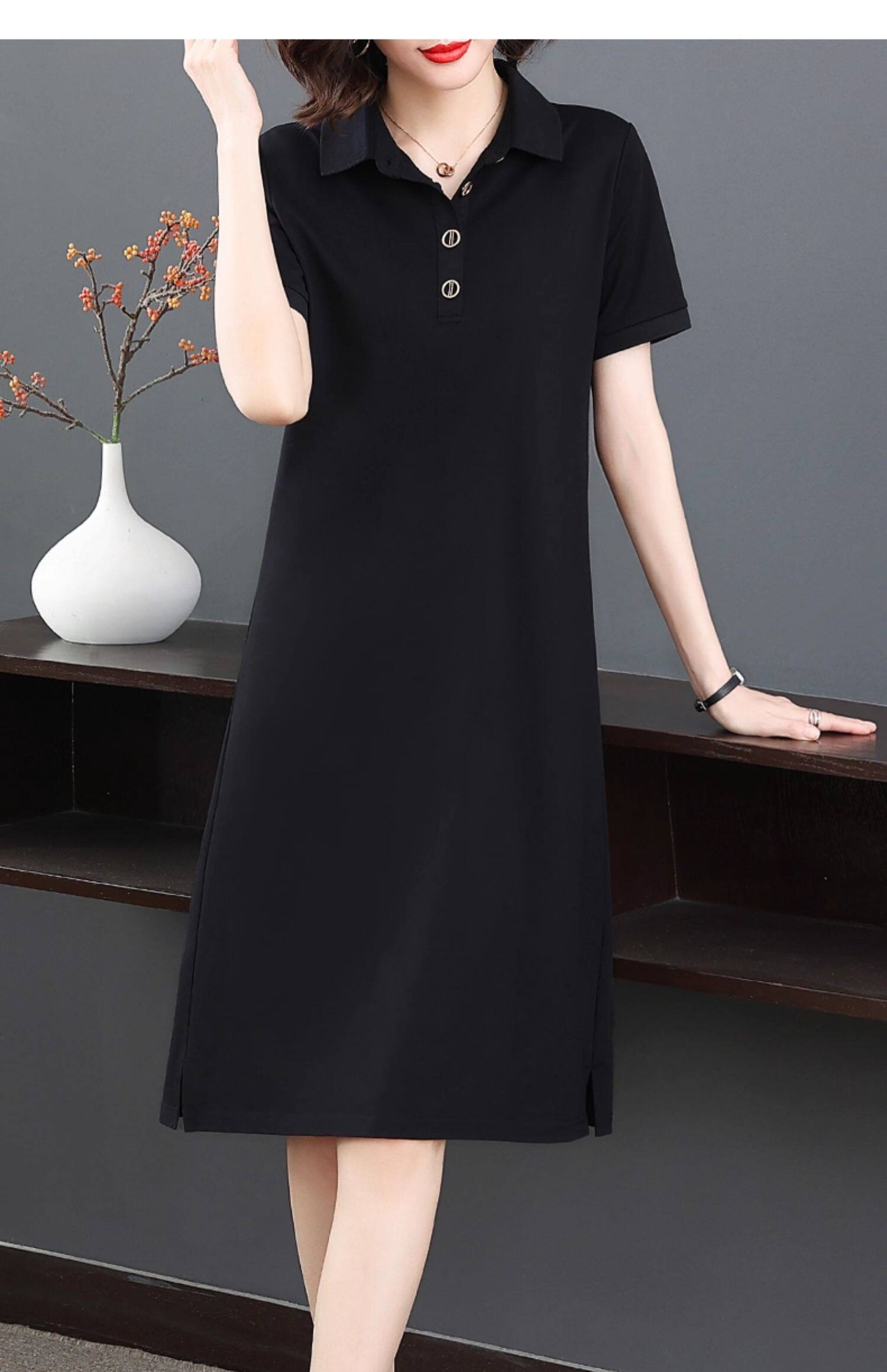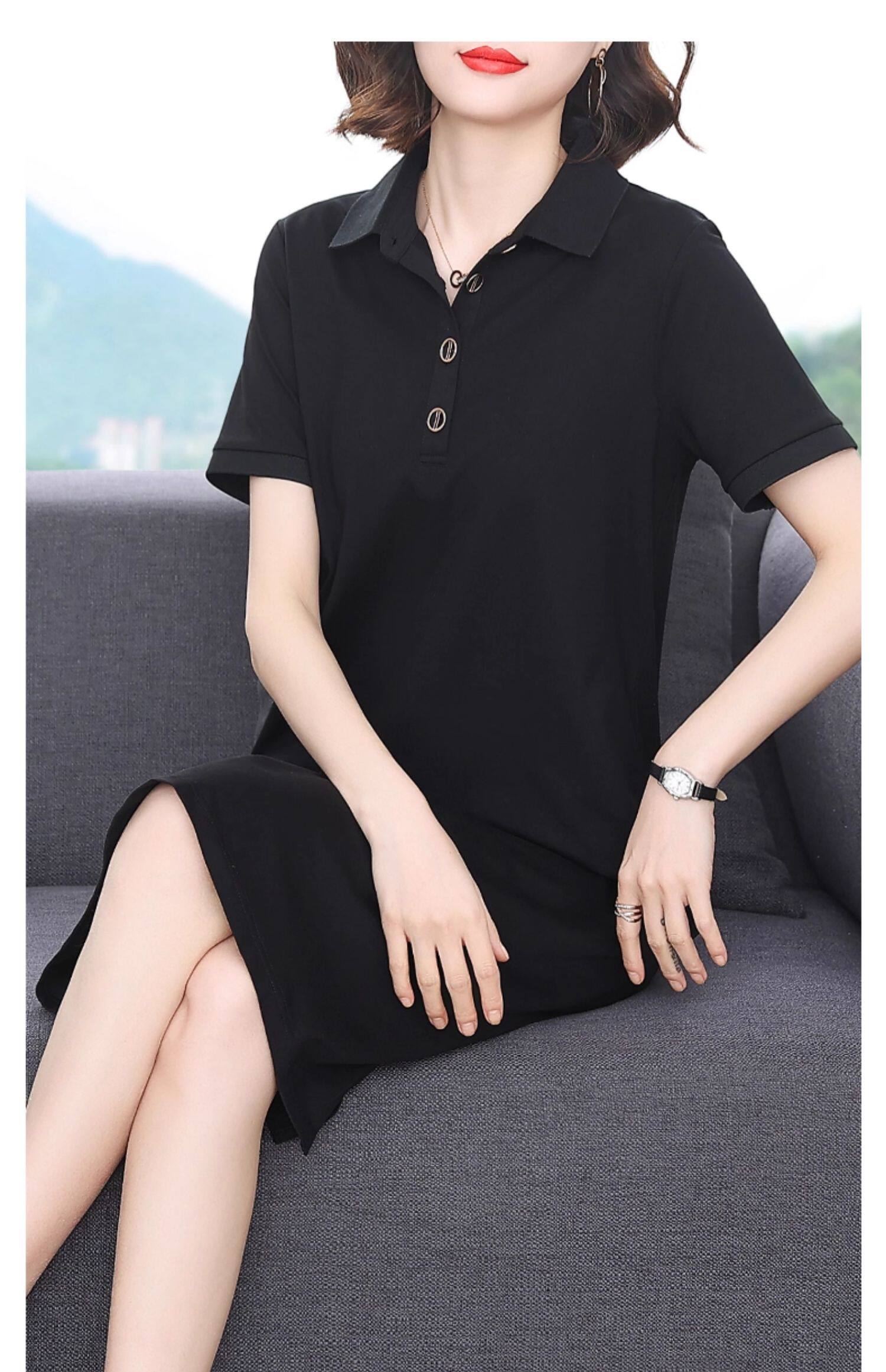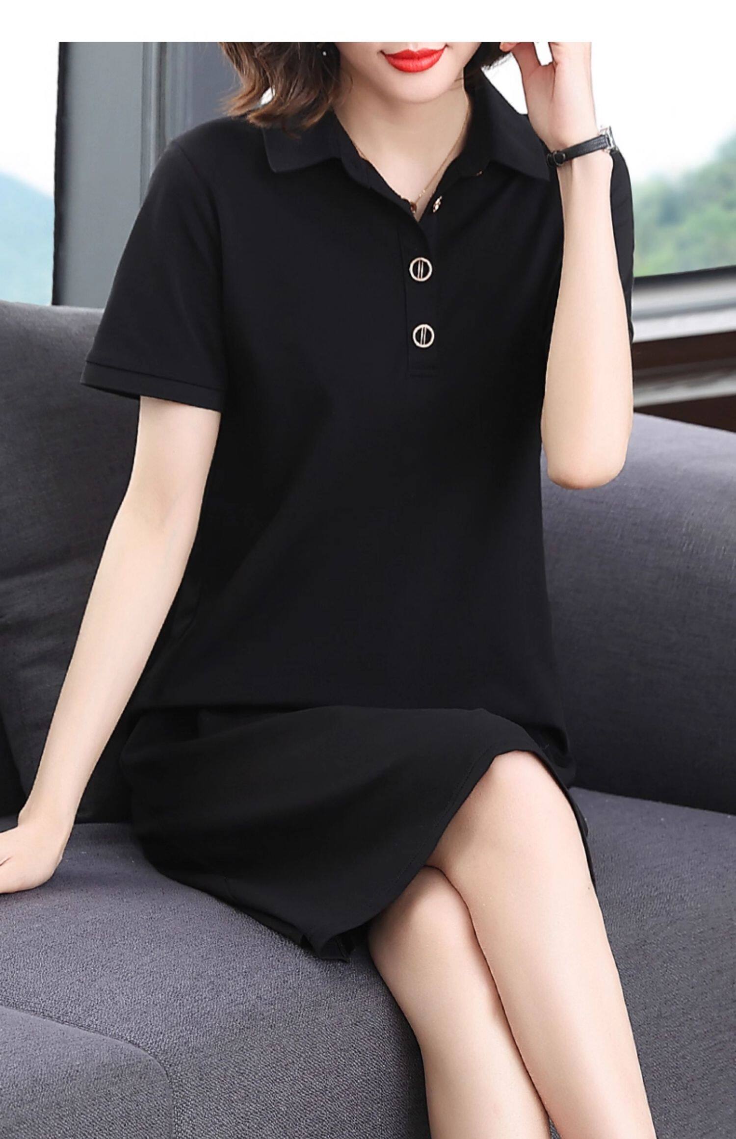 休闲连衣裙女夏季2025新款黑色大码胖mm遮肚显瘦中长款polo领裙子