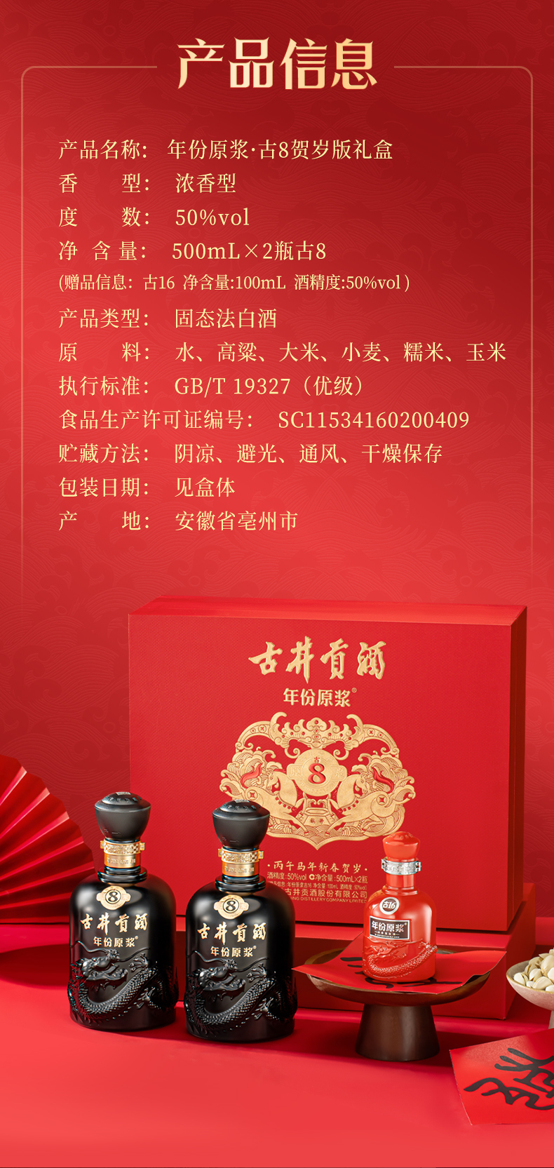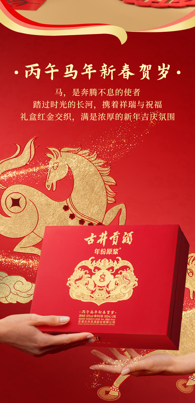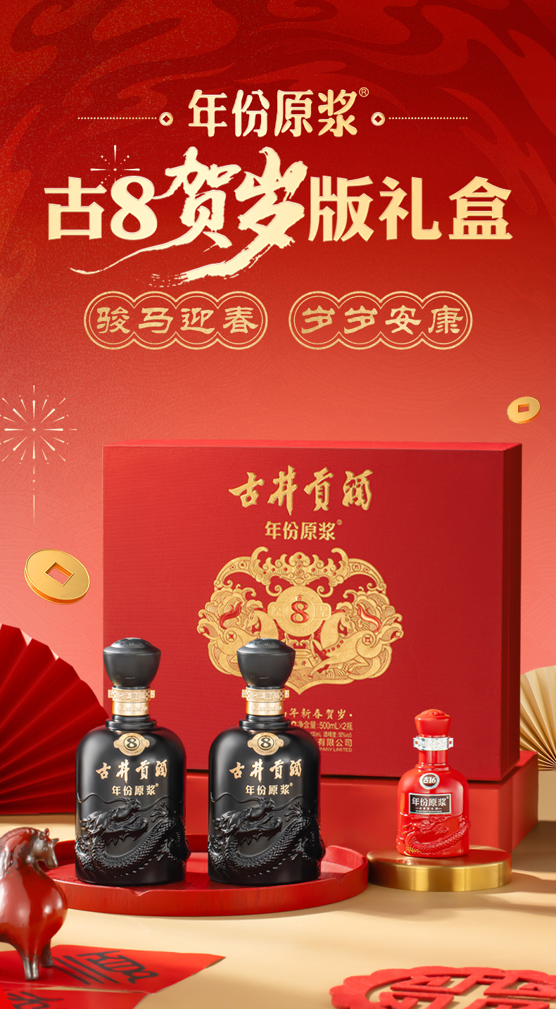 古井贡酒年份原浆古8双瓶大礼盒丙午马年贺岁版 50度500ml*2瓶