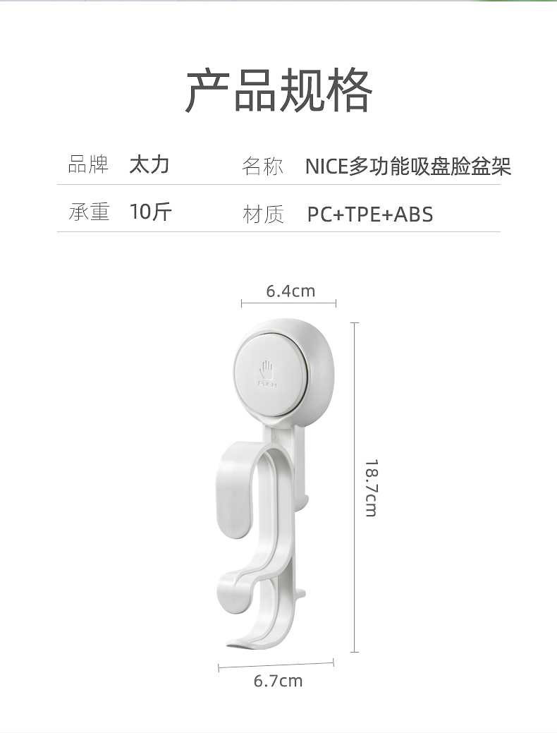 太力(TAILI)脸盘吸盘挂钩单个装AW595