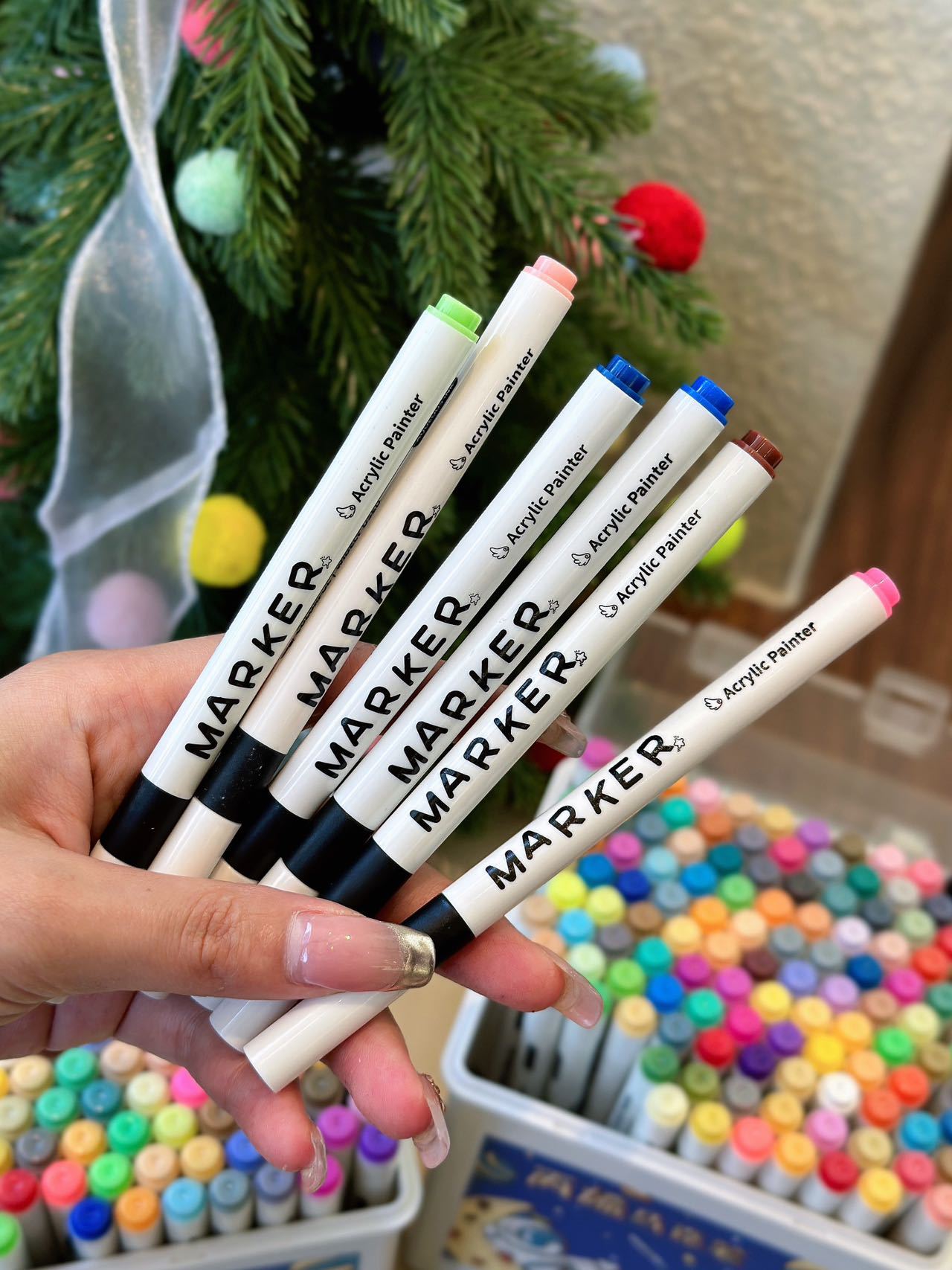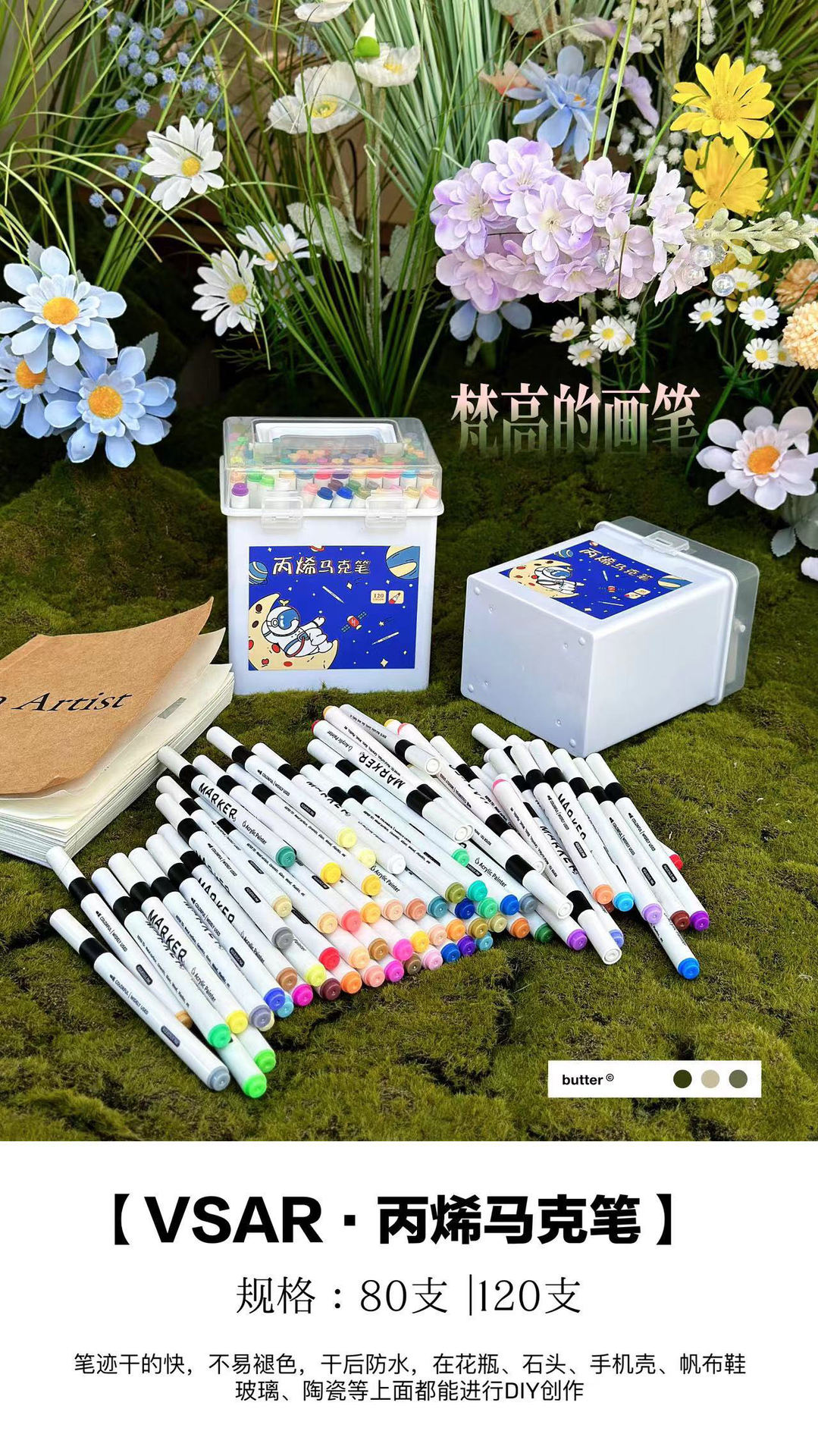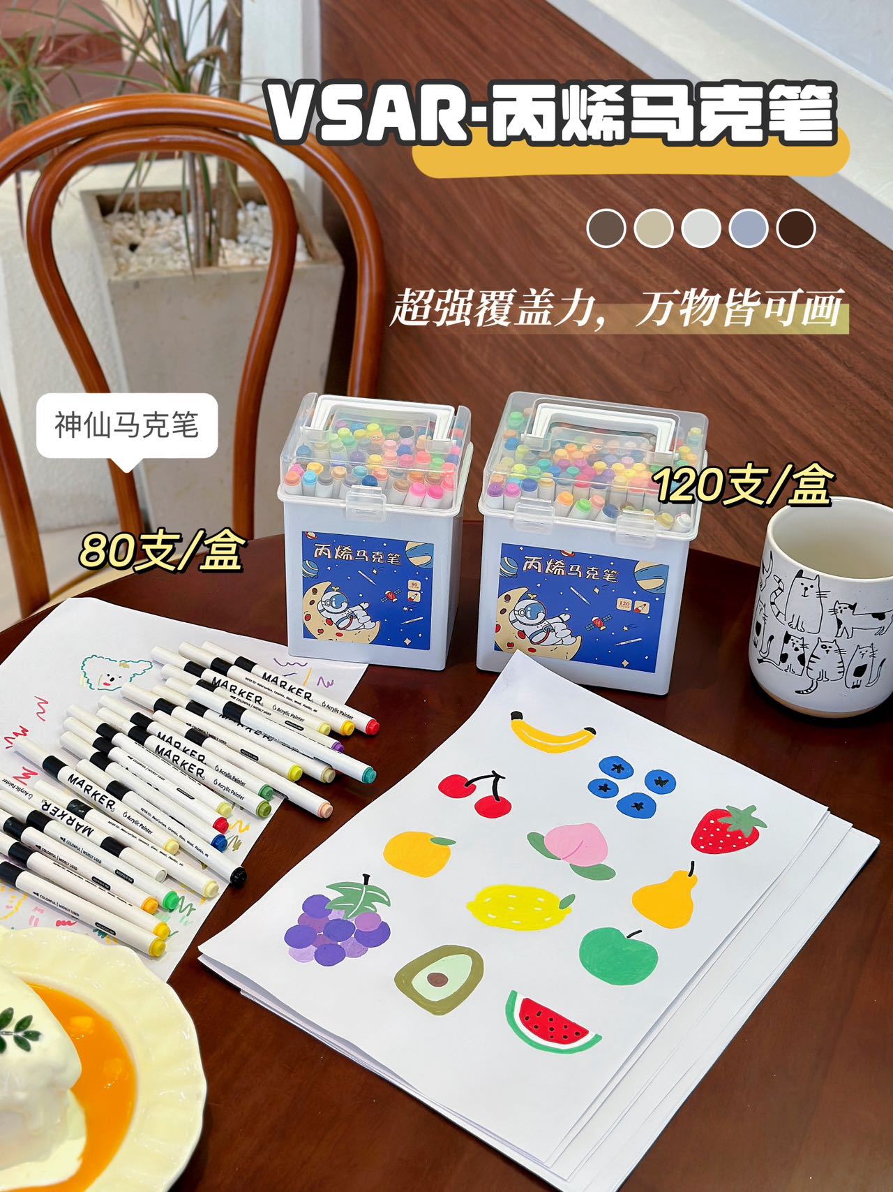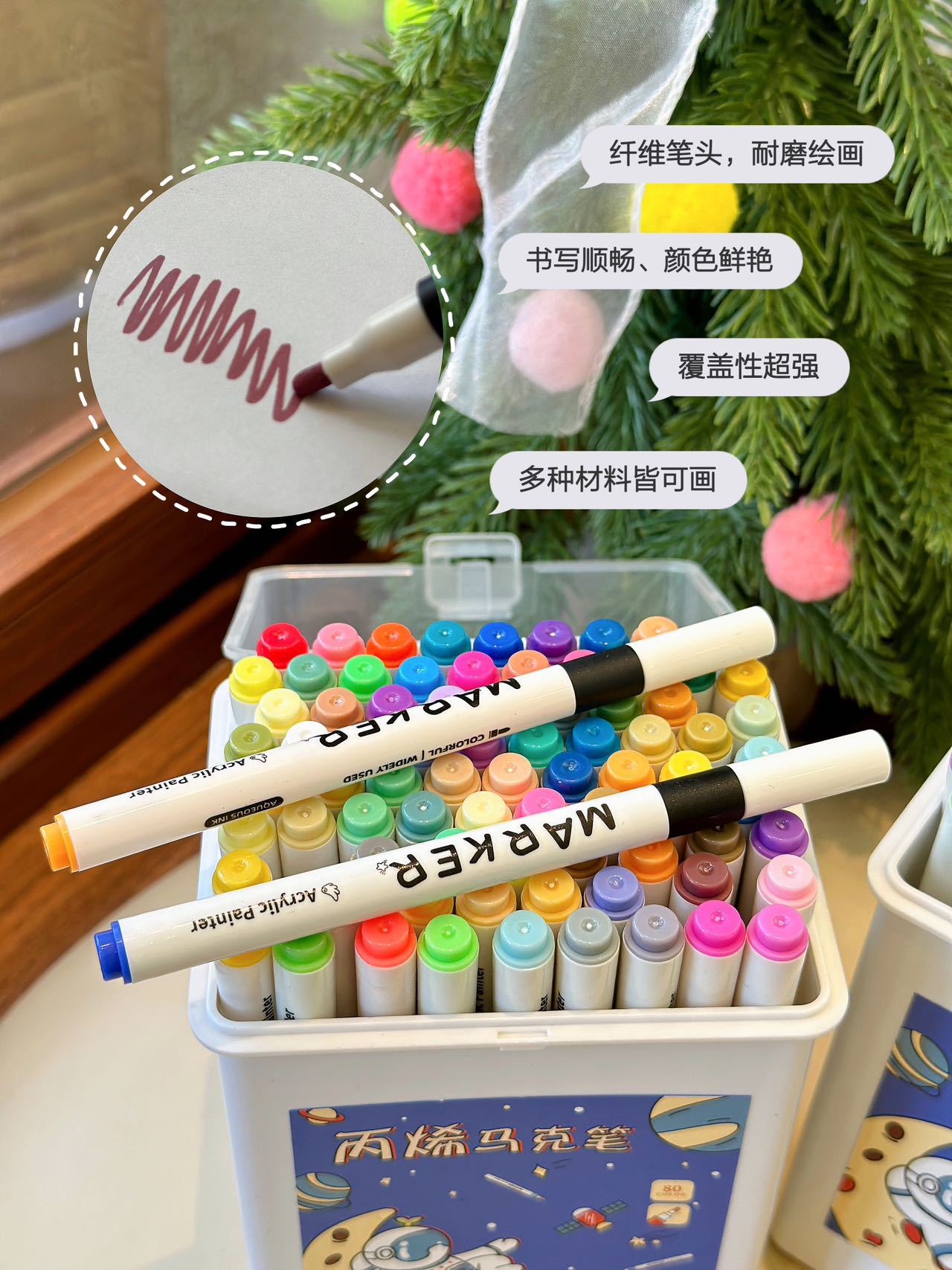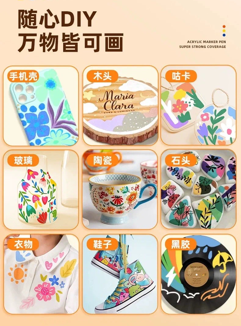 【赠手提盒】39.9元120色80色丙烯笔 可叠色覆盖力强,黑卡纸、石头、玻璃瓶、陶瓷都能上色,孩子轻松秒变小画家!