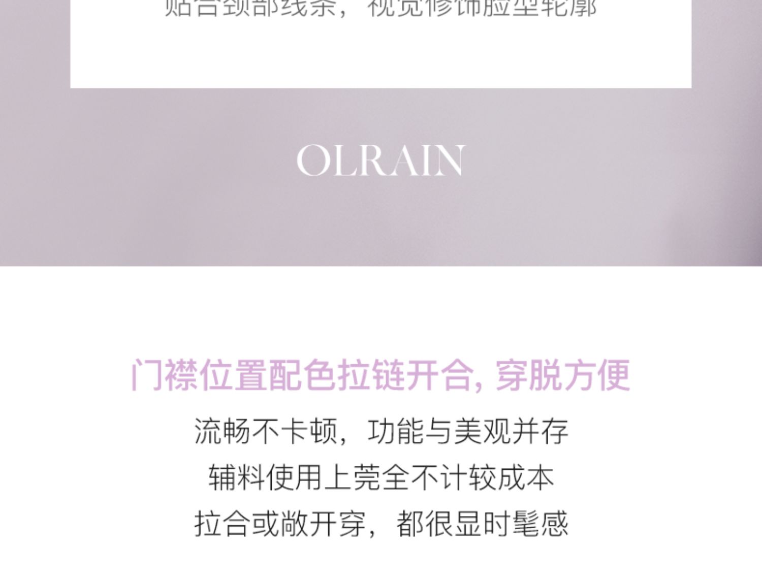 - “精致”是欧芮儿olrain品牌文化的核心,欧芮儿认为,精致的女人,不但要外在动人,更要内在迷人,内外兼修,有魅力、有气质、有内涵,自信而不自傲,优雅而不矫揉,自有万种风情而不轻浮,更不故作矜持。