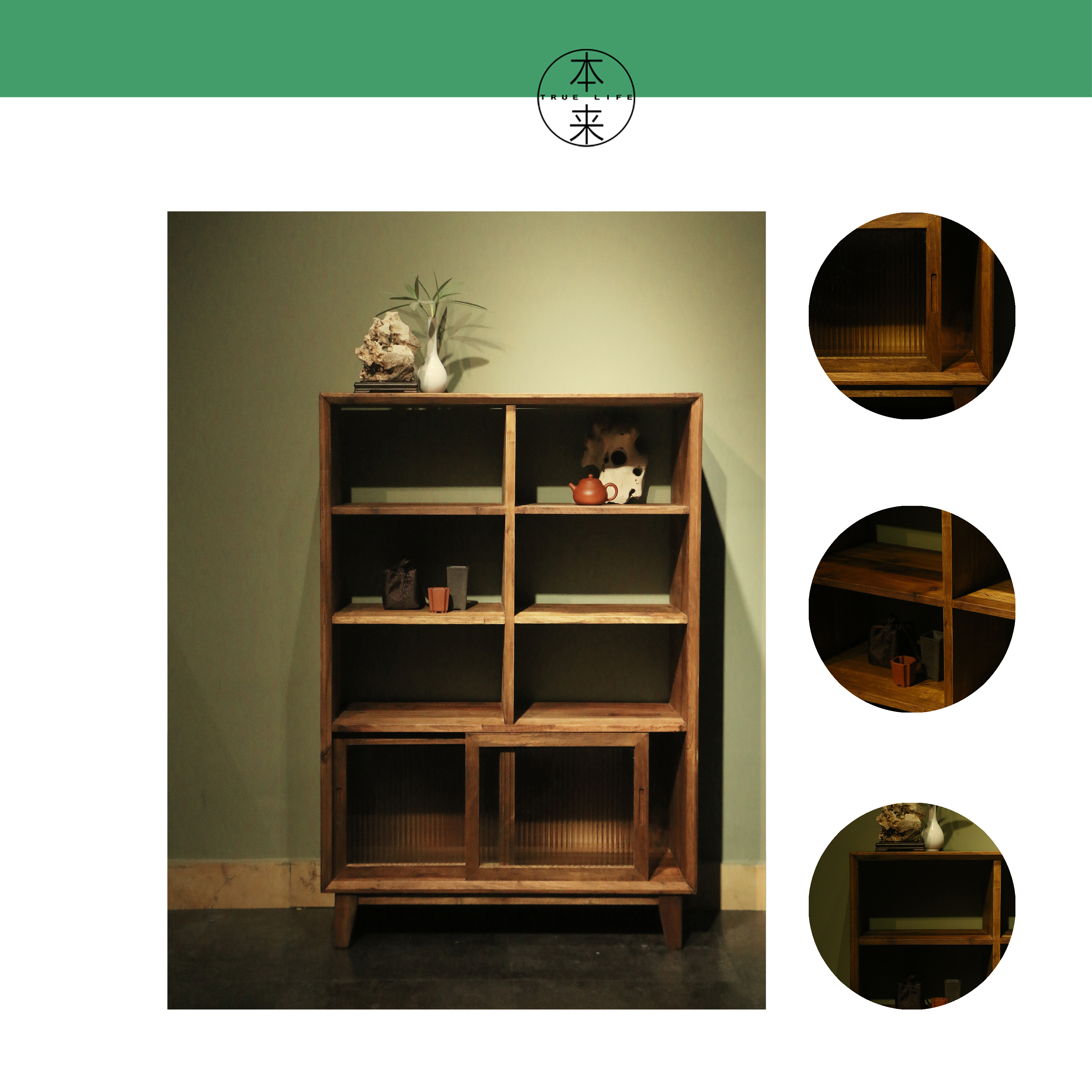 景德镇本来家居 TLBB0007-下推门长虹六格展架 长80cm*宽29cm*高118cm 厂家直发/运费自理/不含税