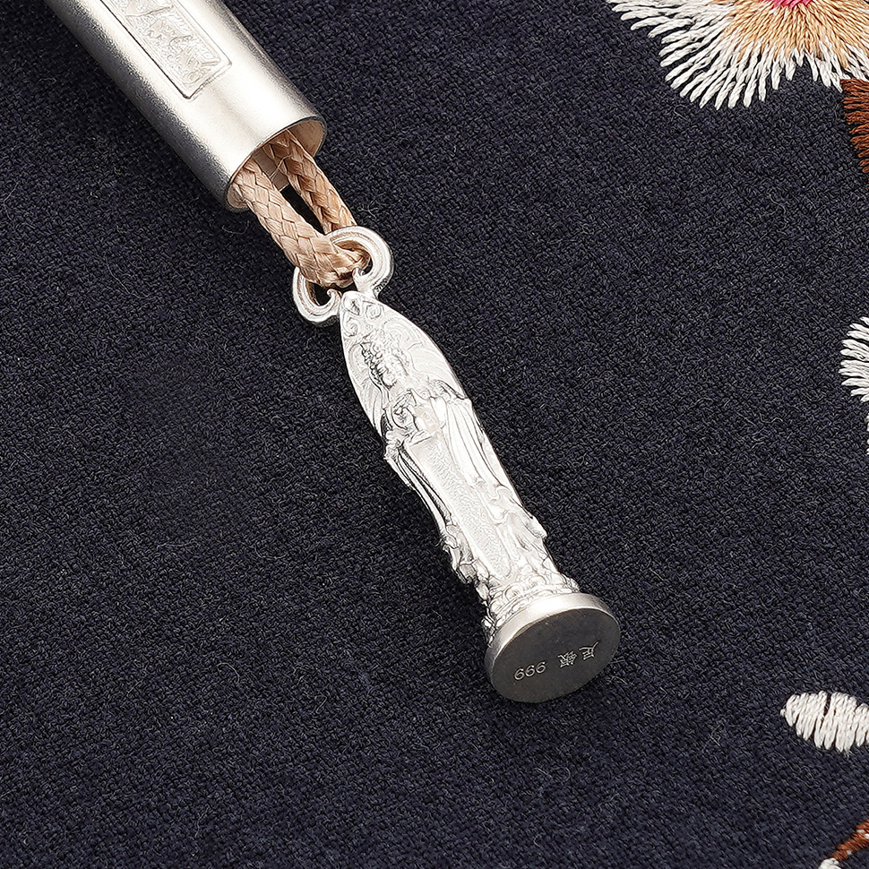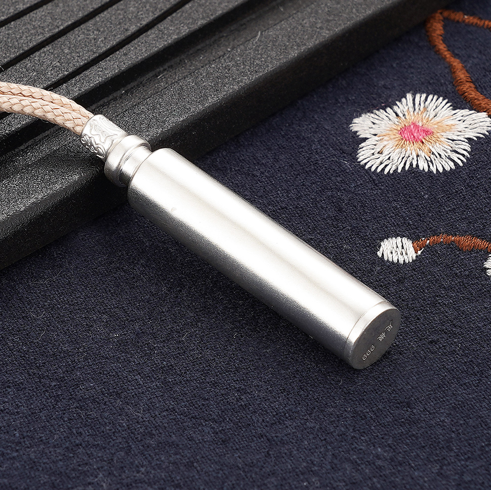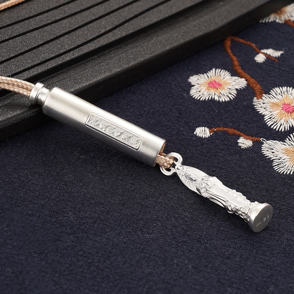 S999银净瓶观音套链项链【BJ000976】银色圆柱形带绳可抽出2101