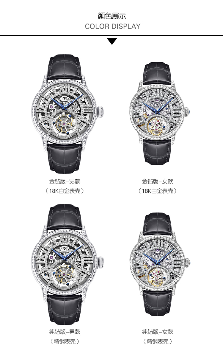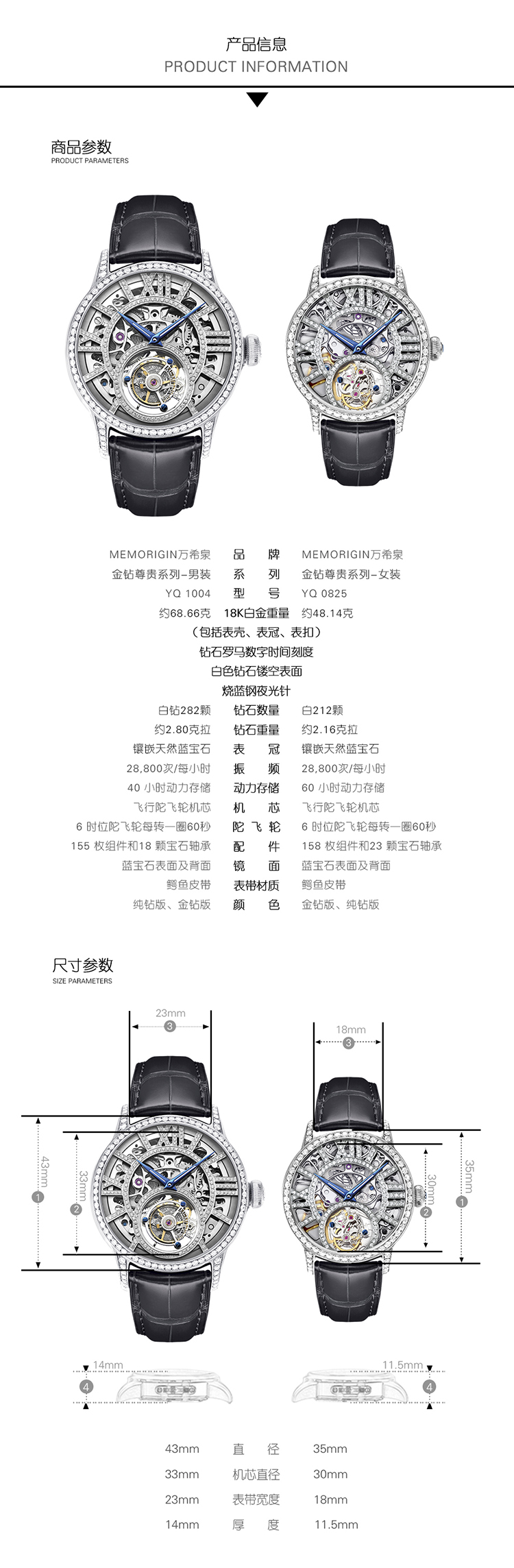 MEMORIGIN万希泉金钻尊贵系列陀飞轮情侣白金腕表钻石表机械手表