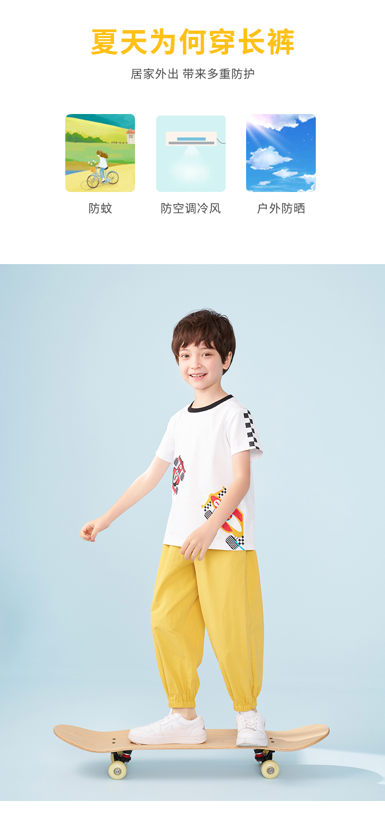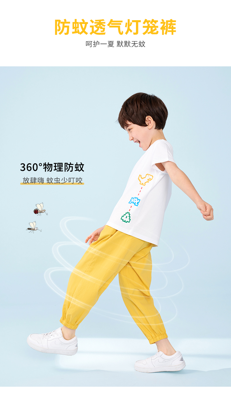 mettekids男童裤子夏季薄款防蚊裤童装儿童休闲裤中大童束脚长裤