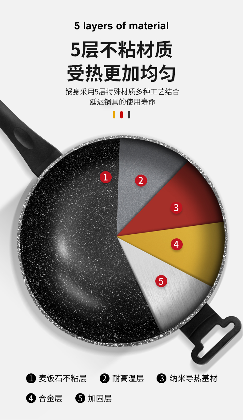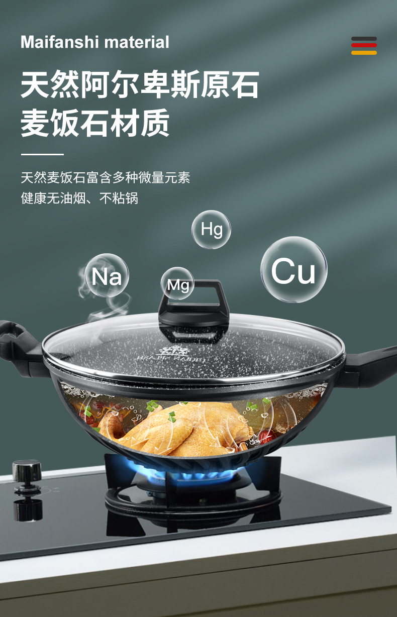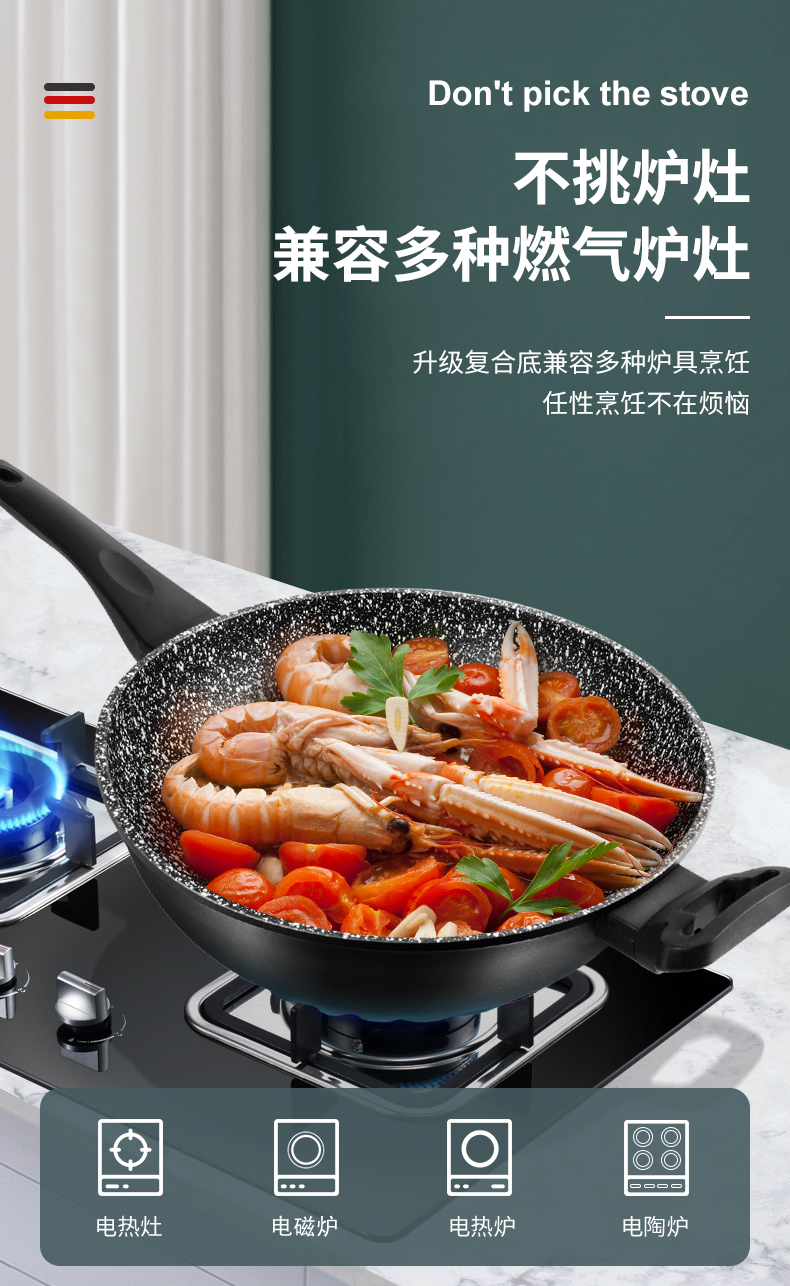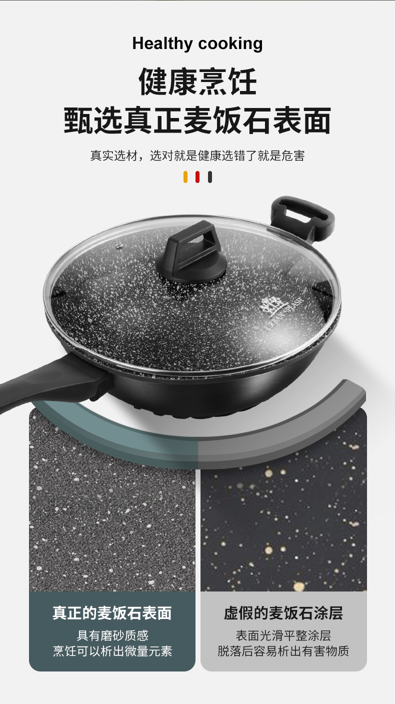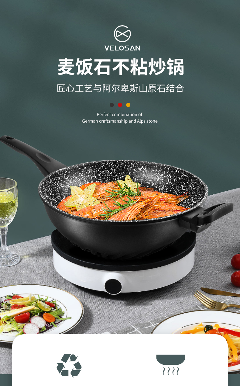 velosan麦饭石炒锅不粘锅家用炒菜无烟电磁灶煤气灶适用石锅专用
