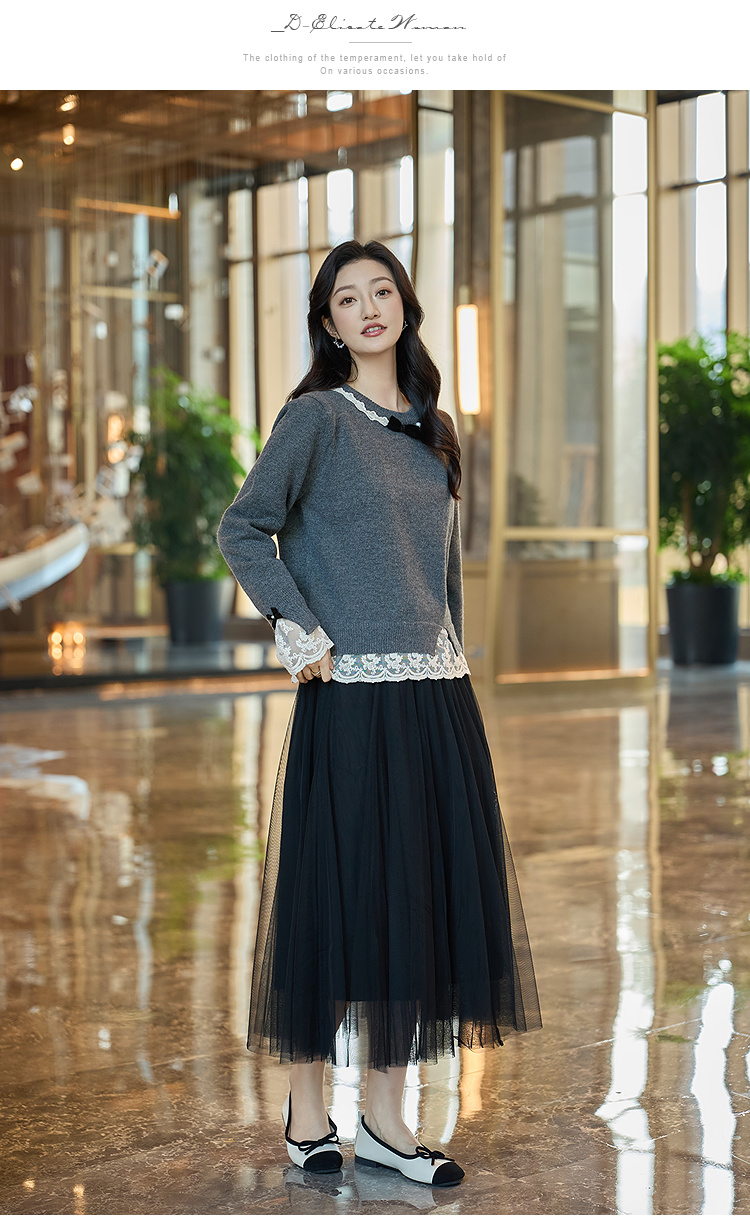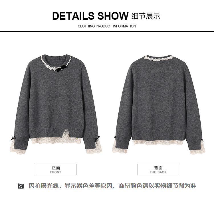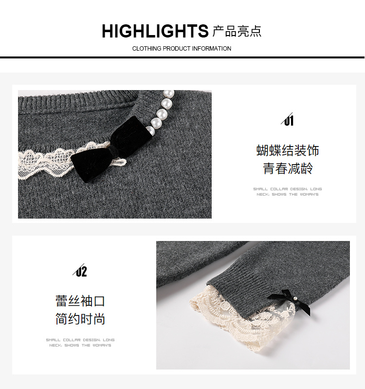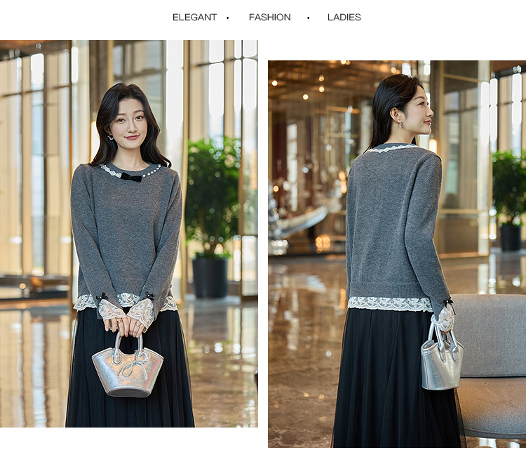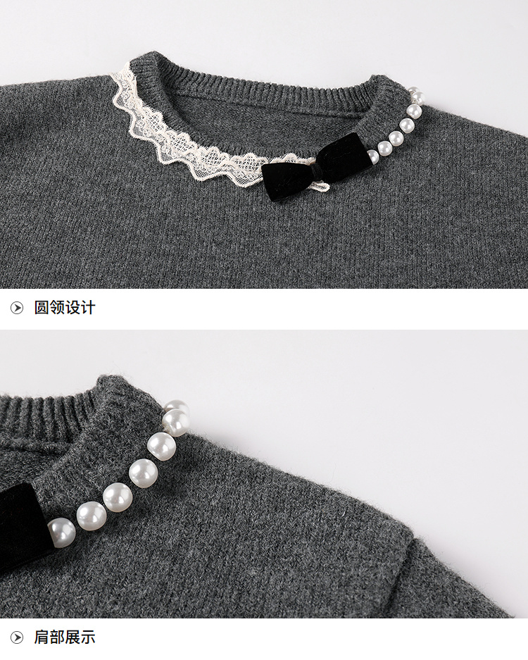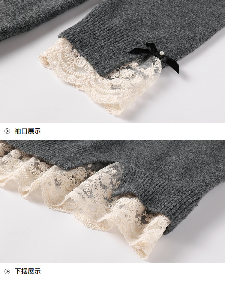 奢姿大码女装2025冬季时尚蕾丝设计圆领针织衫胖妹妹气质减龄上衣9854670713