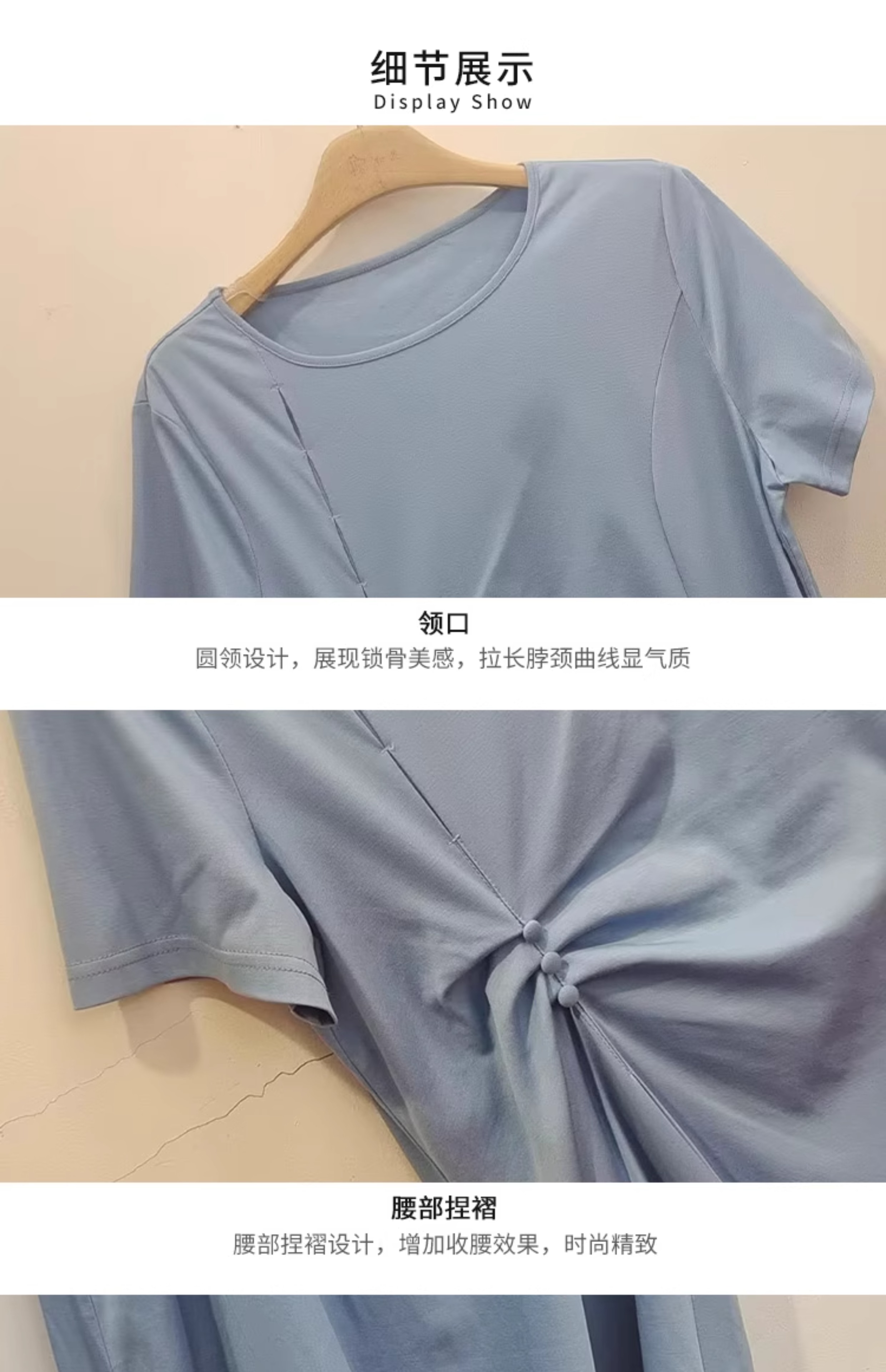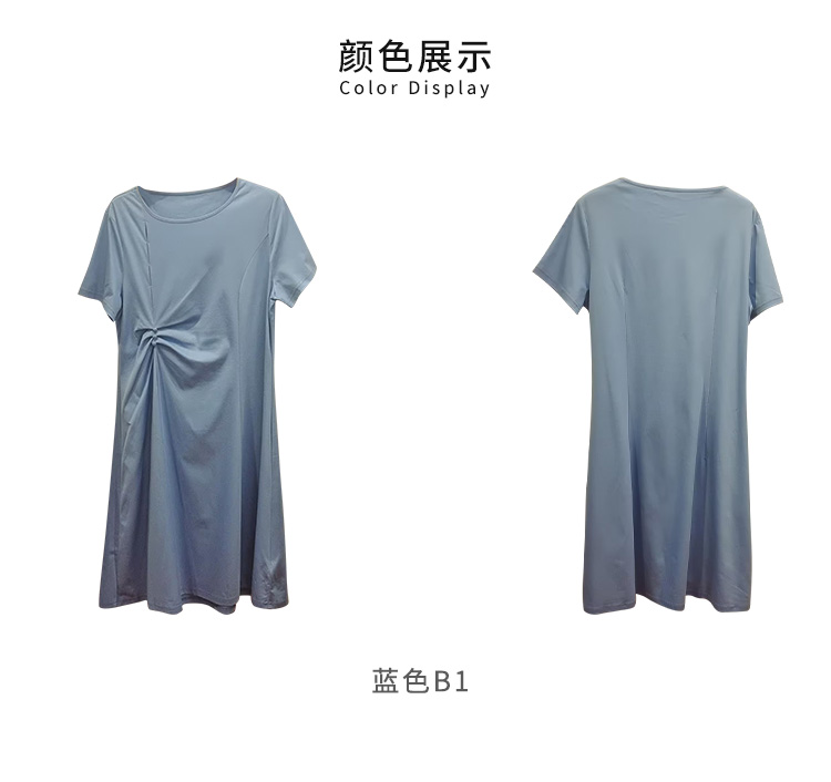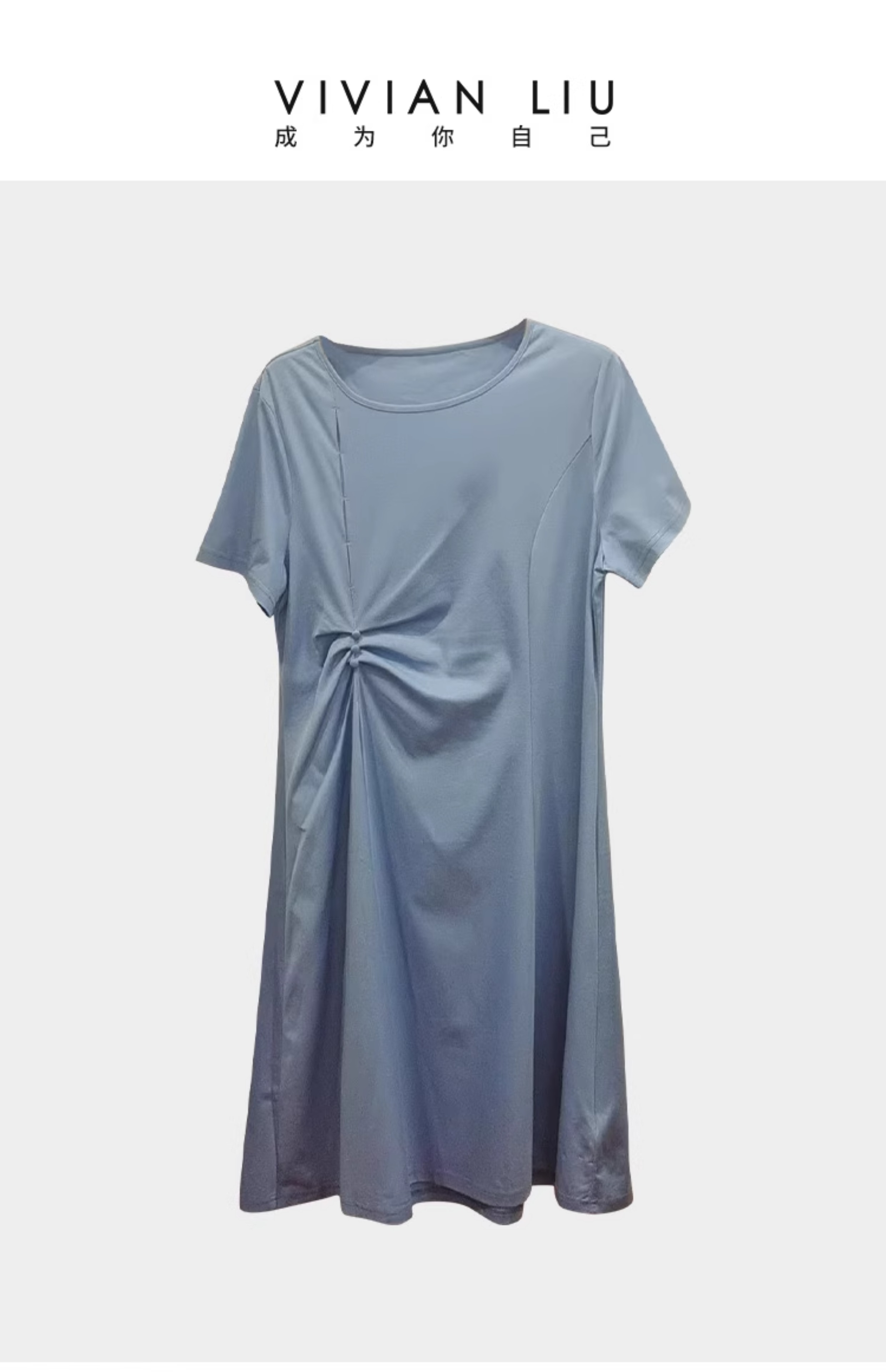 VIVIAN LIU薇薇安刘D2437402夏女装新款圆领腰部捏褶短袖连衣裙