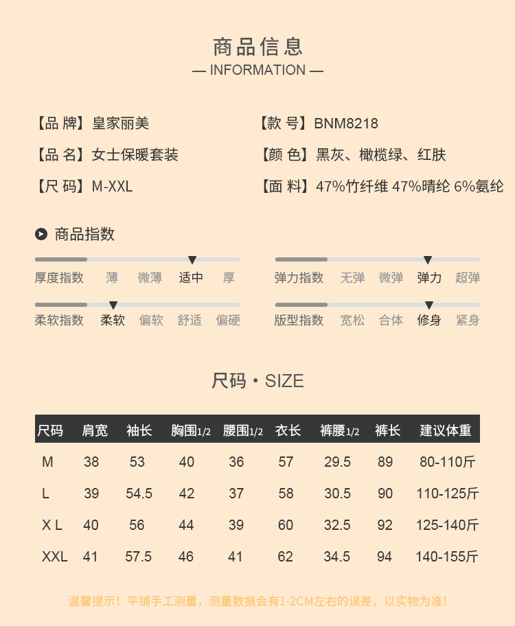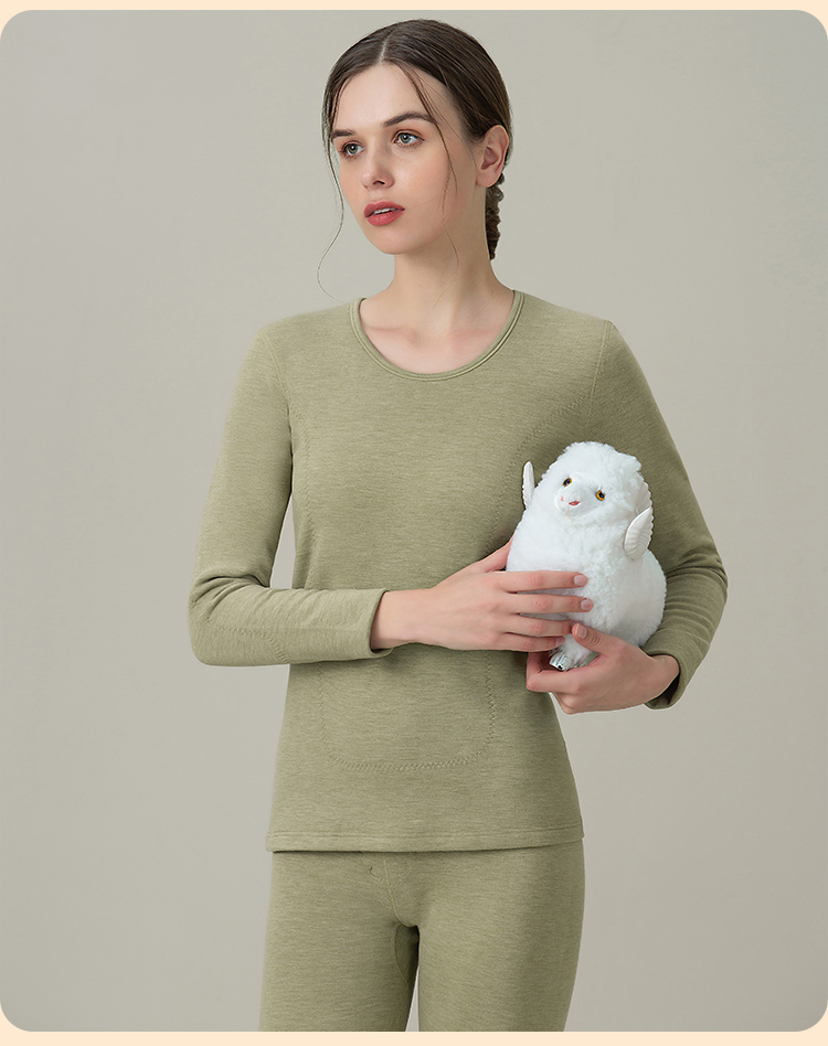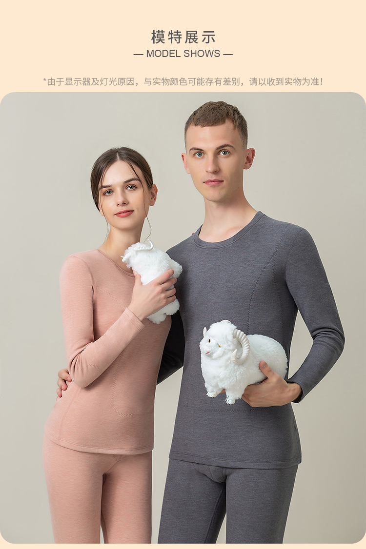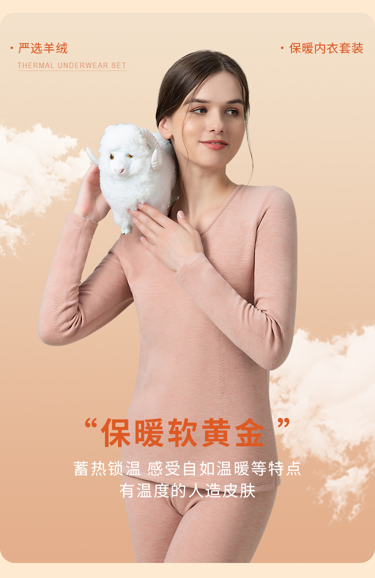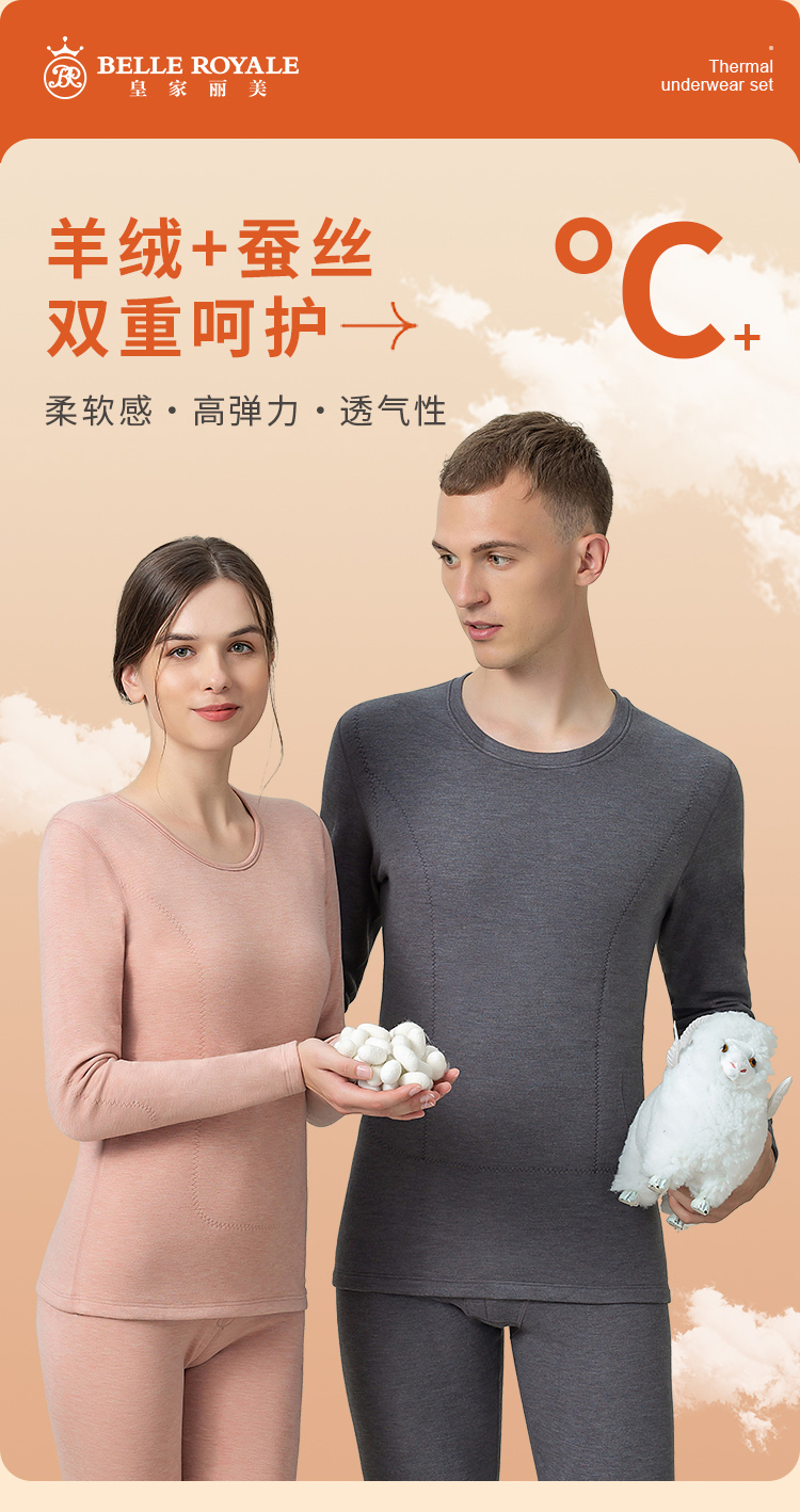 皇家丽美冬季羊绒蚕丝580g红参精华贴片保暖内衣情侣款女套装BNM8218
