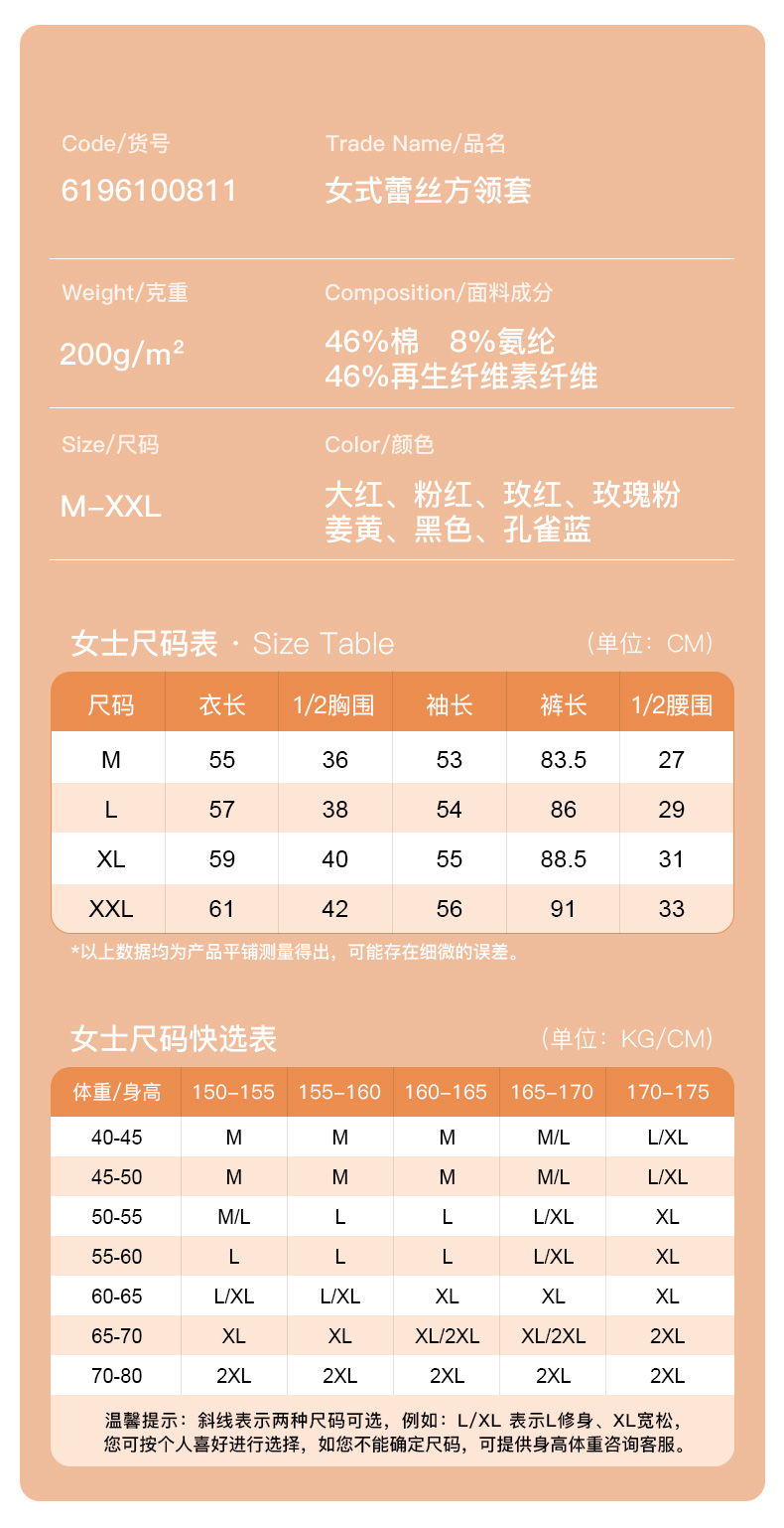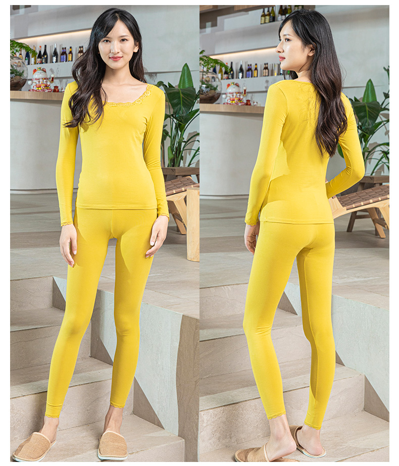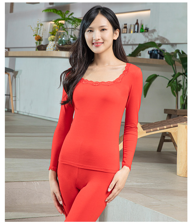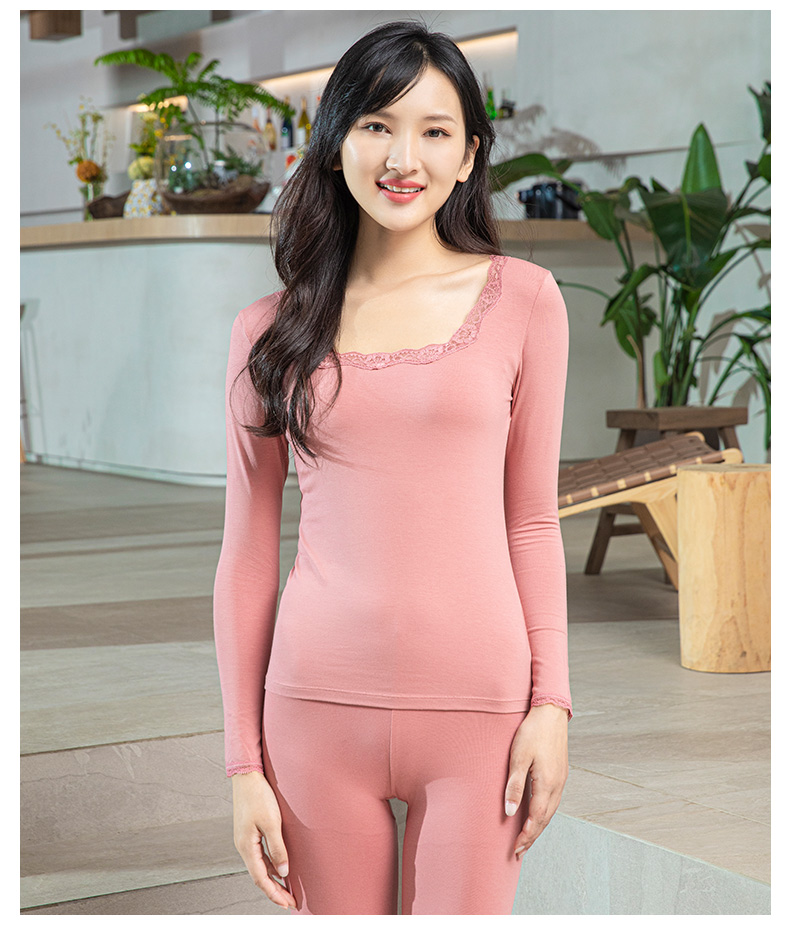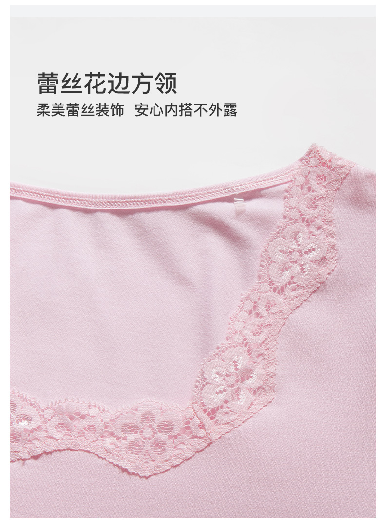爱帝女士基础打底内衣套蕾丝方领秋衣秋裤套装