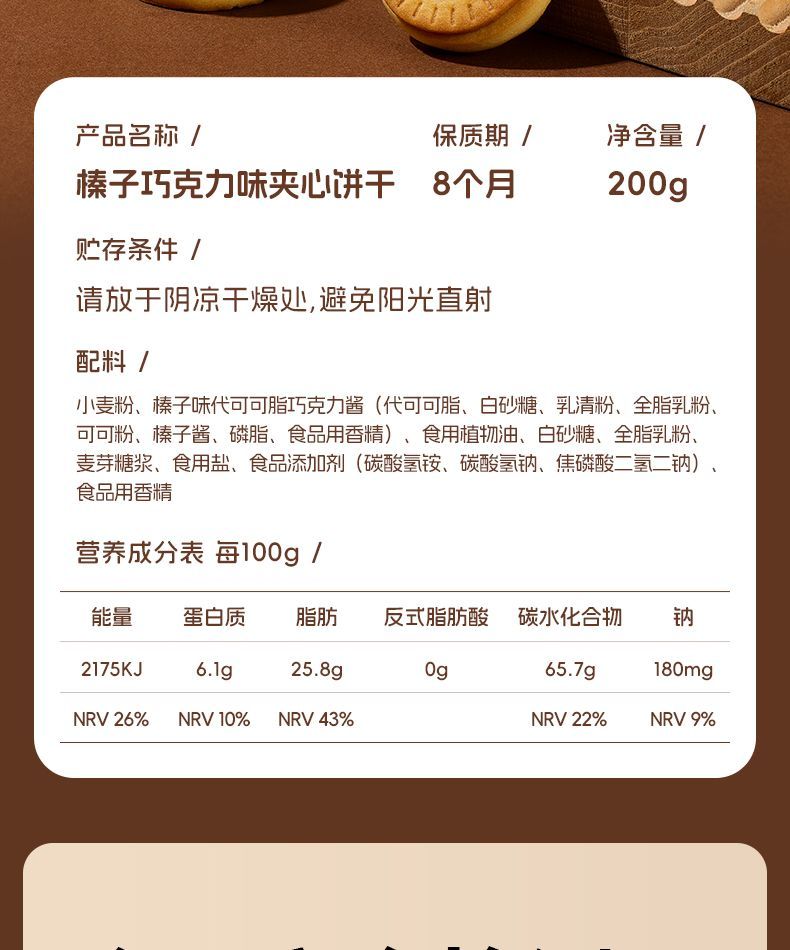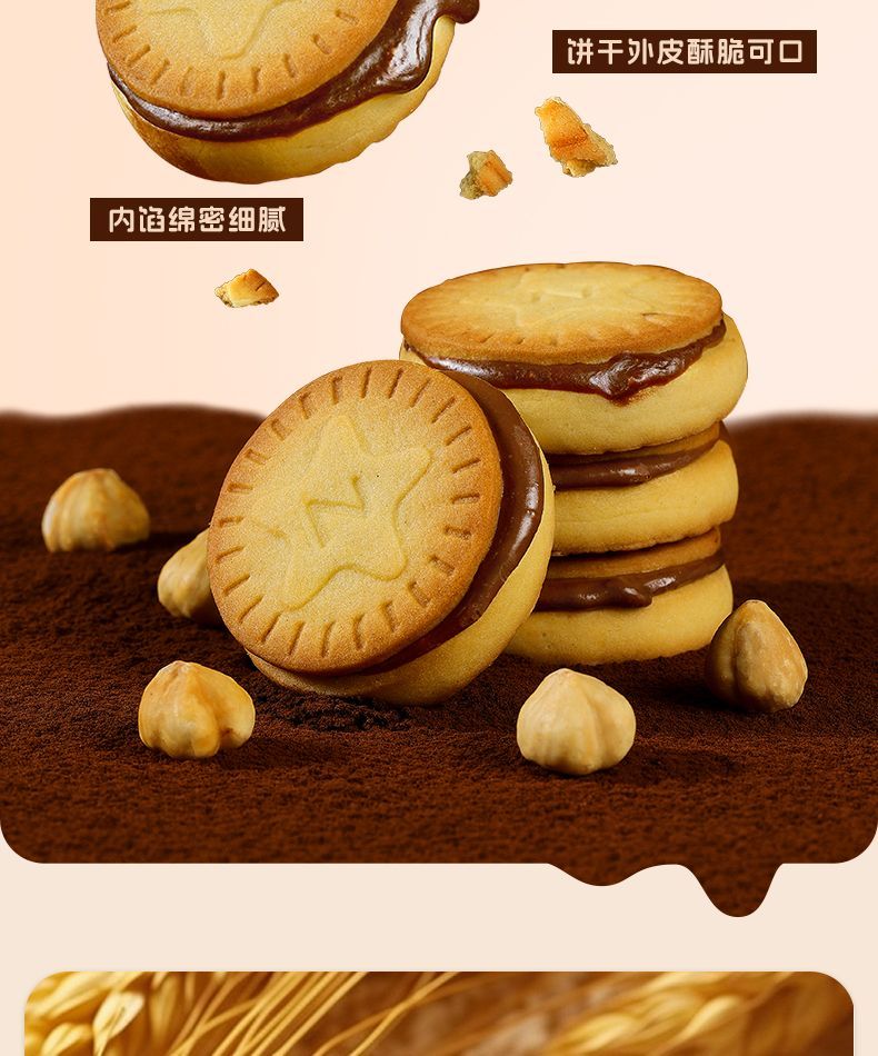 【暴肌独角兽】榛子巧克力夹心饼干200g高颜值曲奇网红同款零食品