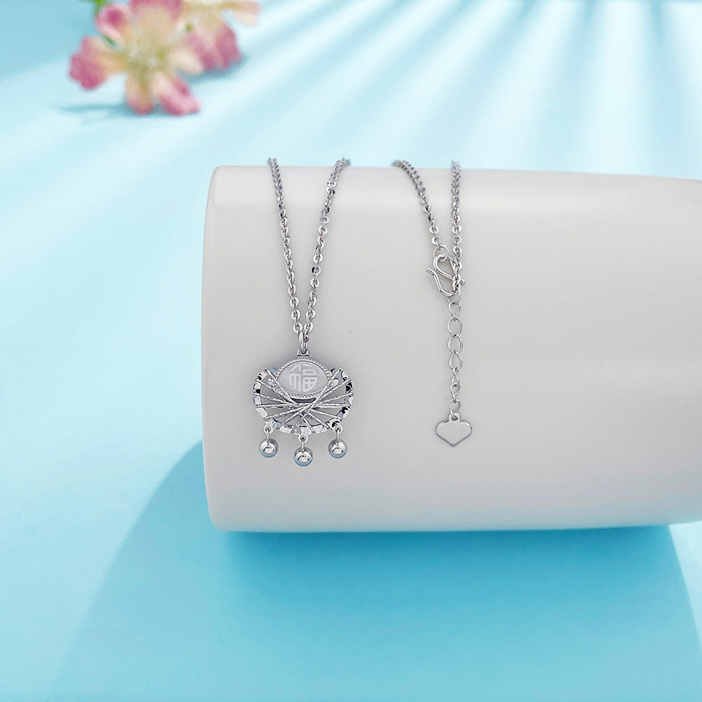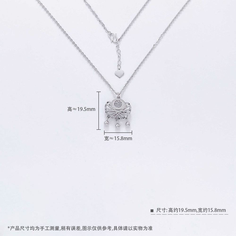 【限时8.8折】【线上铂金馆】PT950 #绕线 【精品】铂金镂空调节绕线福锁铃铛流苏圆满福字锁包套链(BFPTTL00040)预售产品下单后不退款不退货不换货不补差价)