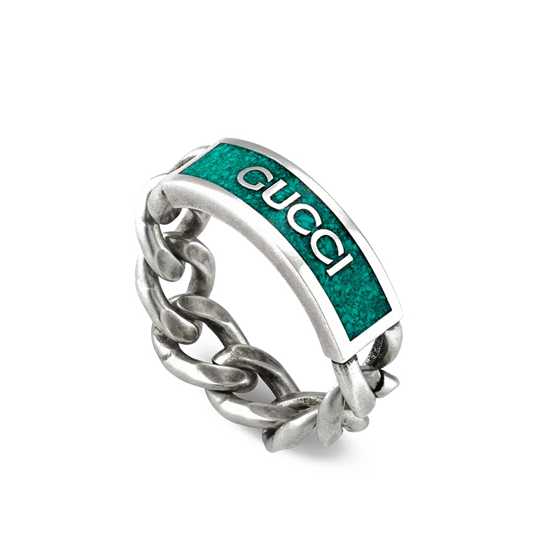 【包税】GUCCI/古驰 22春夏新款 925纯银孔雀绿珐琅马衔索链徽标戒指678711J84108183