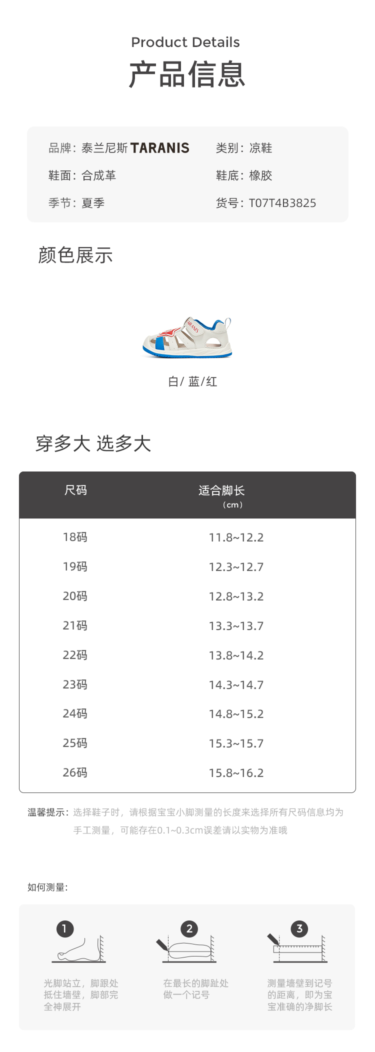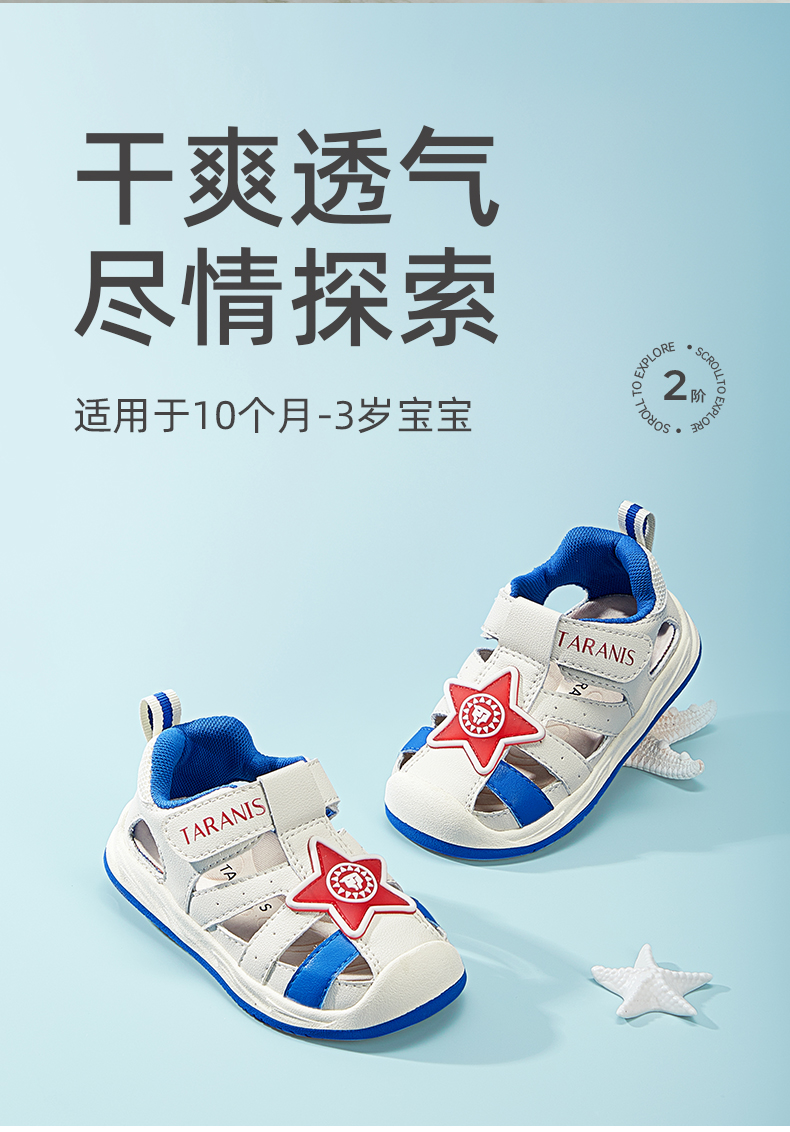 泰兰尼斯夏季婴童段可爱五角星透气凉鞋T07T4B3825