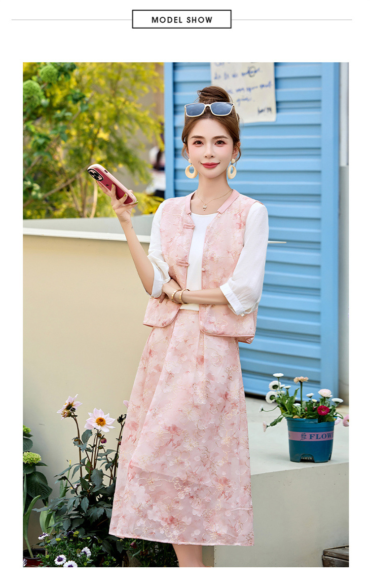 新中式裙2025夏季新款时尚绣花国风上衣配裙子一整套LDB2826