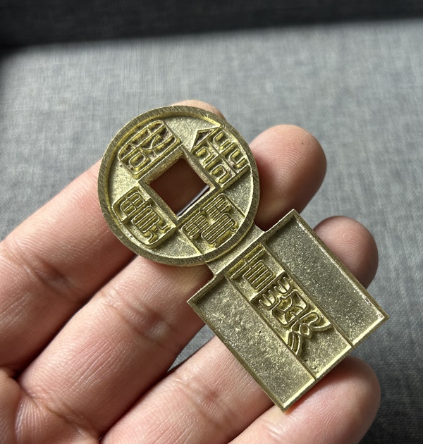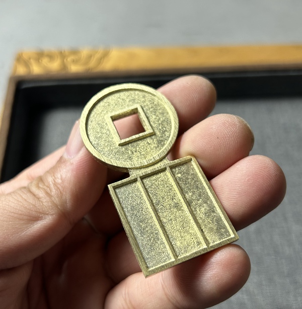 古法翻砂铸造,非遗传承。限量制作。 纯铜古法母钱翻砂铸造而成,容易上包浆。可用于文房镇纸、茶宠、杯子托、文玩垫、手把件…… 高约63.5毫米,宽约28.5毫米(底部测得数据),厚约3.4毫米(底足厚度),孔径约8.8毫米,重约34.2克(手工作品有少许误差,请知晓)。 所用的原材料采用纯铜,遵循古法、严格按照古代官铸配比;矩德泉坊手作铜币所使用的母版,采用古代真母钱直接复刻,或利用钱币拓片,纯手工雕刻母版,按照古代翻砂工艺制作,铸造后的每一枚钱币,采用手工打磨,修刀所用照片无任何优化、美图。手作铜币严格遵循古代翻砂铸造、打磨工艺进行复刻,不是现代量产的冲压工艺,所以很难做到每一枚的表面痕迹保持一致。 为了尽量还原古代钱币的文字神韵与时代铸造特征,每一枚都进行手工修刀、打磨。会有打磨痕迹、刻刀痕迹,铸造气孔或者微小沙眼,这正是手工与机器制作的区别,并非瑕疵。 定制周期:7天左右! 成本价推广:38.88元