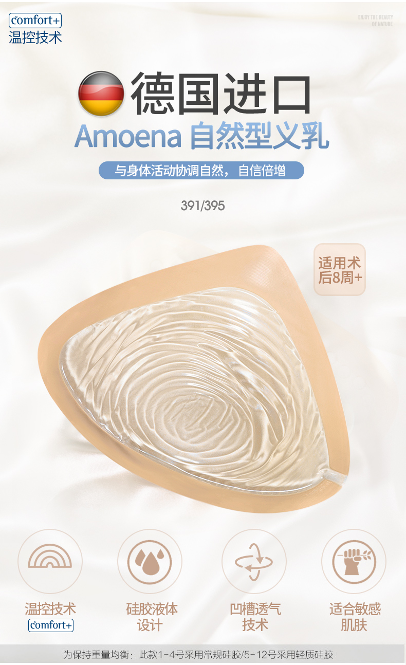 【优惠详情咨询客服】爱蒙娜 进口硅胶义乳腺癌手术后专用假胸假乳房 专利温控材料 (391自然型) 送文胸罩