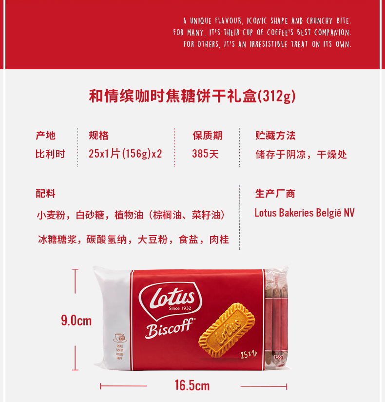 比利时和情缤咖时焦糖饼干312g/056655 口感酥脆香甜可口约50片