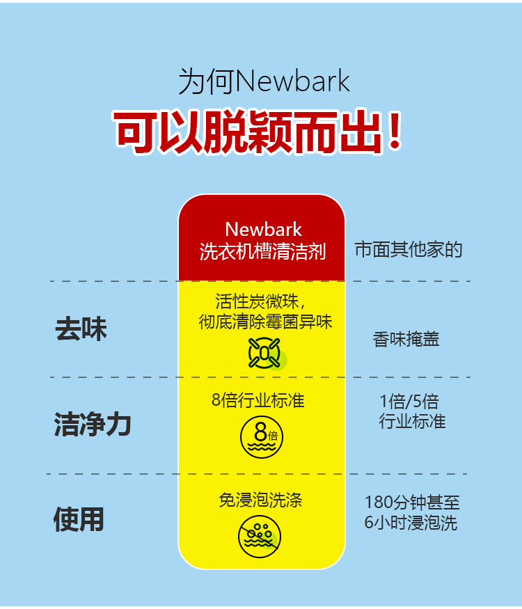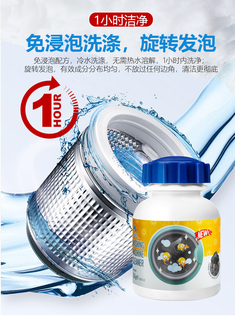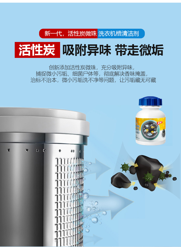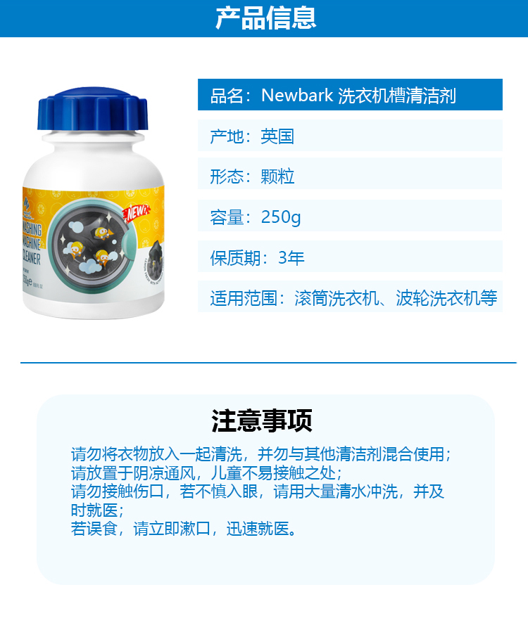 ⁵发2瓶【英国newbark家居活性炭洗衣机槽清洗剂】免浸泡 去污清洁祛味除垢 三个月用1瓶 250g/瓶 YY05-QTT-BDM
