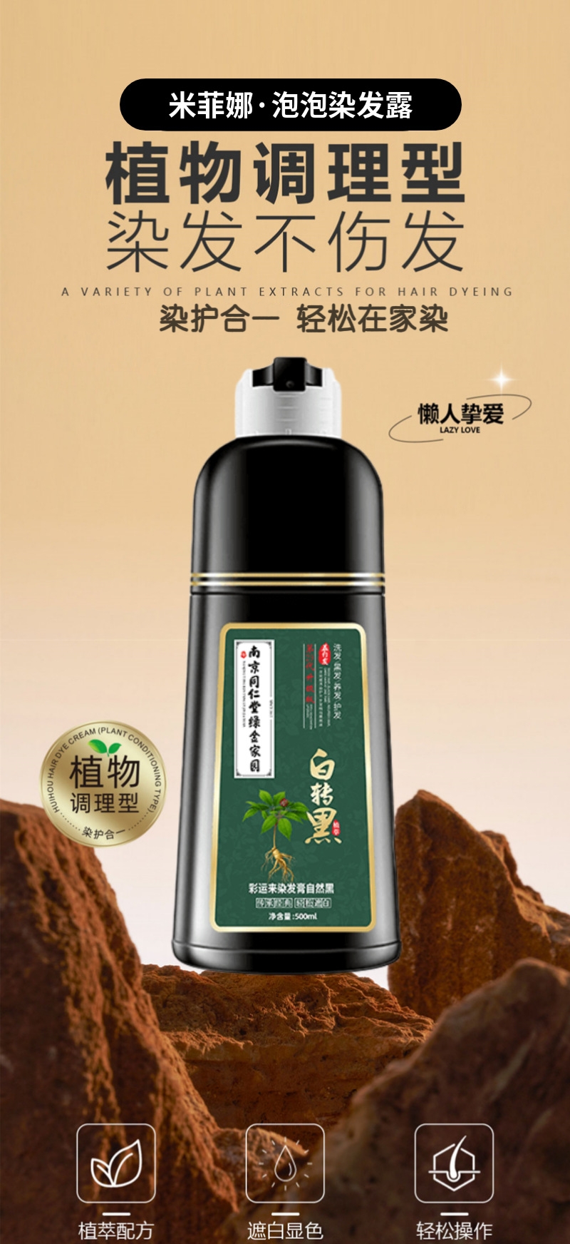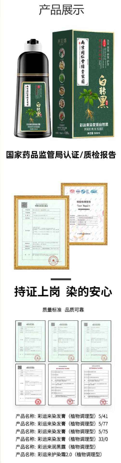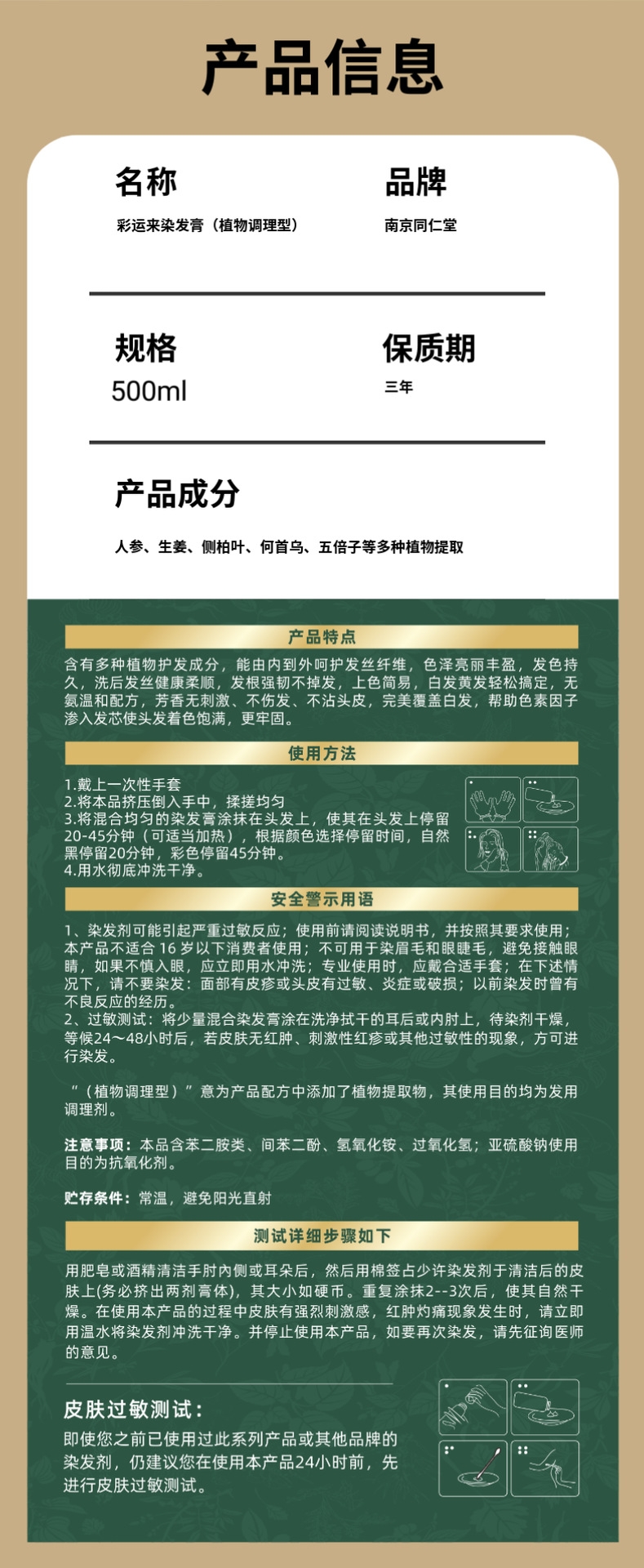 【同仁堂染发剂染发膏】植物不伤发盖白 一支黑染发膏 免票自己在家染发