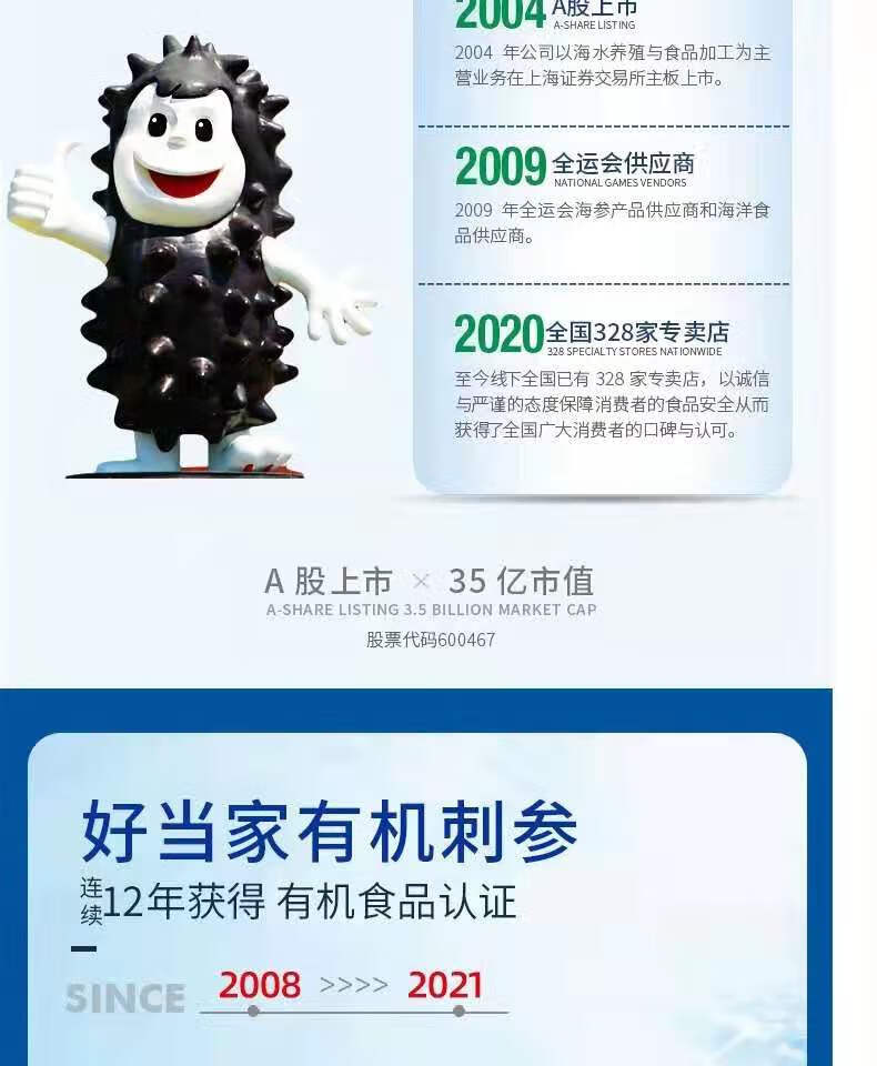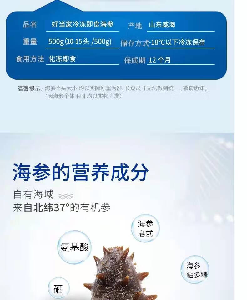冷冻即食有机海参 500g/盒