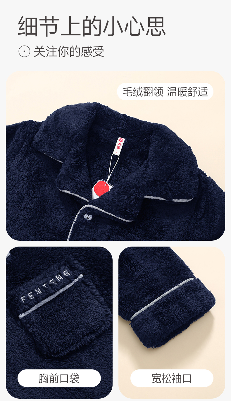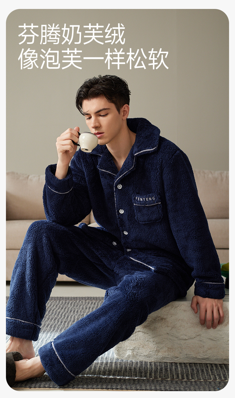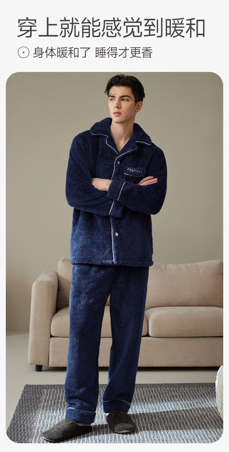 【品牌优选】芬腾珊瑚绒男士睡衣开衫秋冬加厚套装新款宽松保暖可外穿家居服