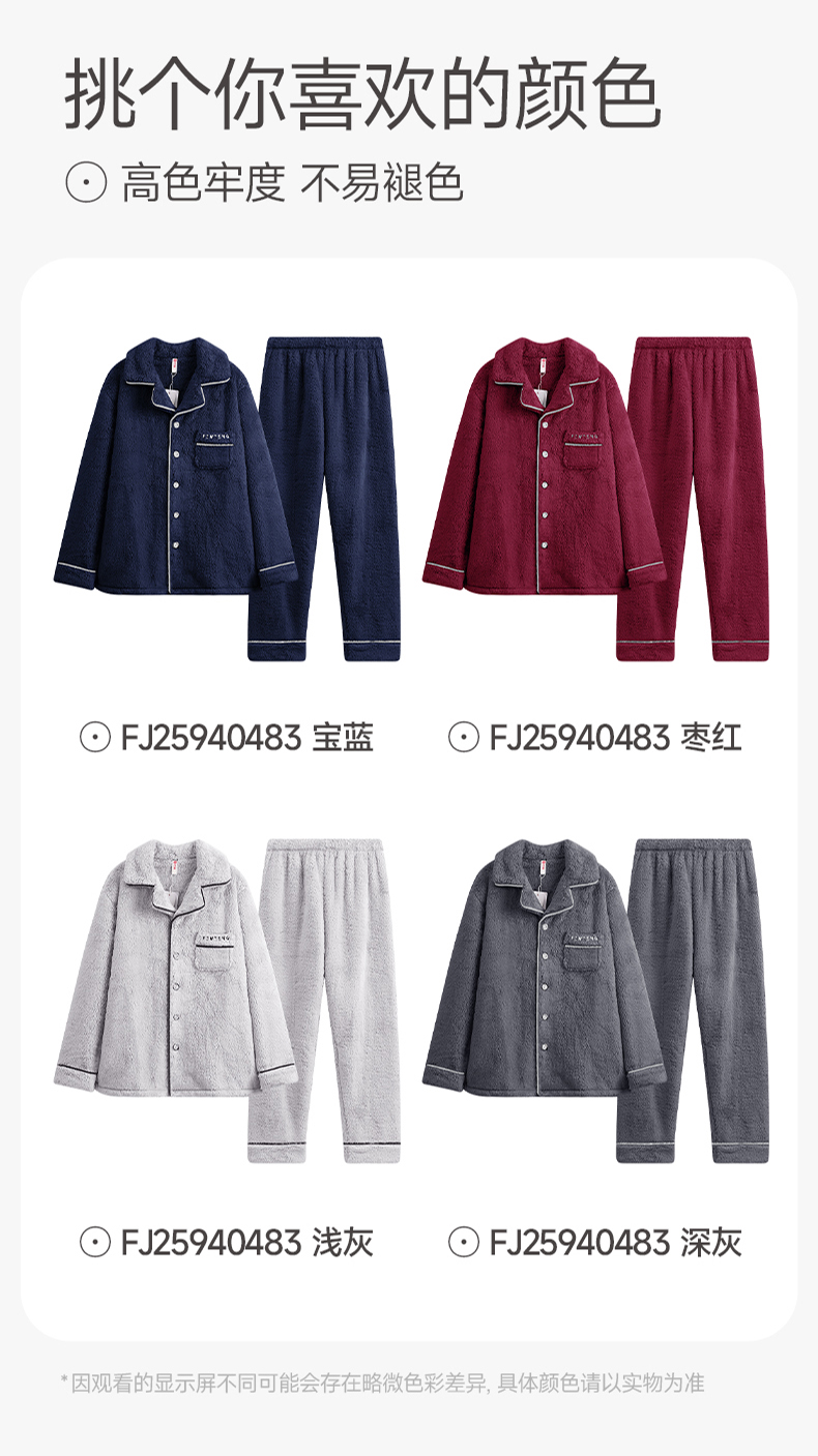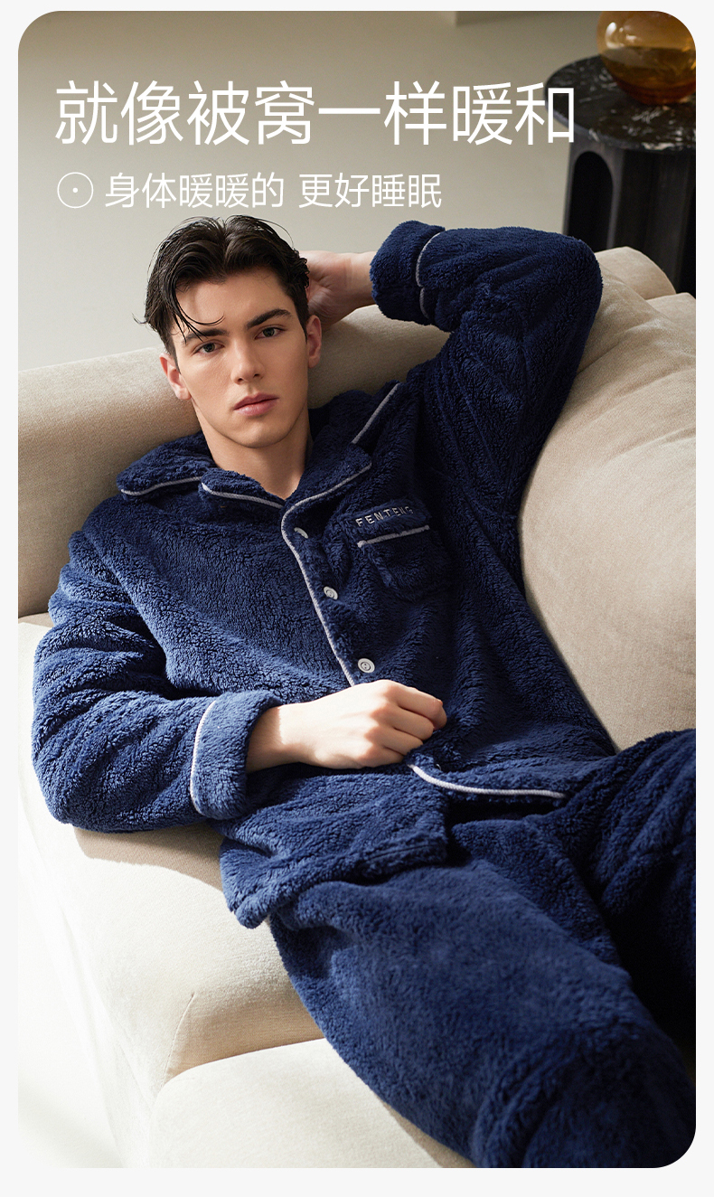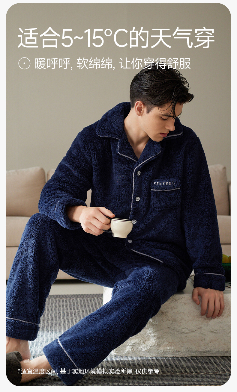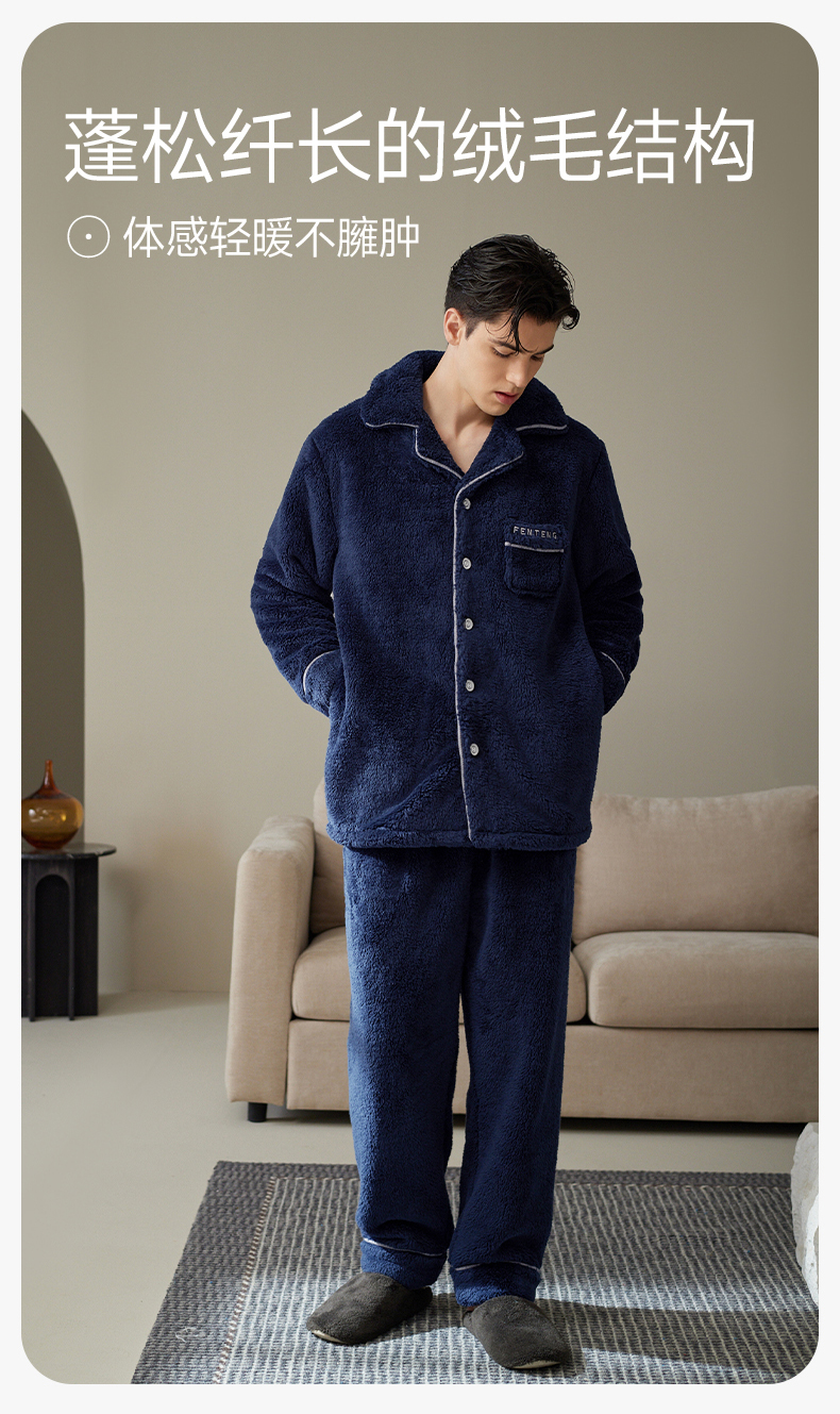 【品牌优选】芬腾珊瑚绒男士睡衣开衫秋冬加厚套装新款宽松保暖可外穿家居服