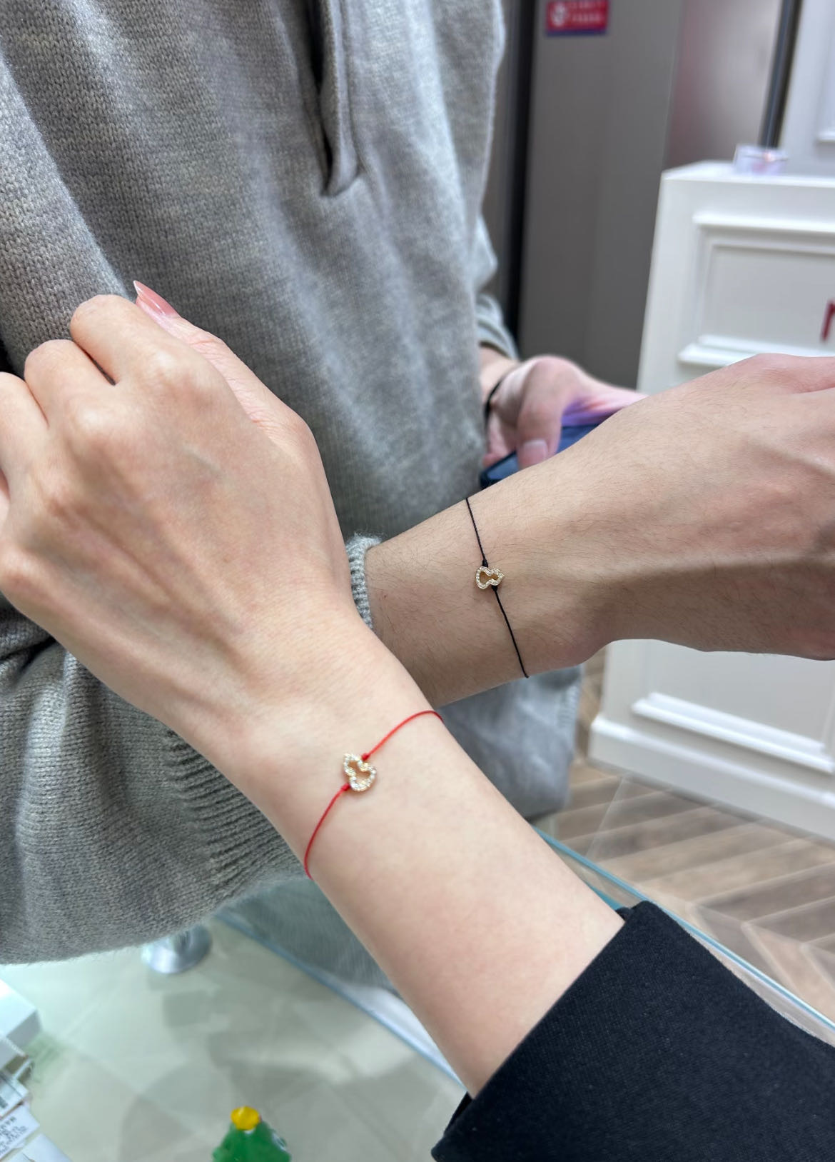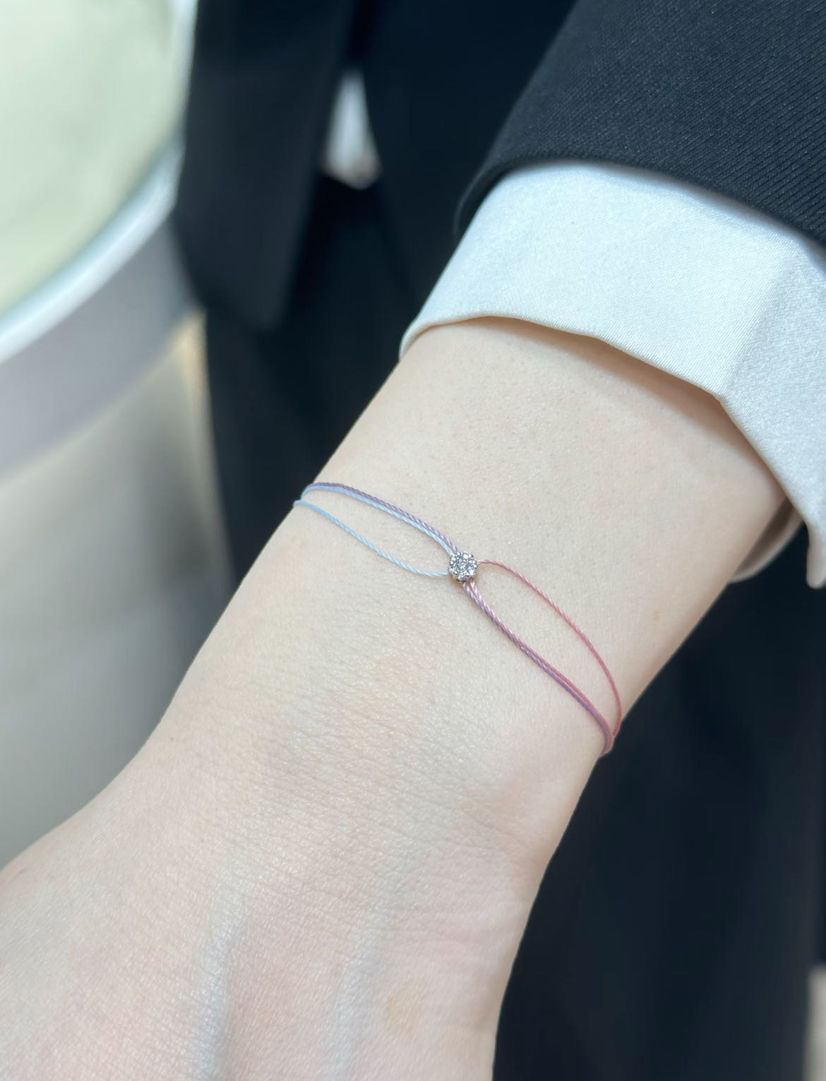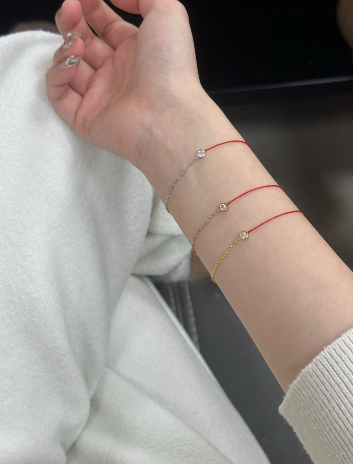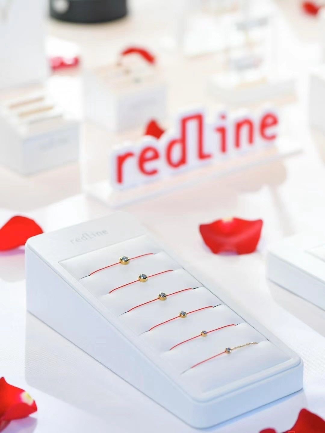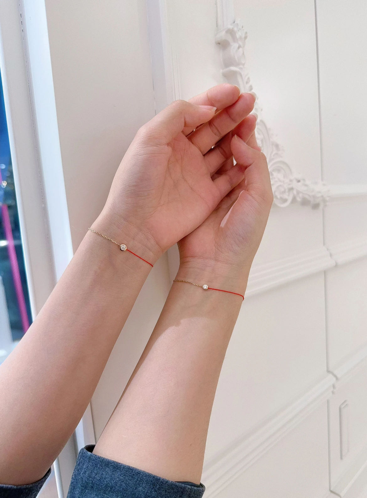 闪钻的纯净与象征着“守护好运”的小红绳相结合