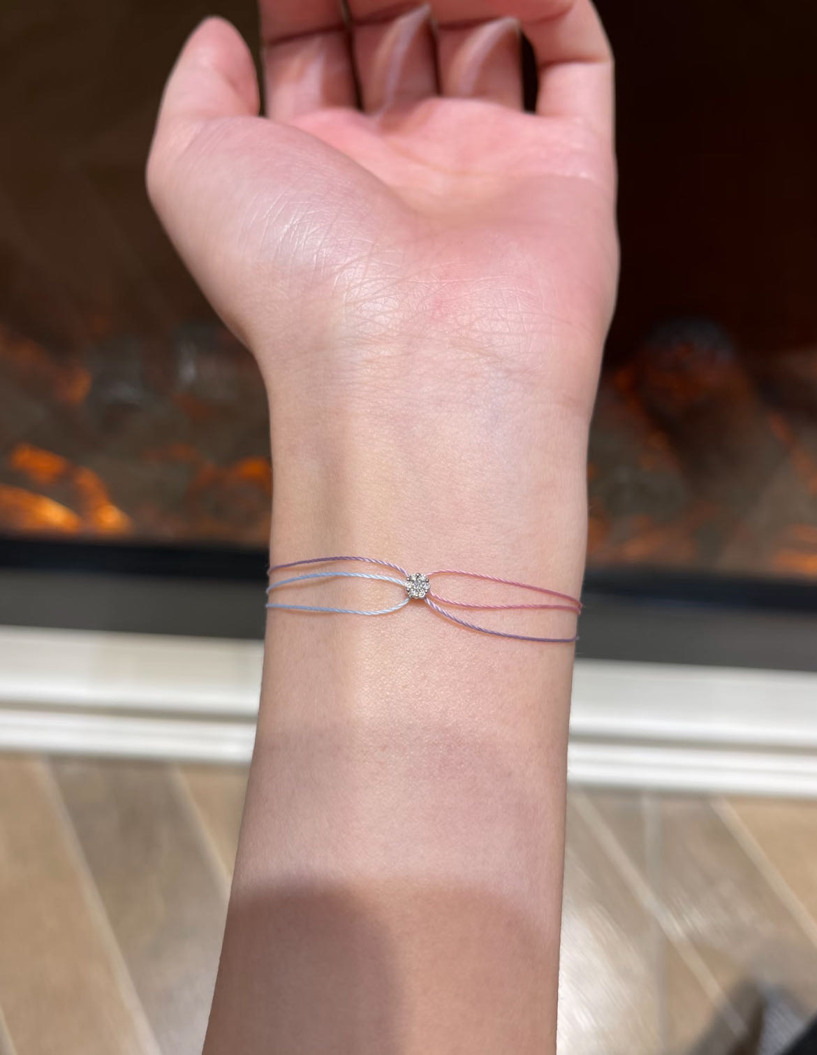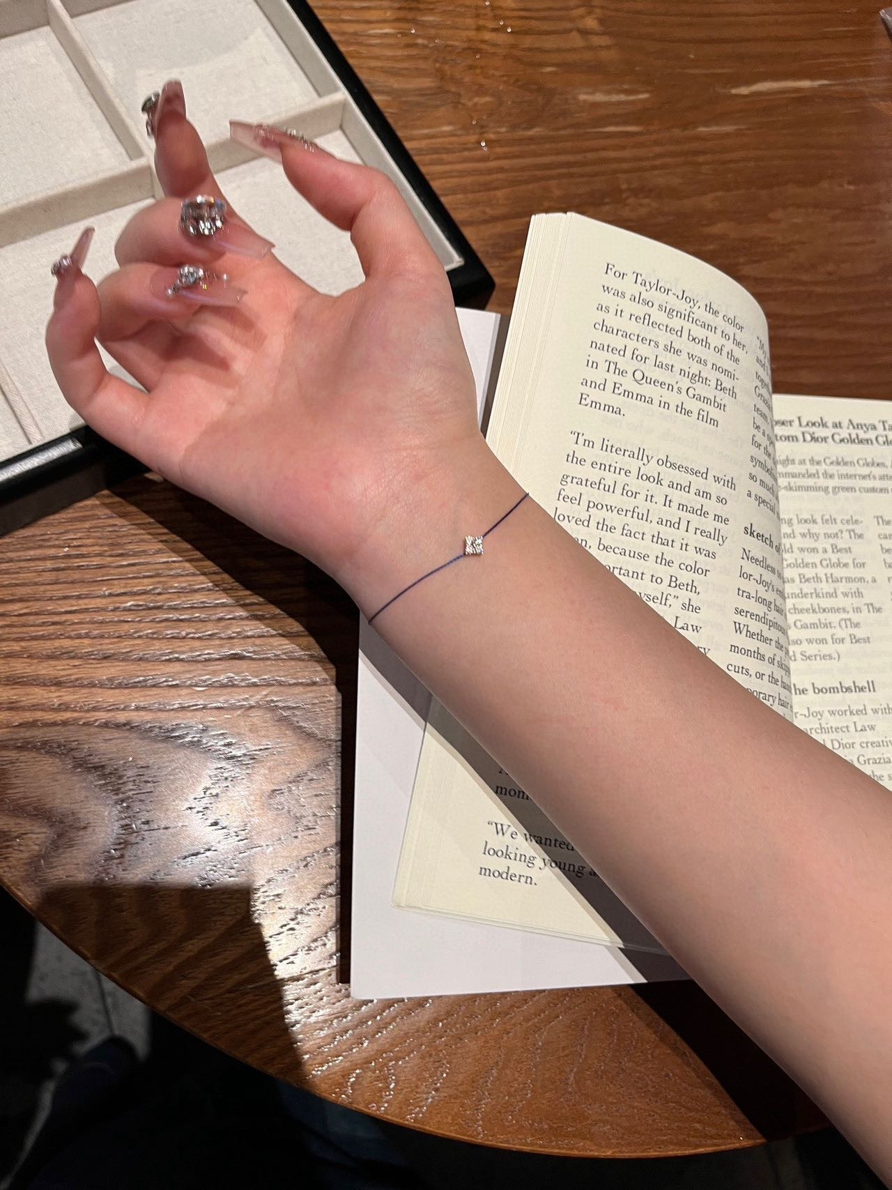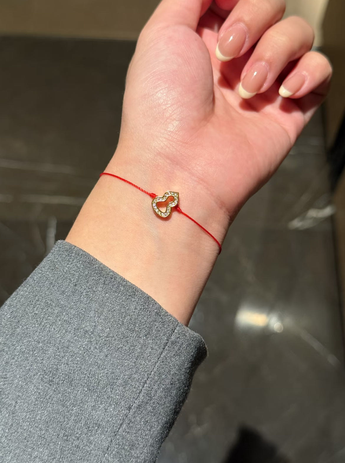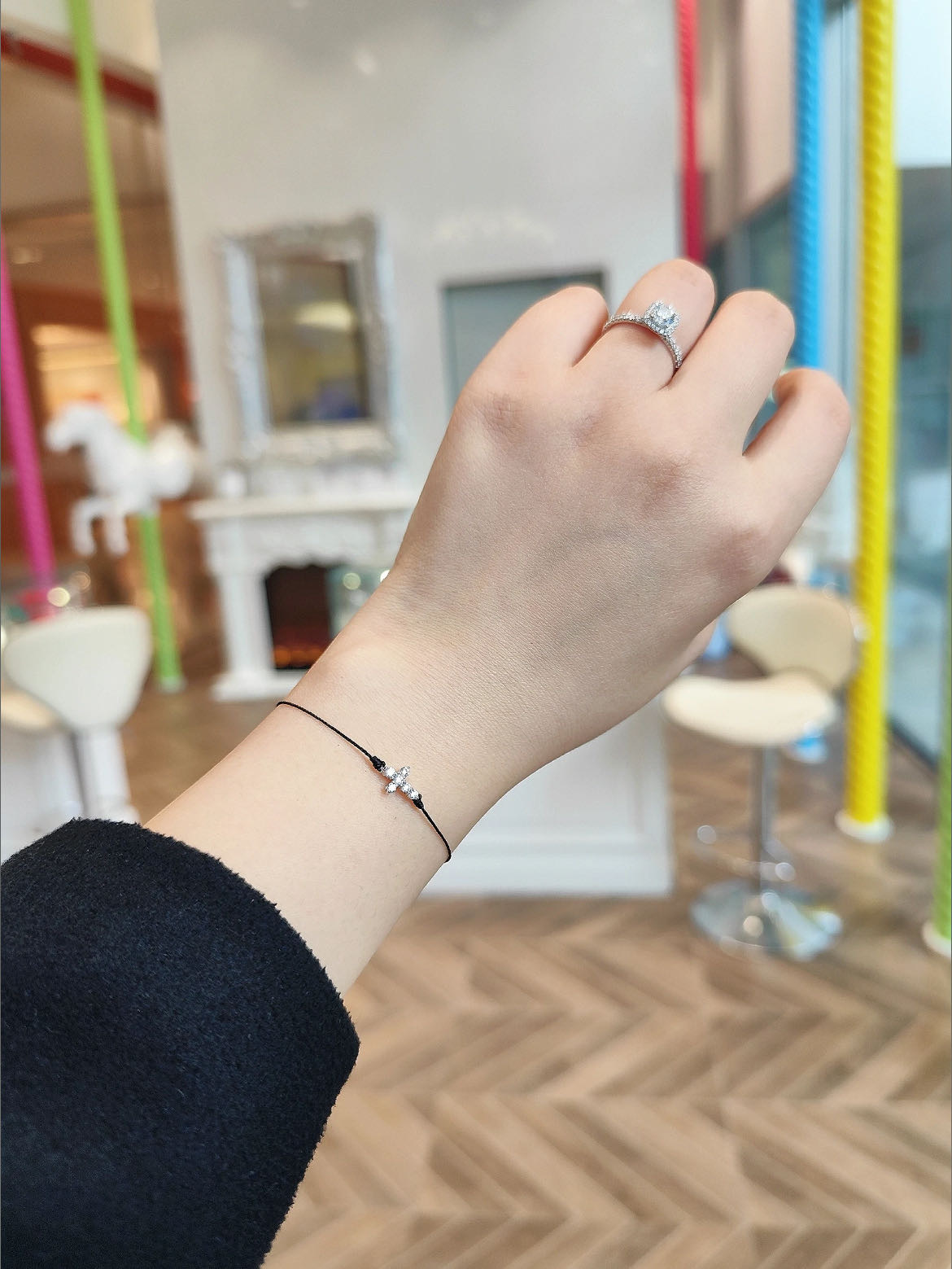 闪钻的纯净与象征着“守护好运”的小红绳相结合