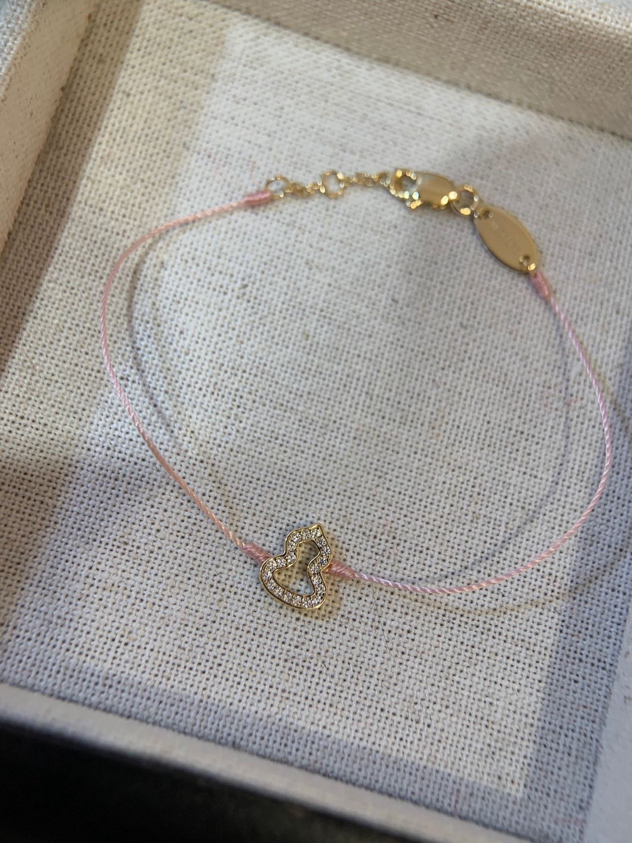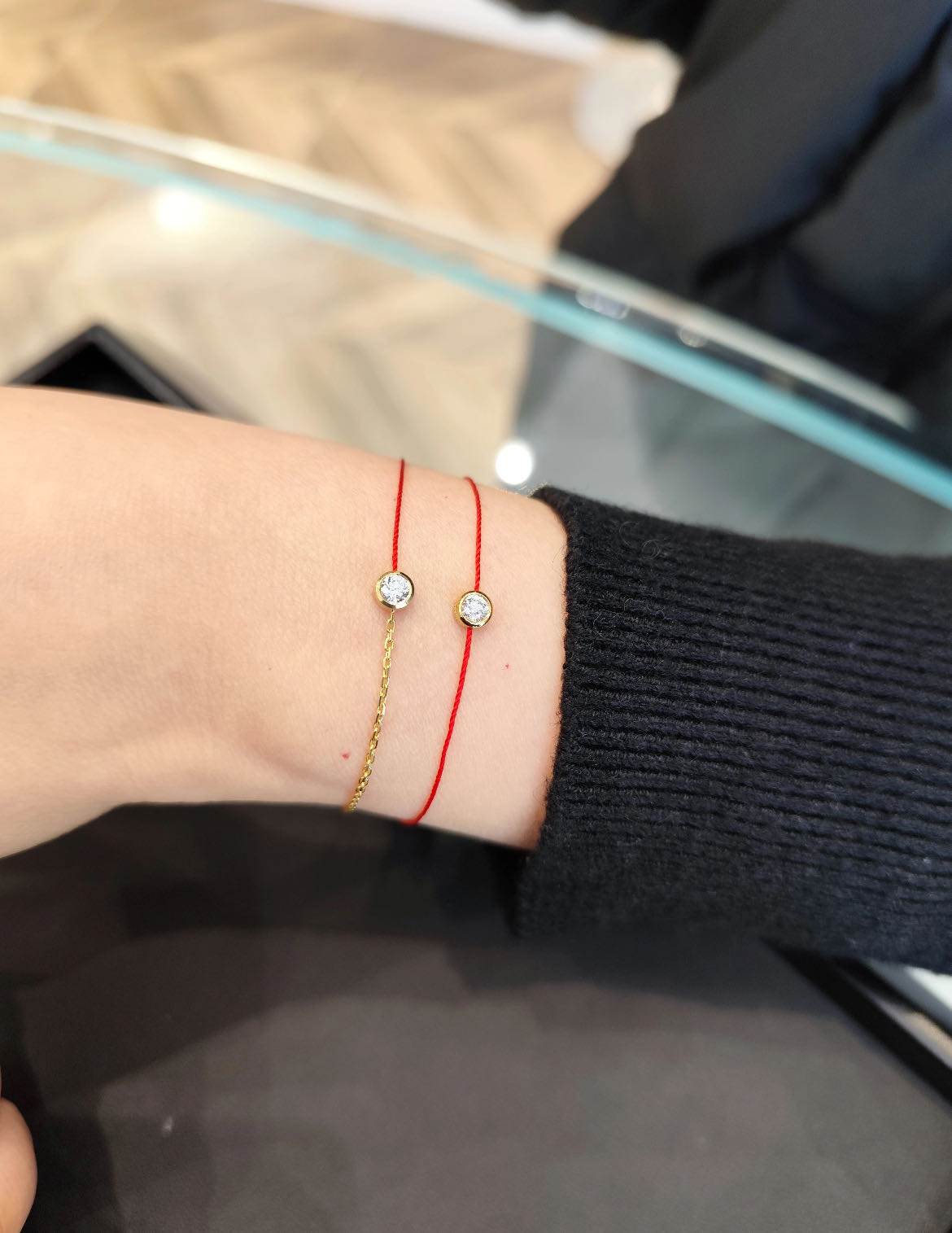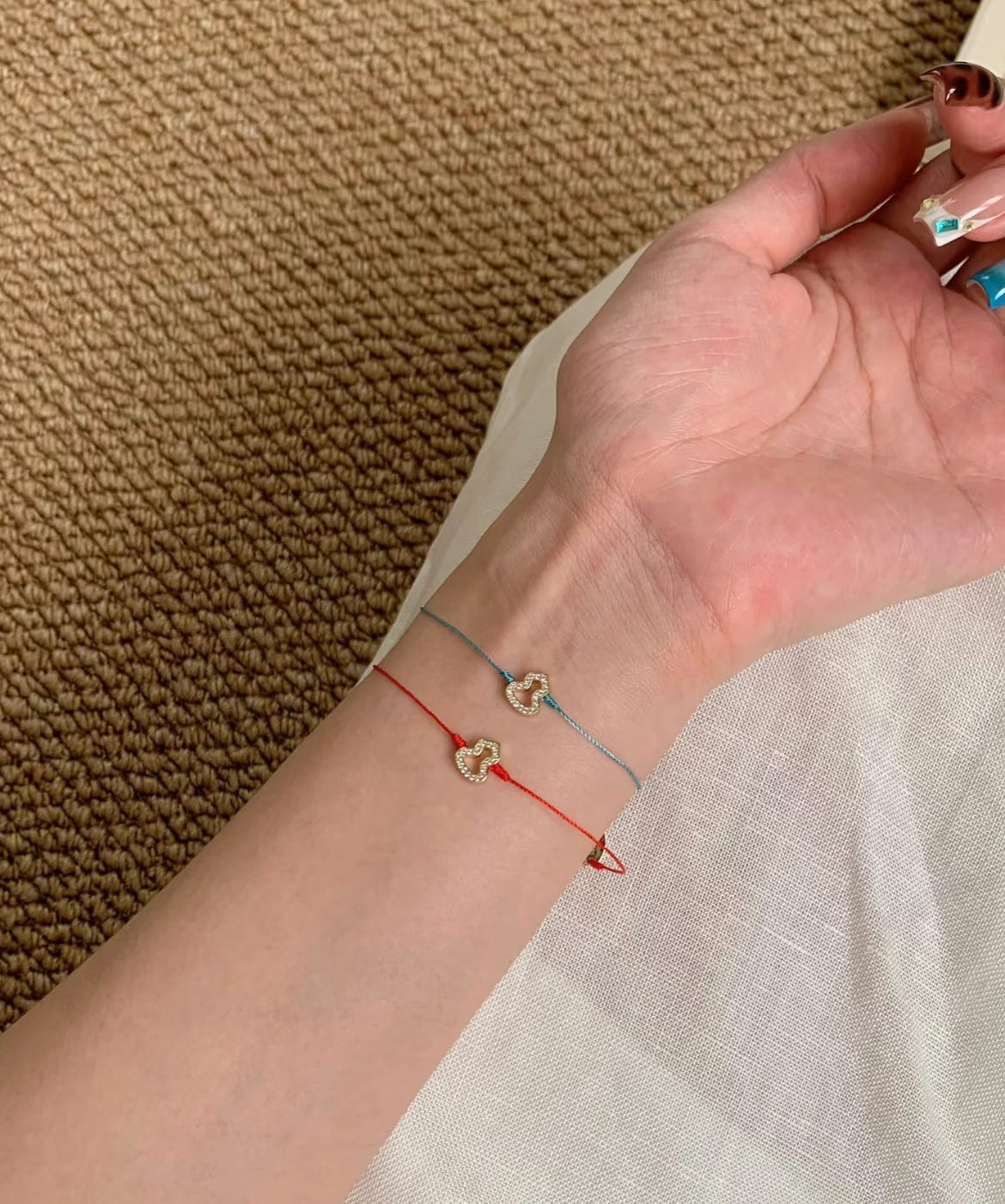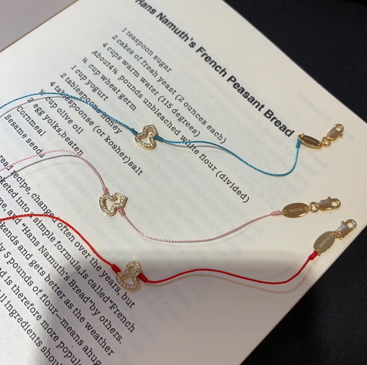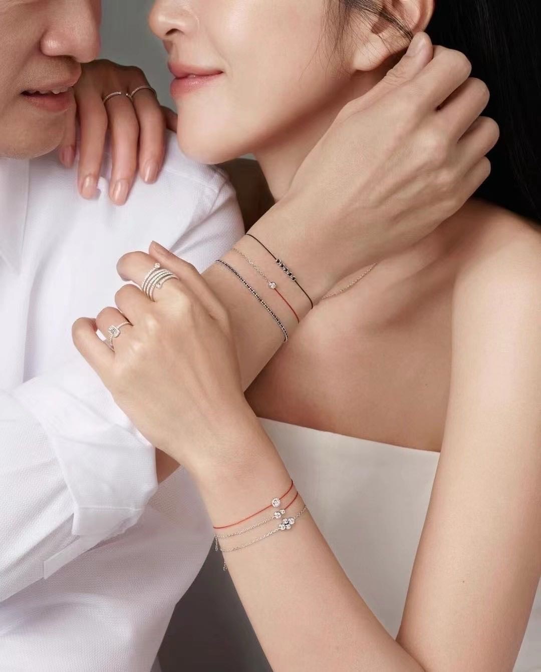 闪钻的纯净与象征着“守护好运”的小红绳相结合