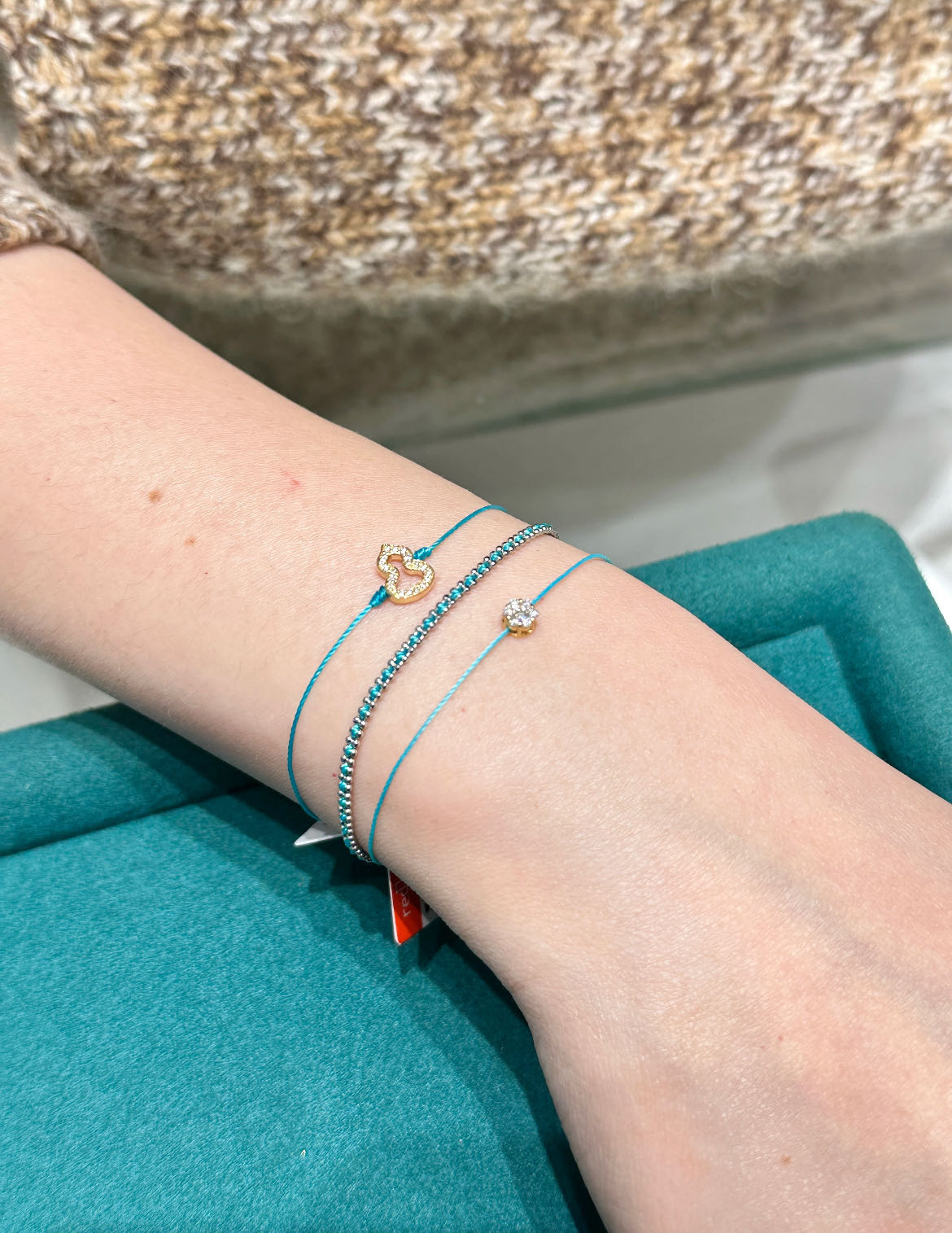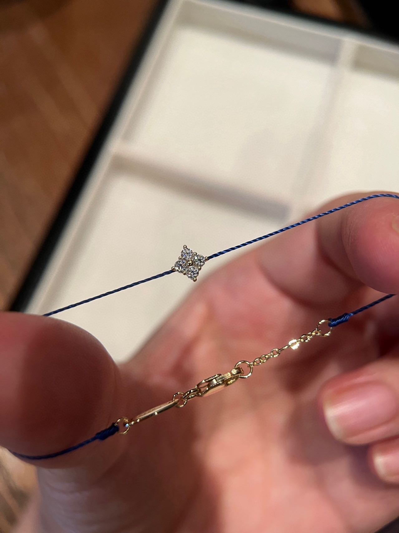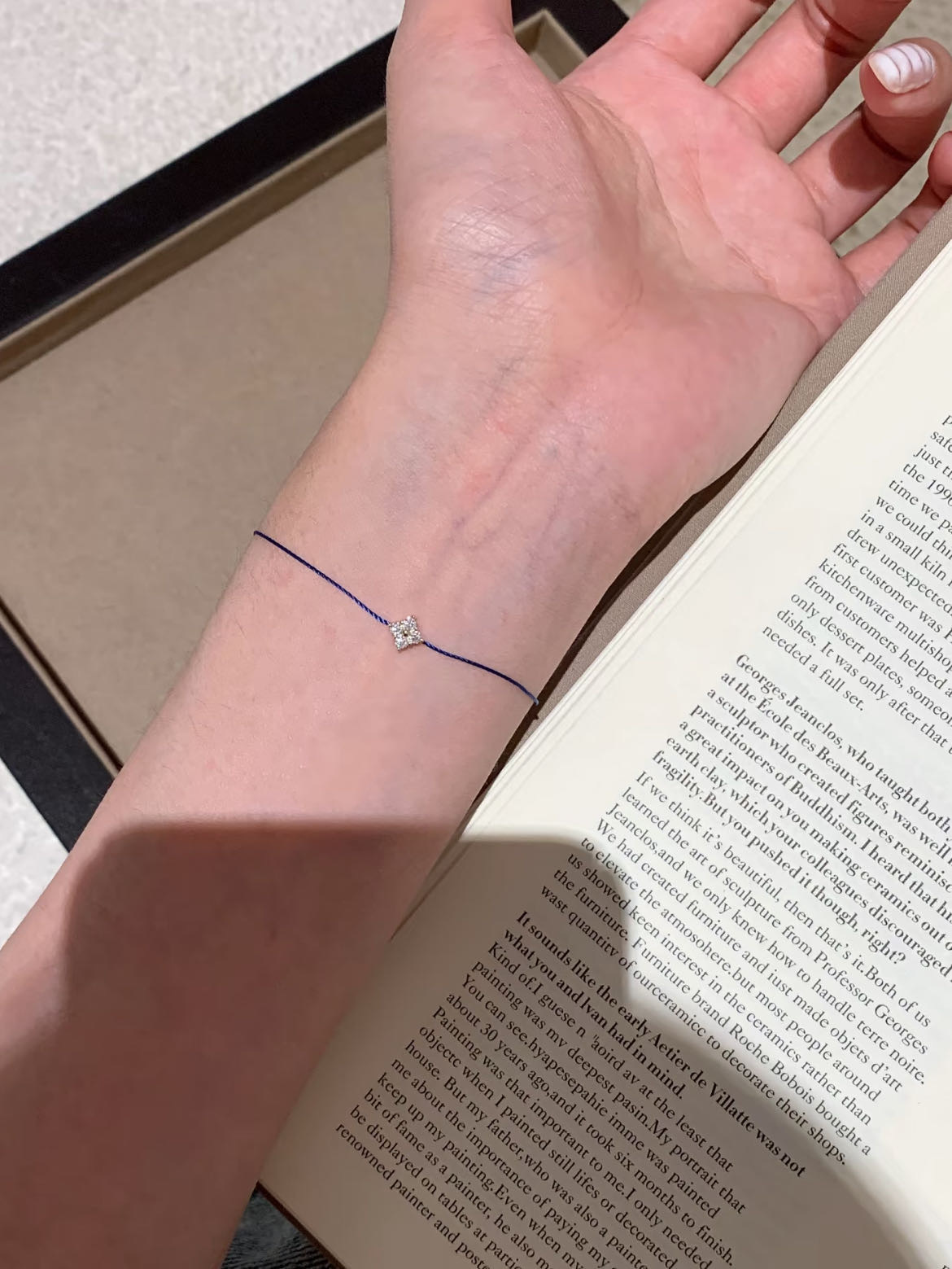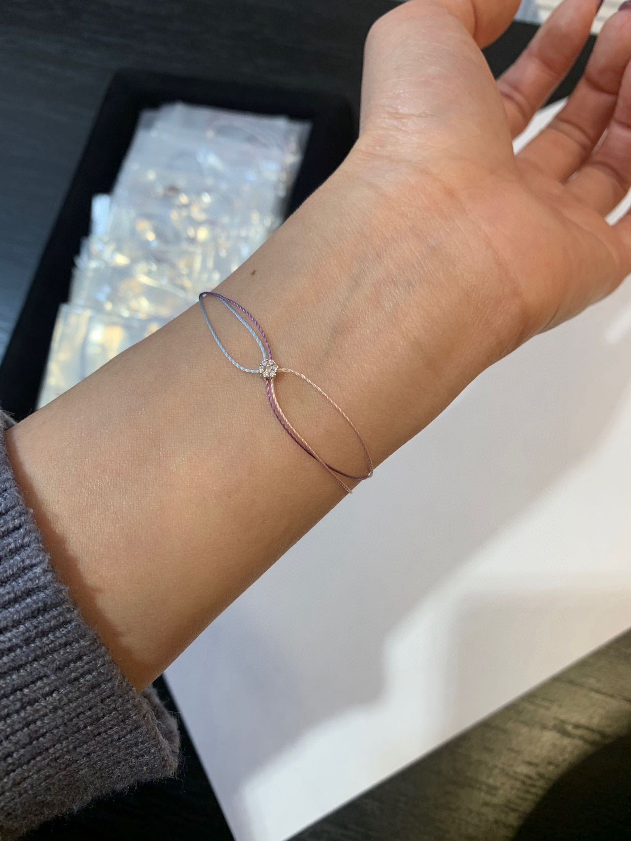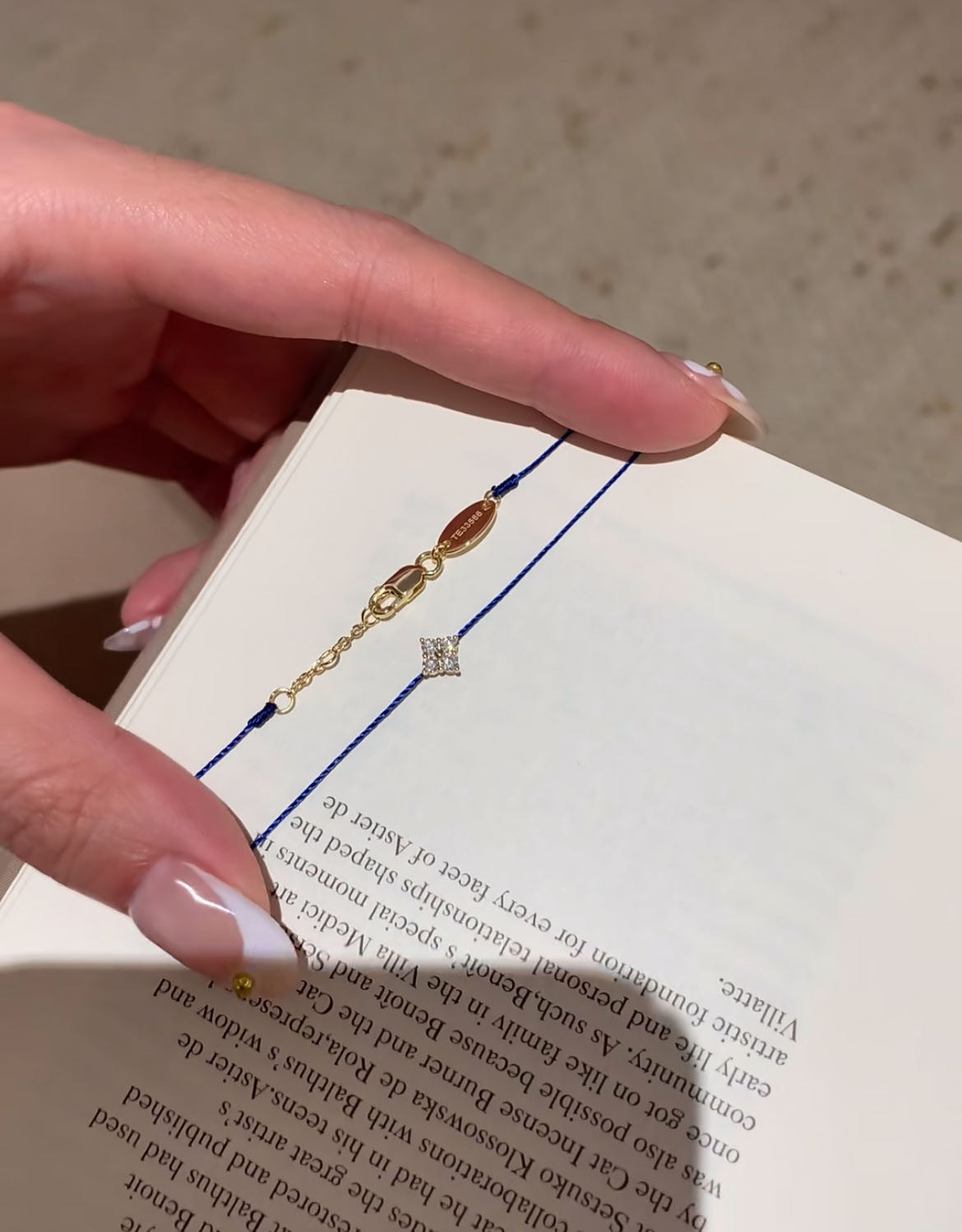 闪钻的纯净与象征着“守护好运”的小红绳相结合