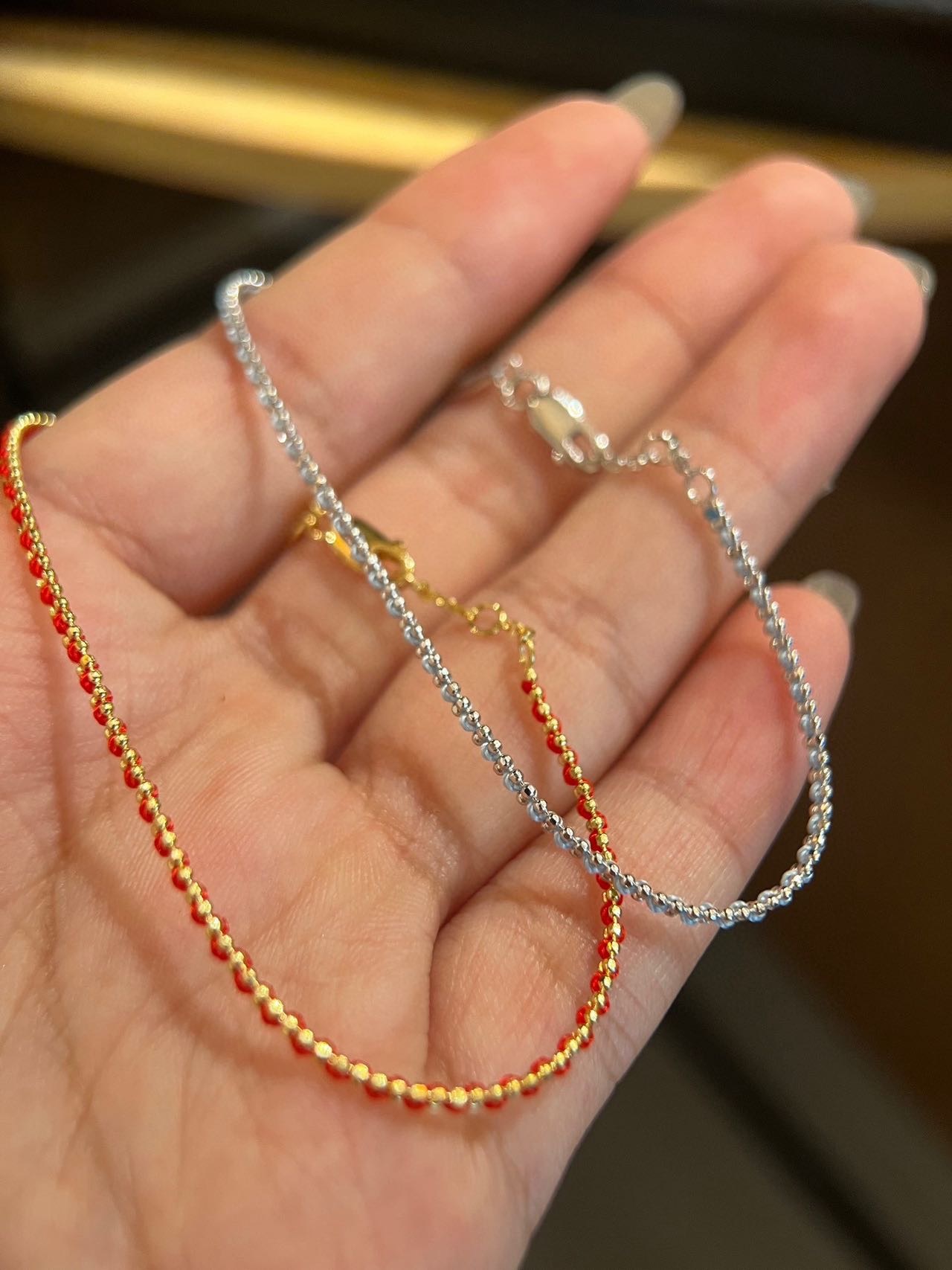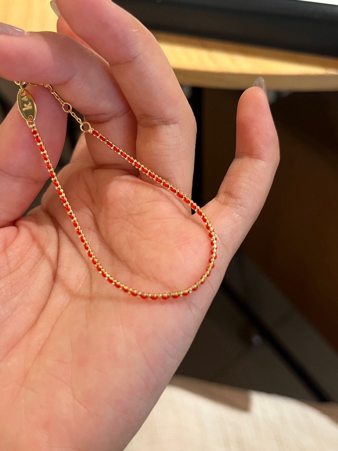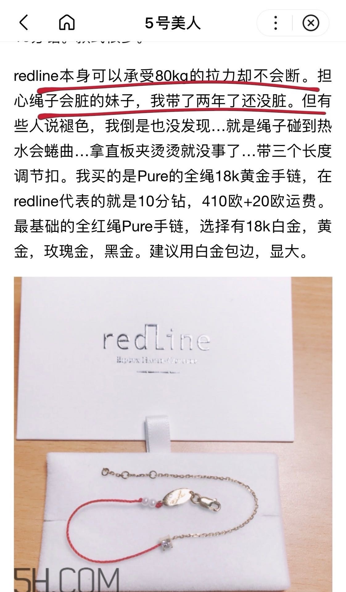 虽然是一款很细很细的小红绳,但是它可以承受80kg的拉力,还可以给佩戴者带来好运,算是使用率最高的首饰单品了
