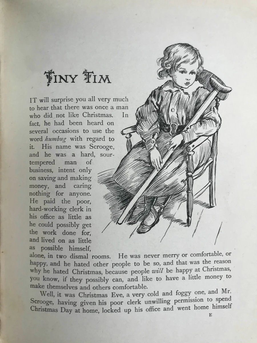 约20世纪早期 狄更斯儿童故事集 12幅彩色与大量黑白文间插图 漆布精装18开