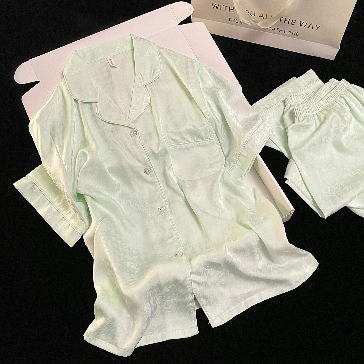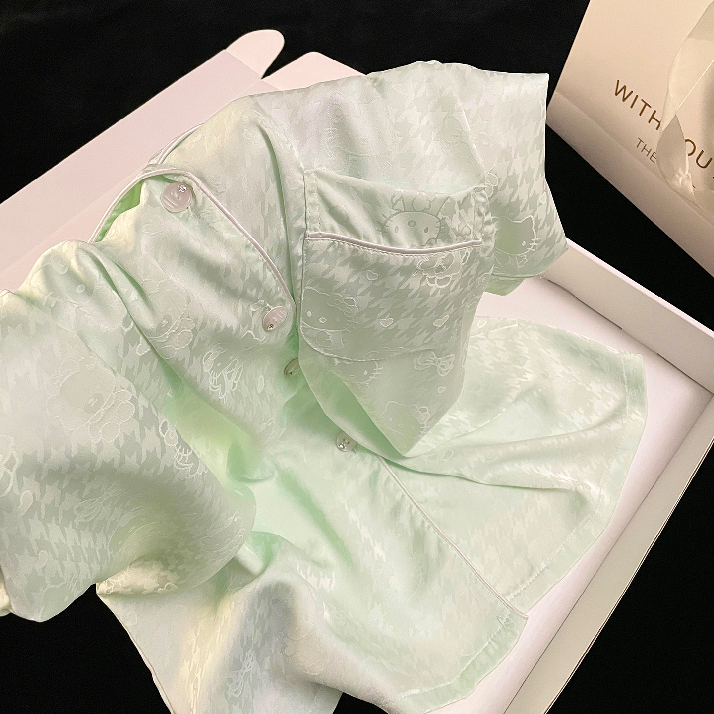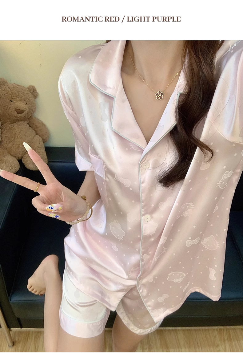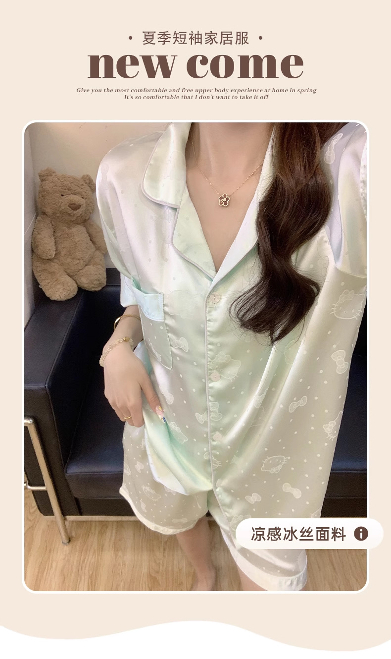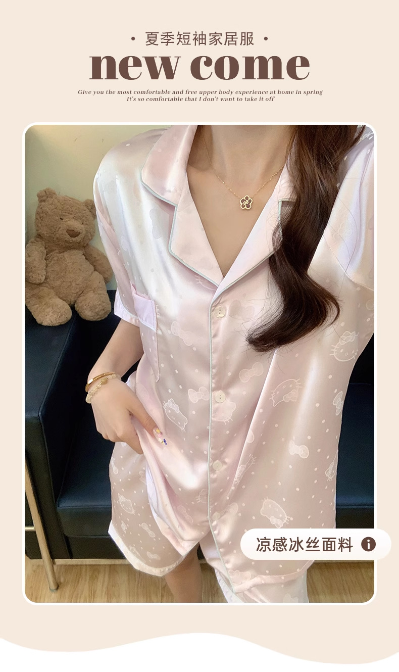【冰丝凉感!法式甜美】法式kitty猫睡衣女夏季冰丝短袖短裤甜美简约高级感女士家居服。xb