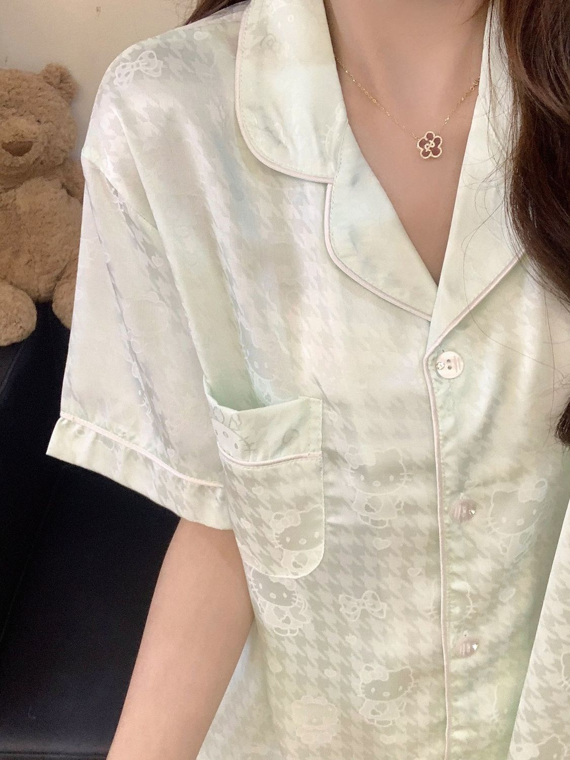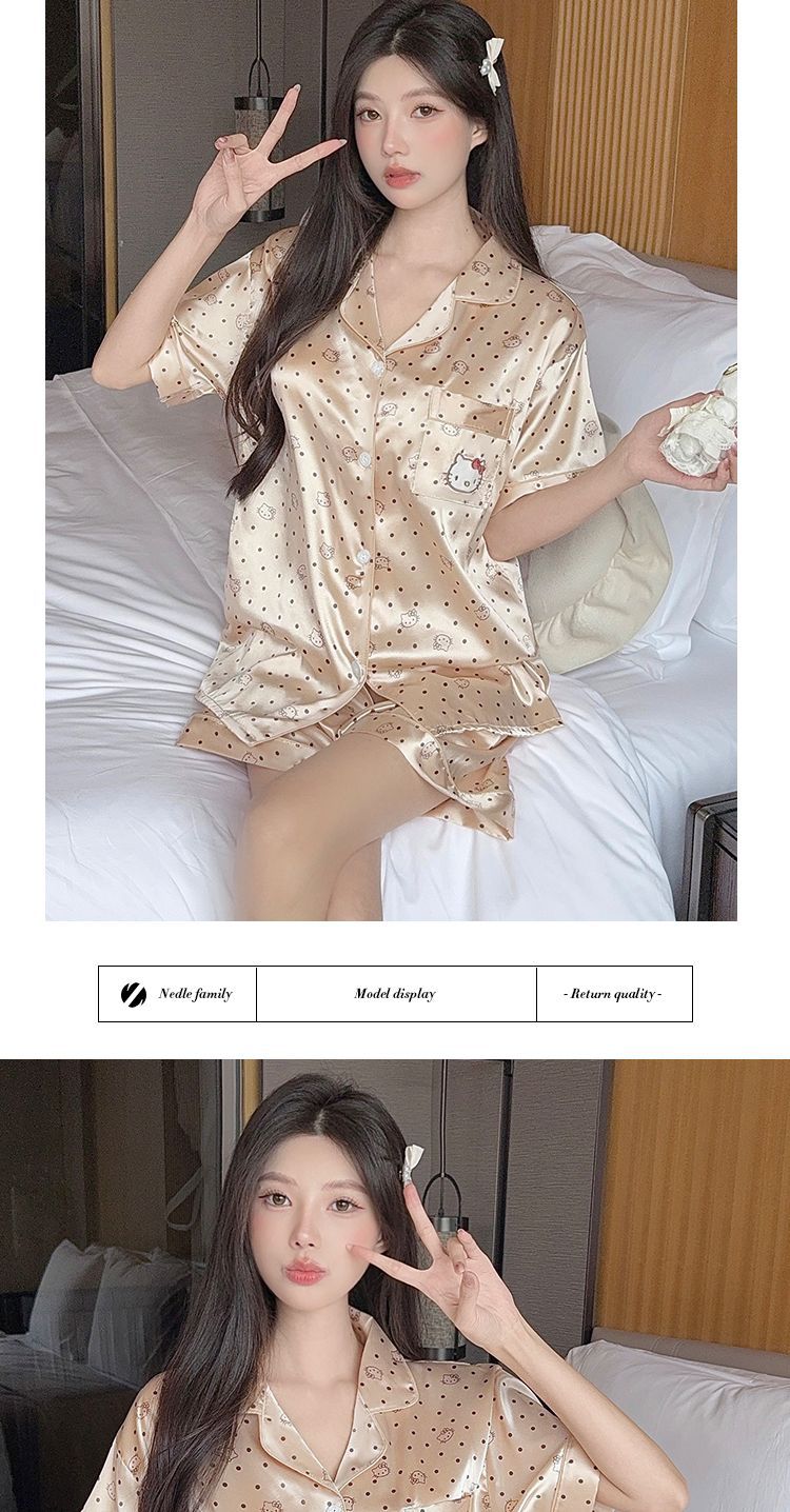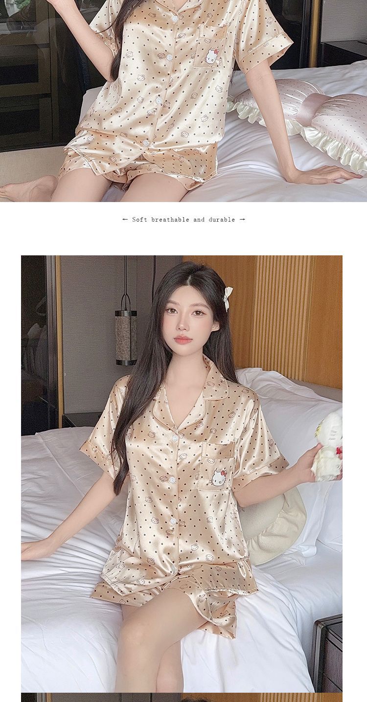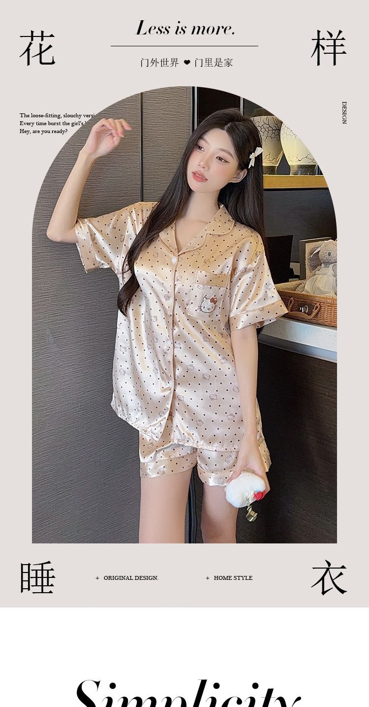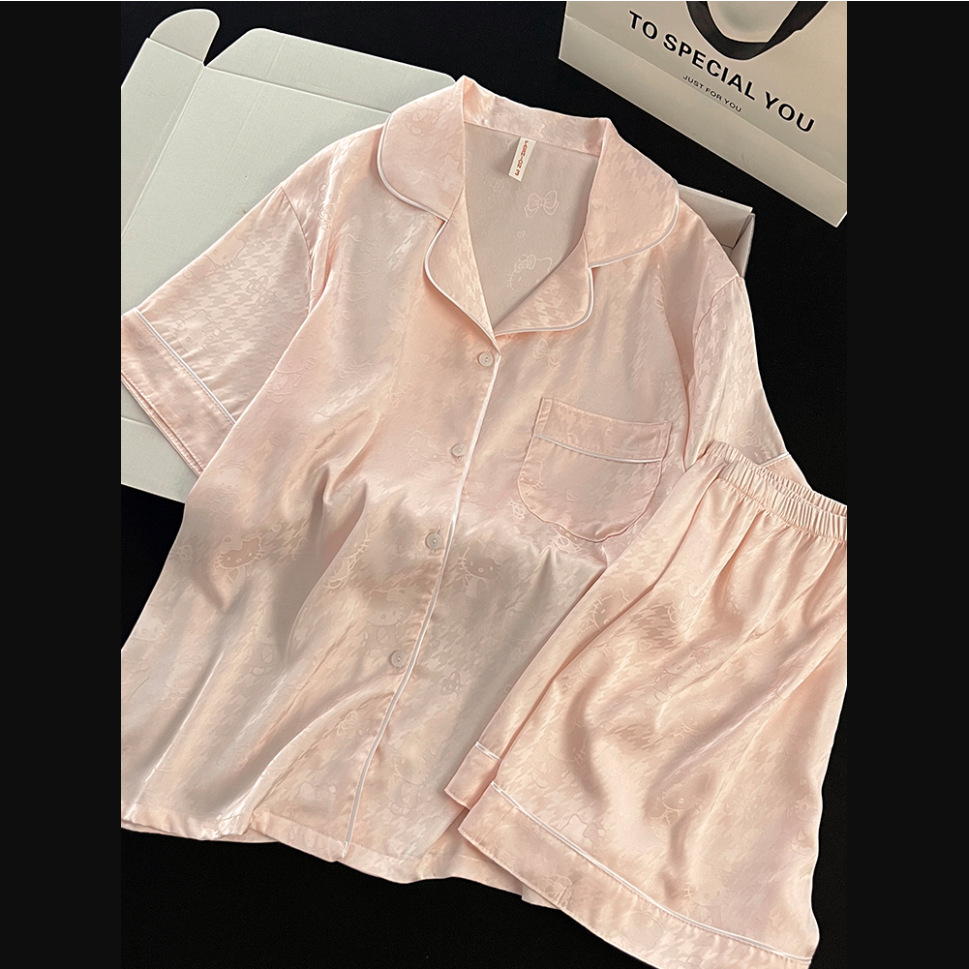 【冰丝凉感!法式甜美】法式kitty猫睡衣女夏季冰丝短袖短裤甜美简约高级感女士家居服。xb