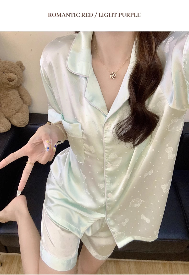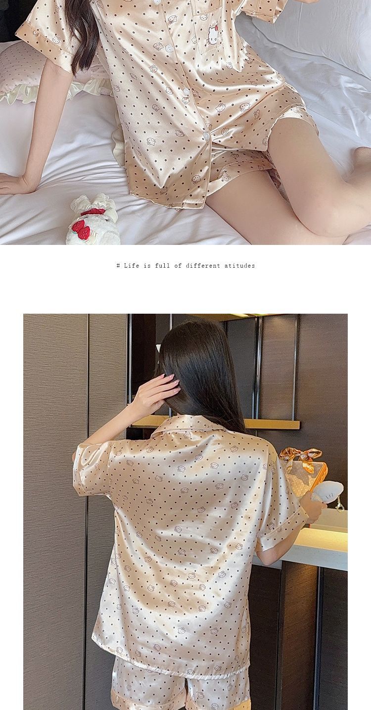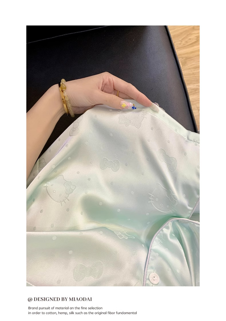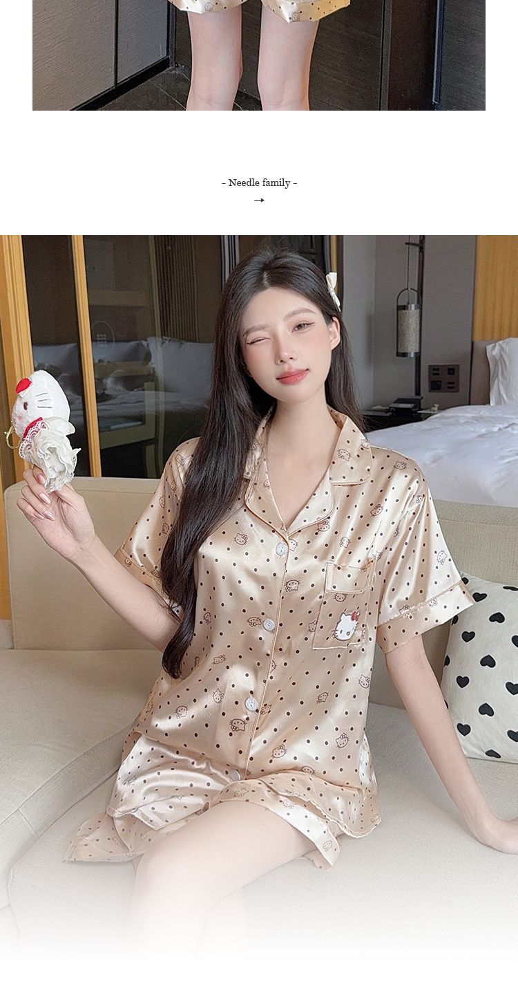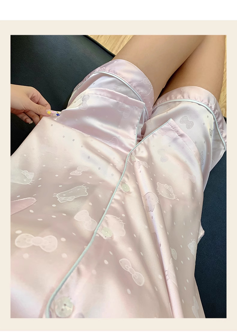 【冰丝凉感!法式甜美】法式kitty猫睡衣女夏季冰丝短袖短裤甜美简约高级感女士家居服。xb