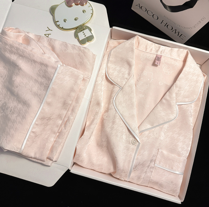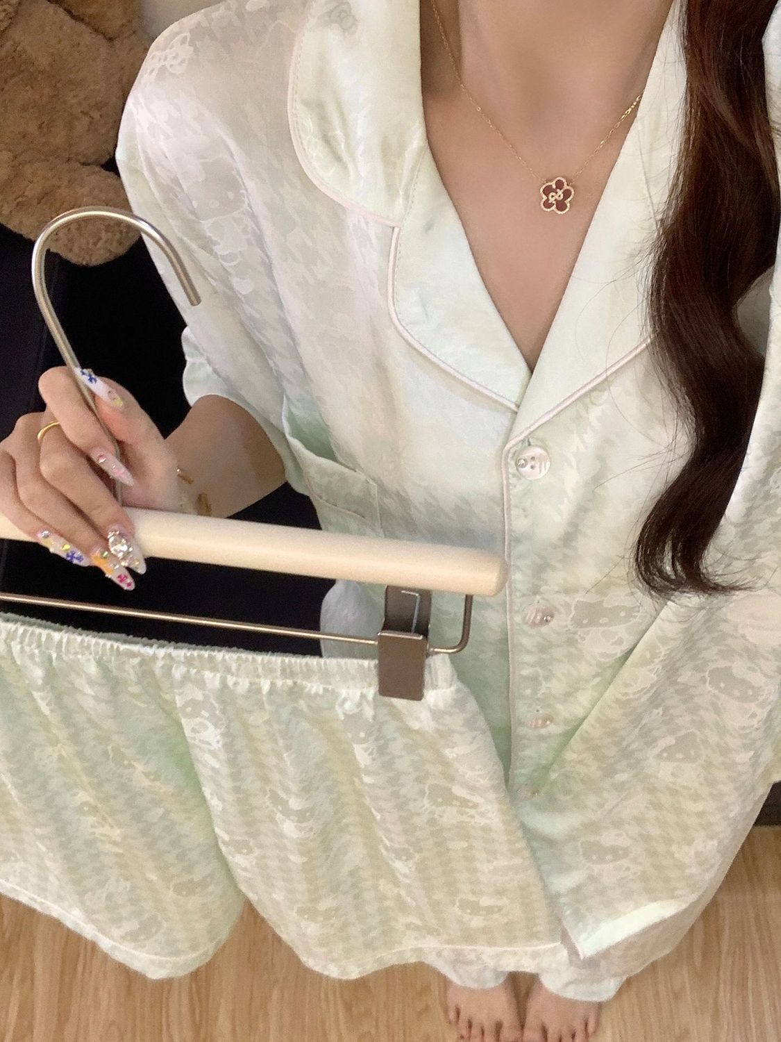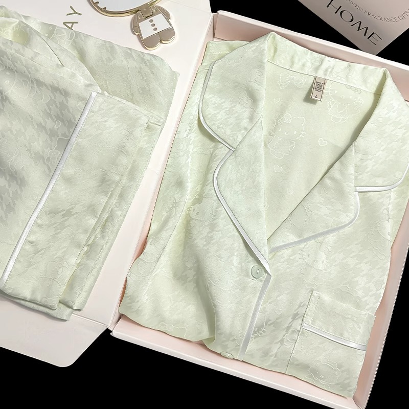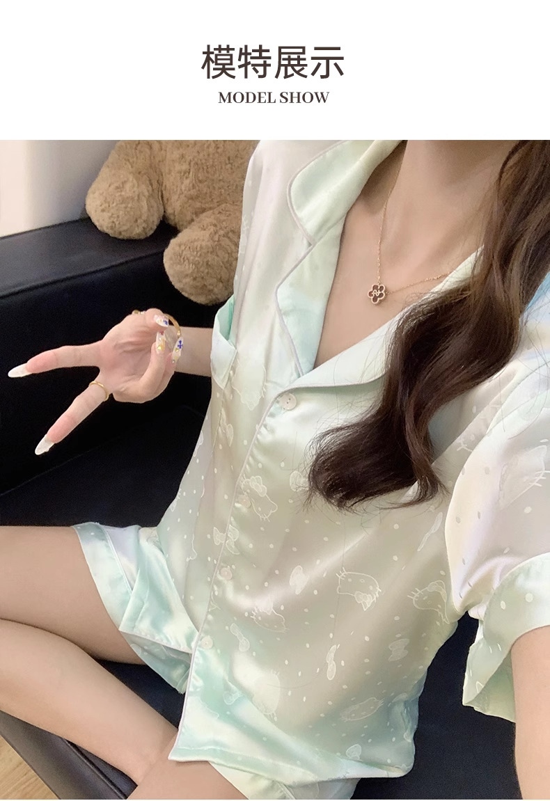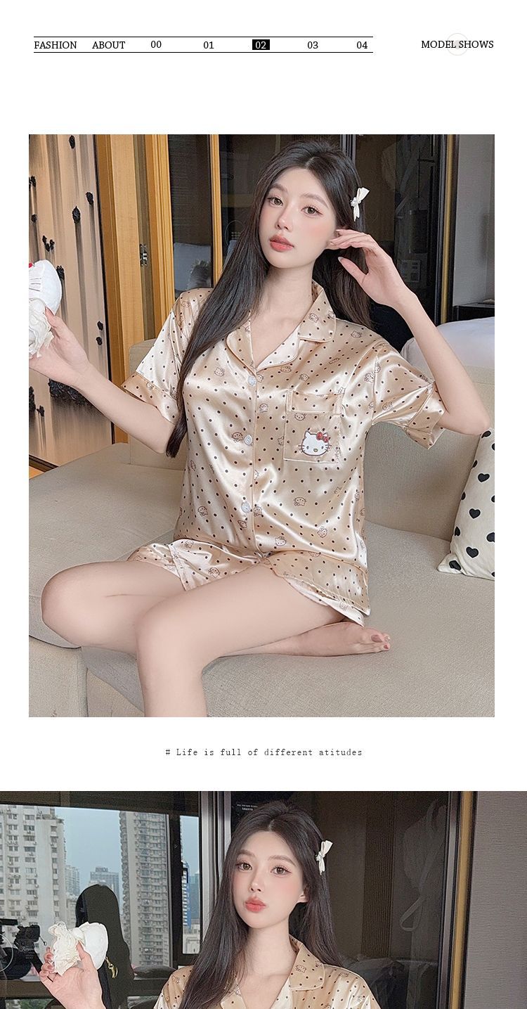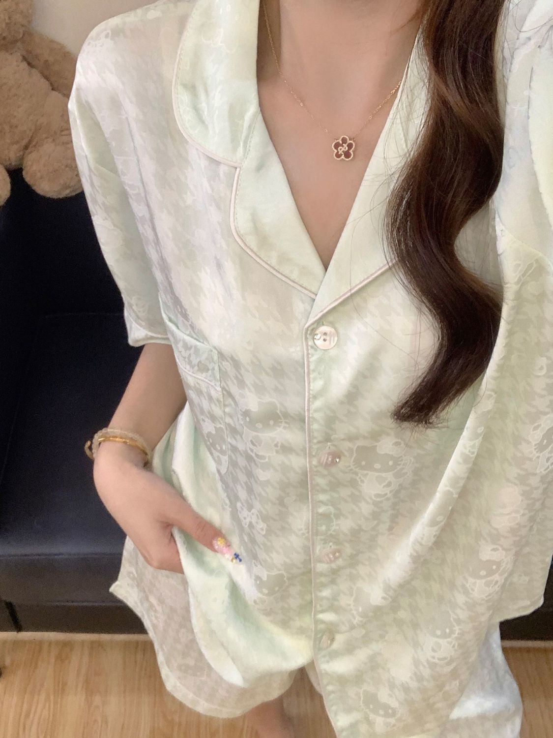 【冰丝凉感!法式甜美】法式kitty猫睡衣女夏季冰丝短袖短裤甜美简约高级感女士家居服。xb