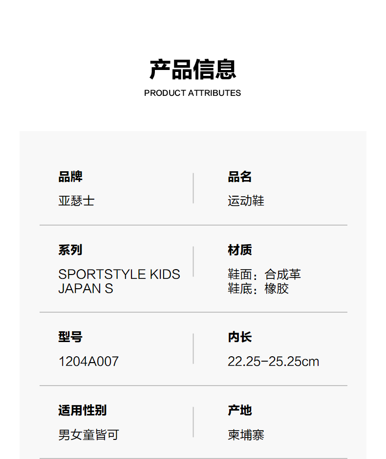 ASICS/亚瑟士童鞋男女童板鞋复古休闲舒适运动鞋JAPAN S