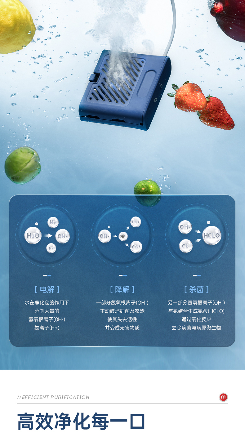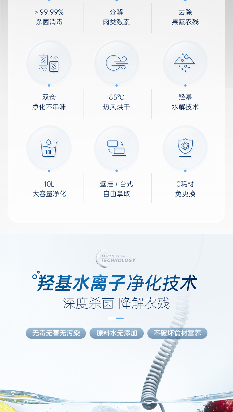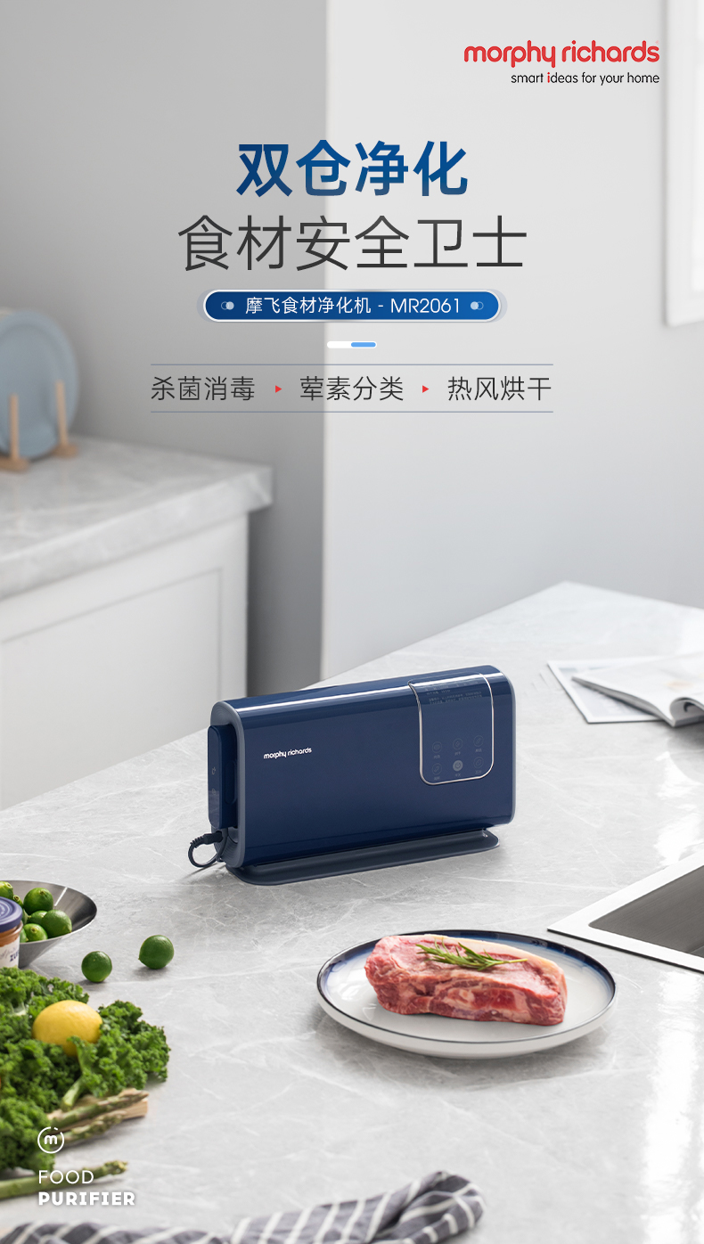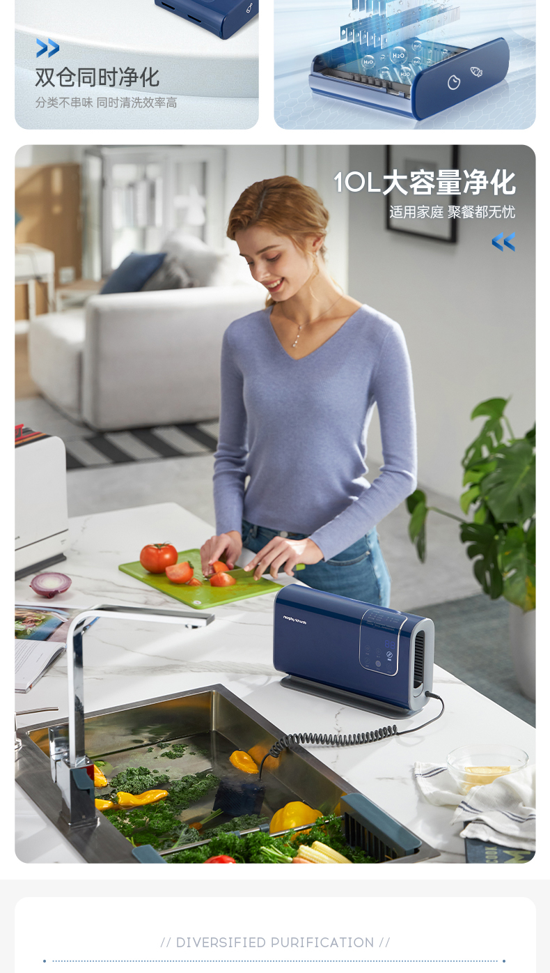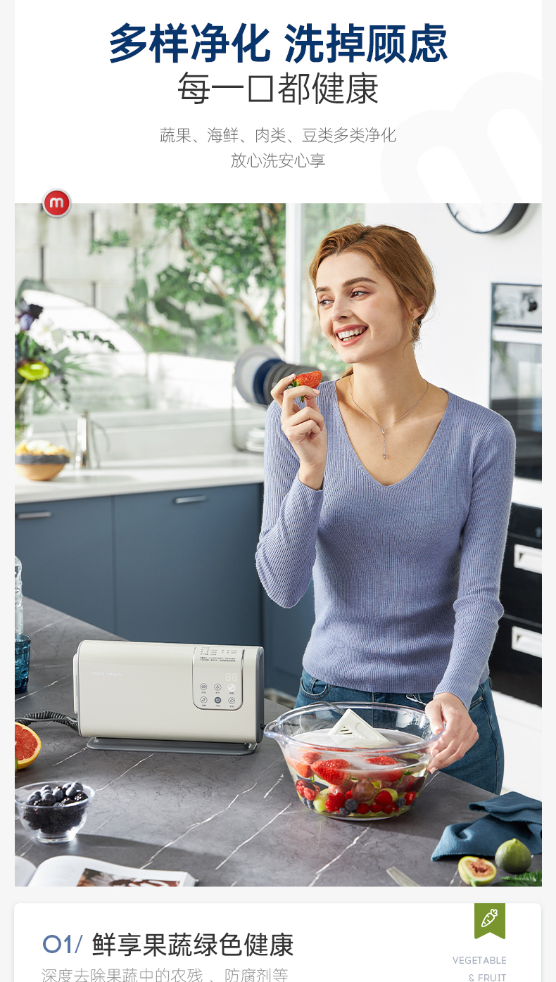 摩飞食材果蔬清洗机洗菜机水果蔬菜去农残消抑毒菌烘干双仓净化器