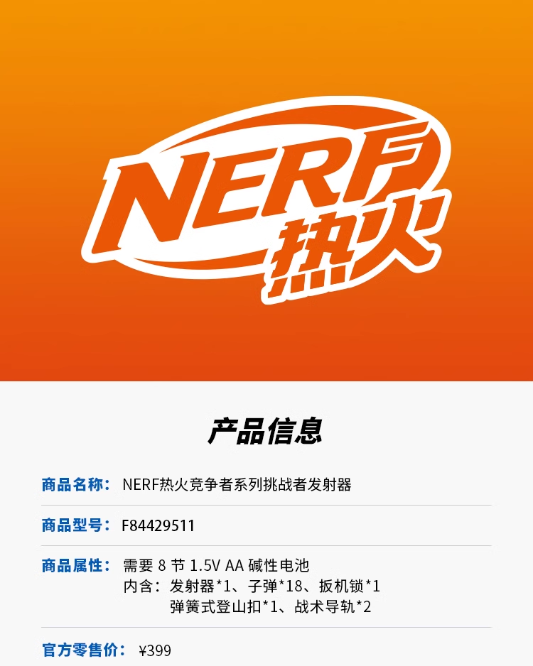 孩之宝Hasbro NERF热火竞争者系列挑战者发射器HASCF84429511