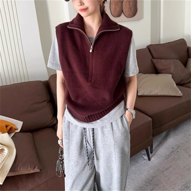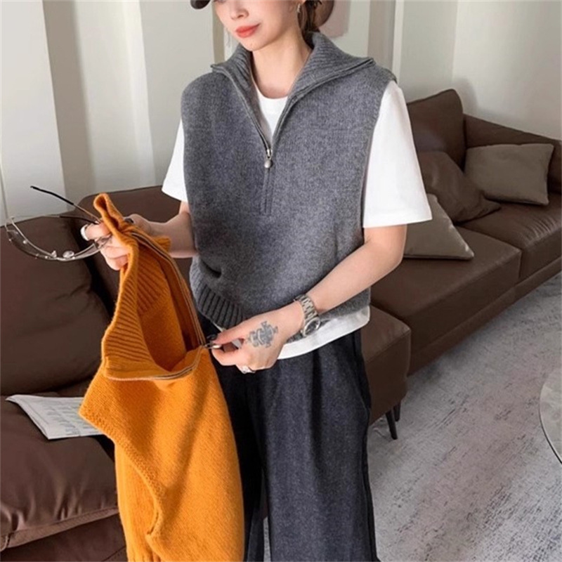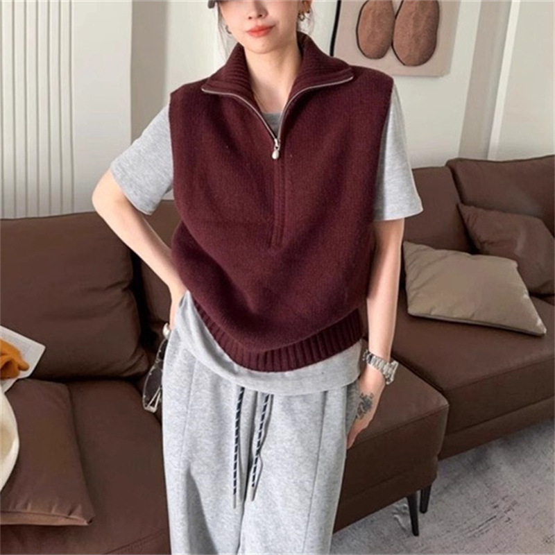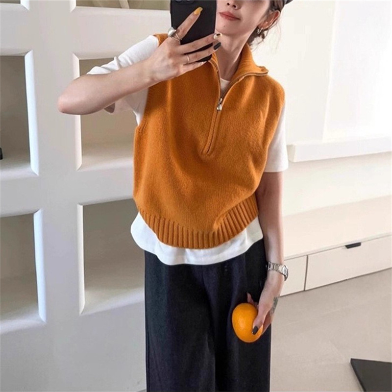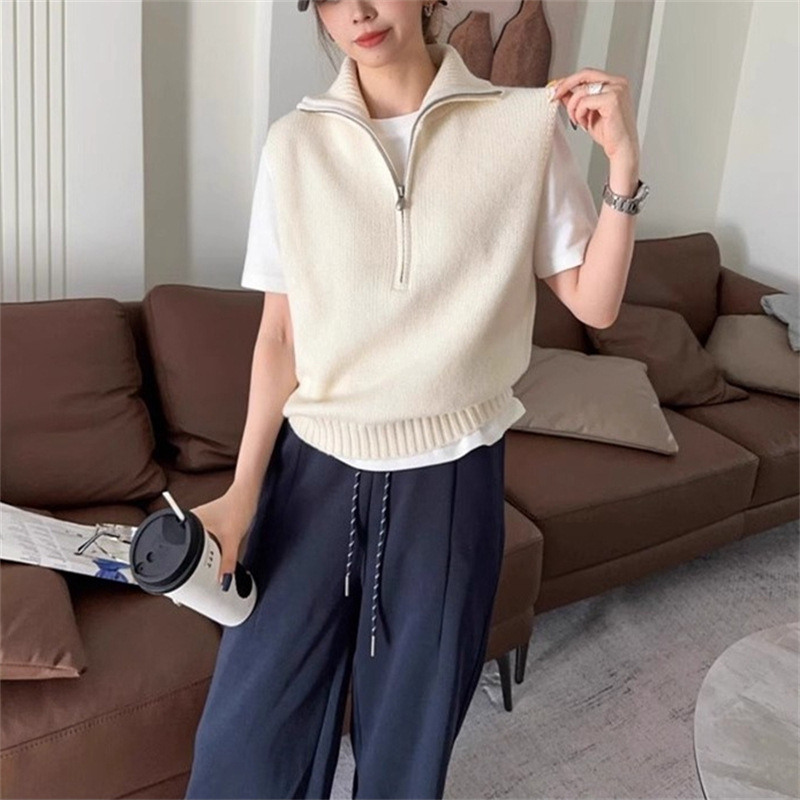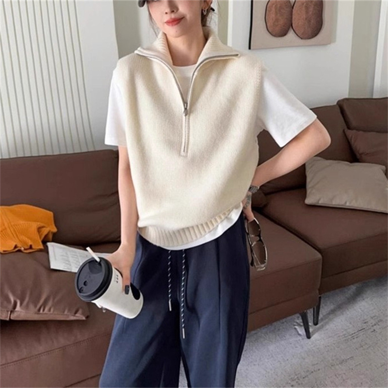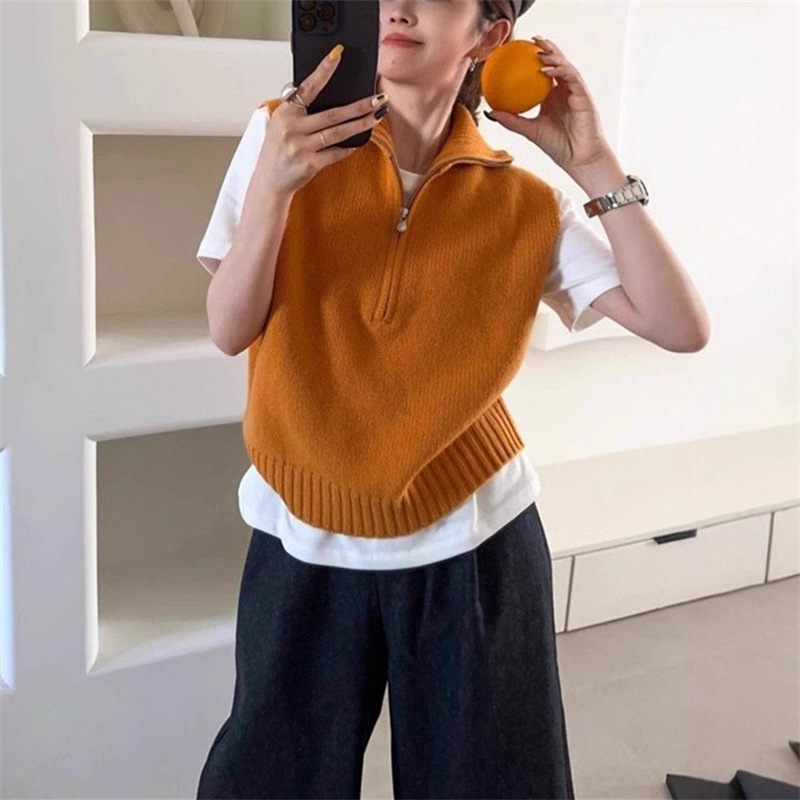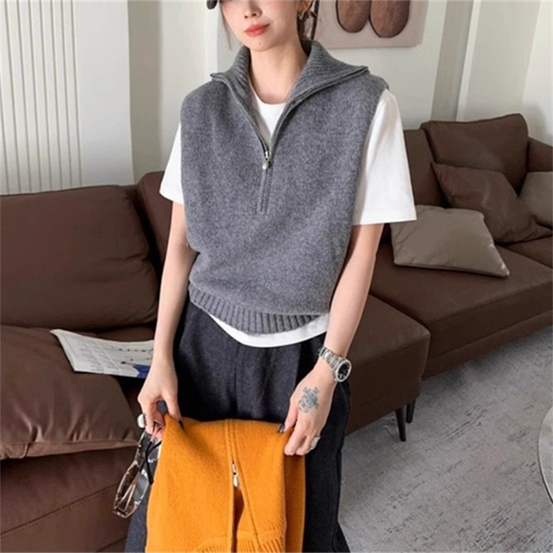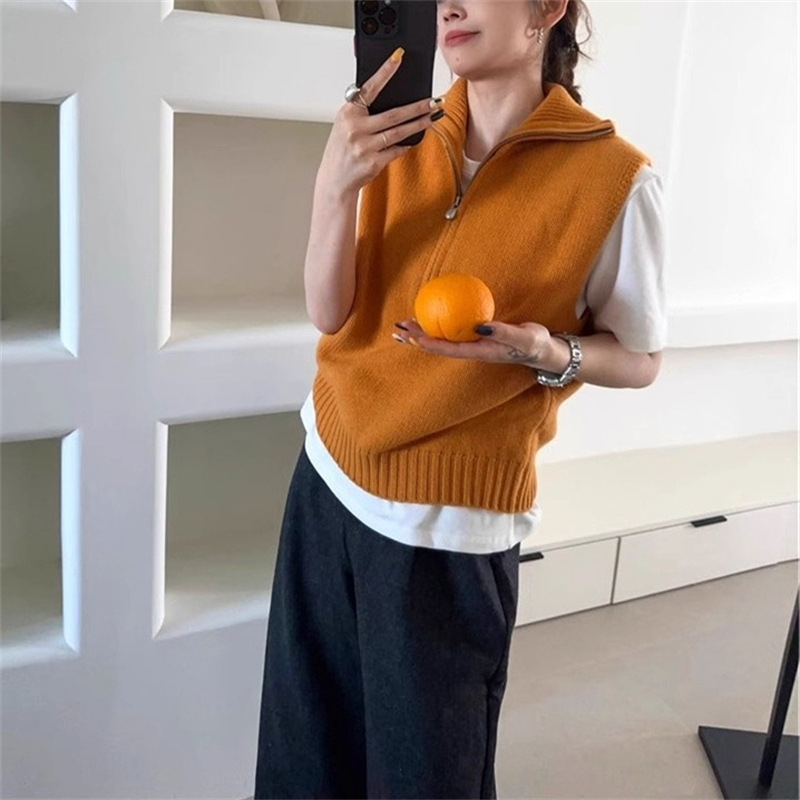【YW】无忧购 松弛感复古半拉链无袖针织马甲81396(截单后3-5天发货)