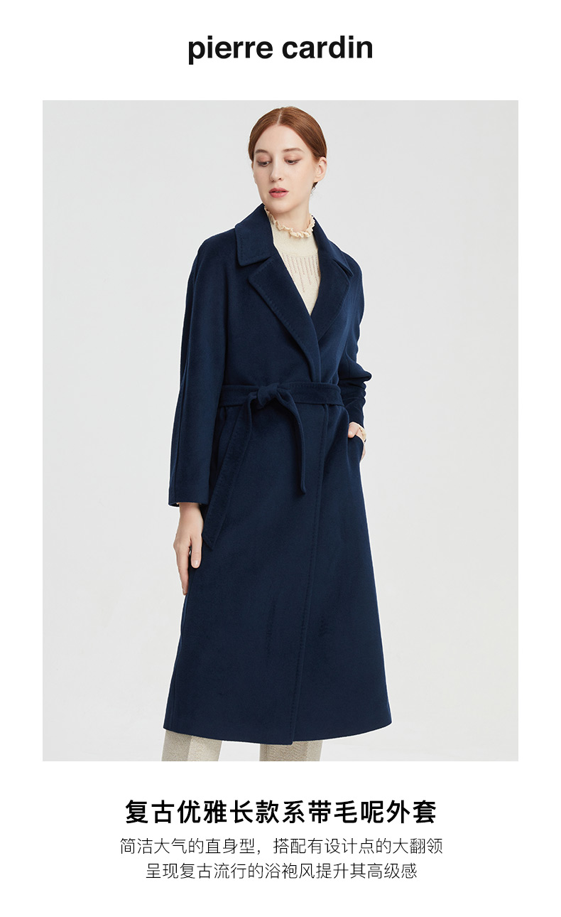 皮尔卡丹女装秋季新款淑女优雅系带毛呢大衣P1436C1985