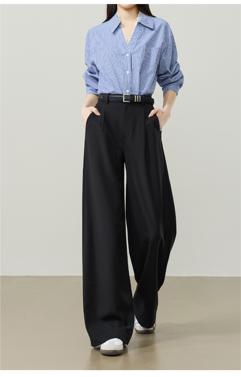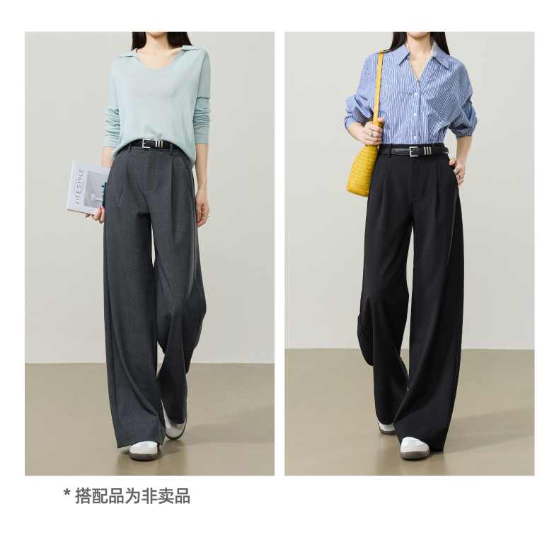【超值必入!高智-西装-阔腿裤】逸阳春新款格雷系高腰垂感休闲直筒长裤小个子6008
