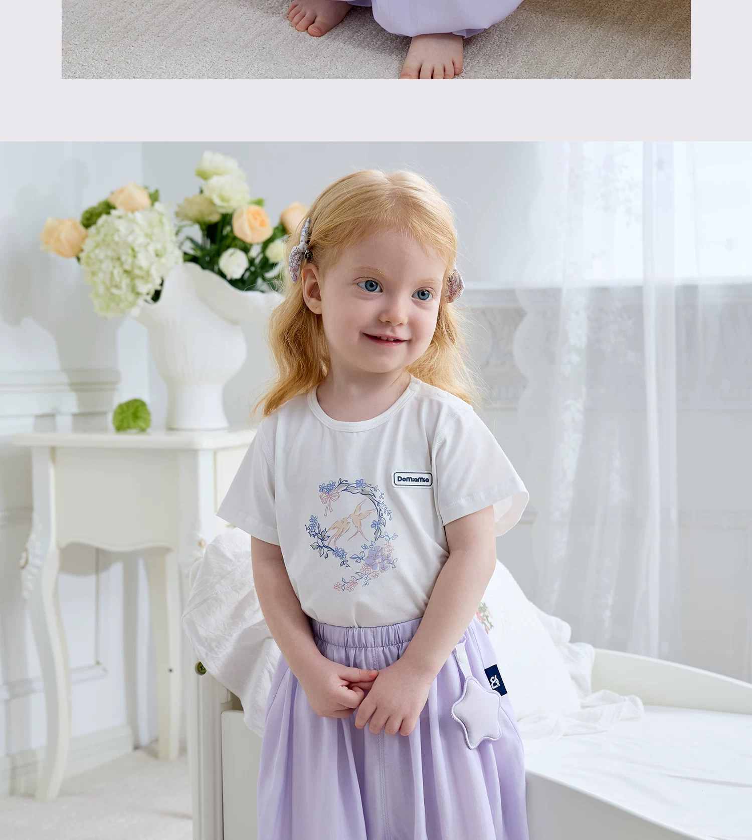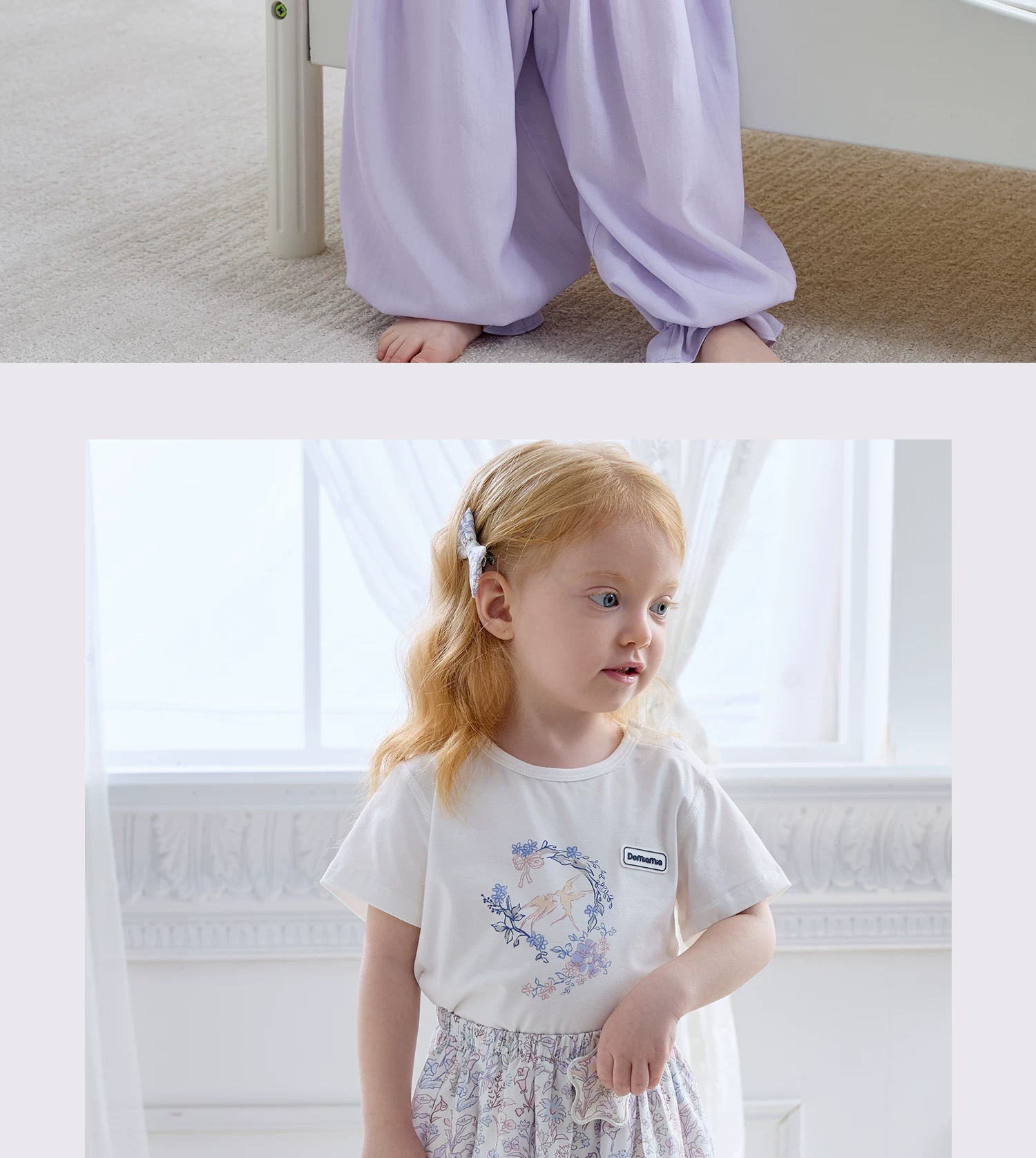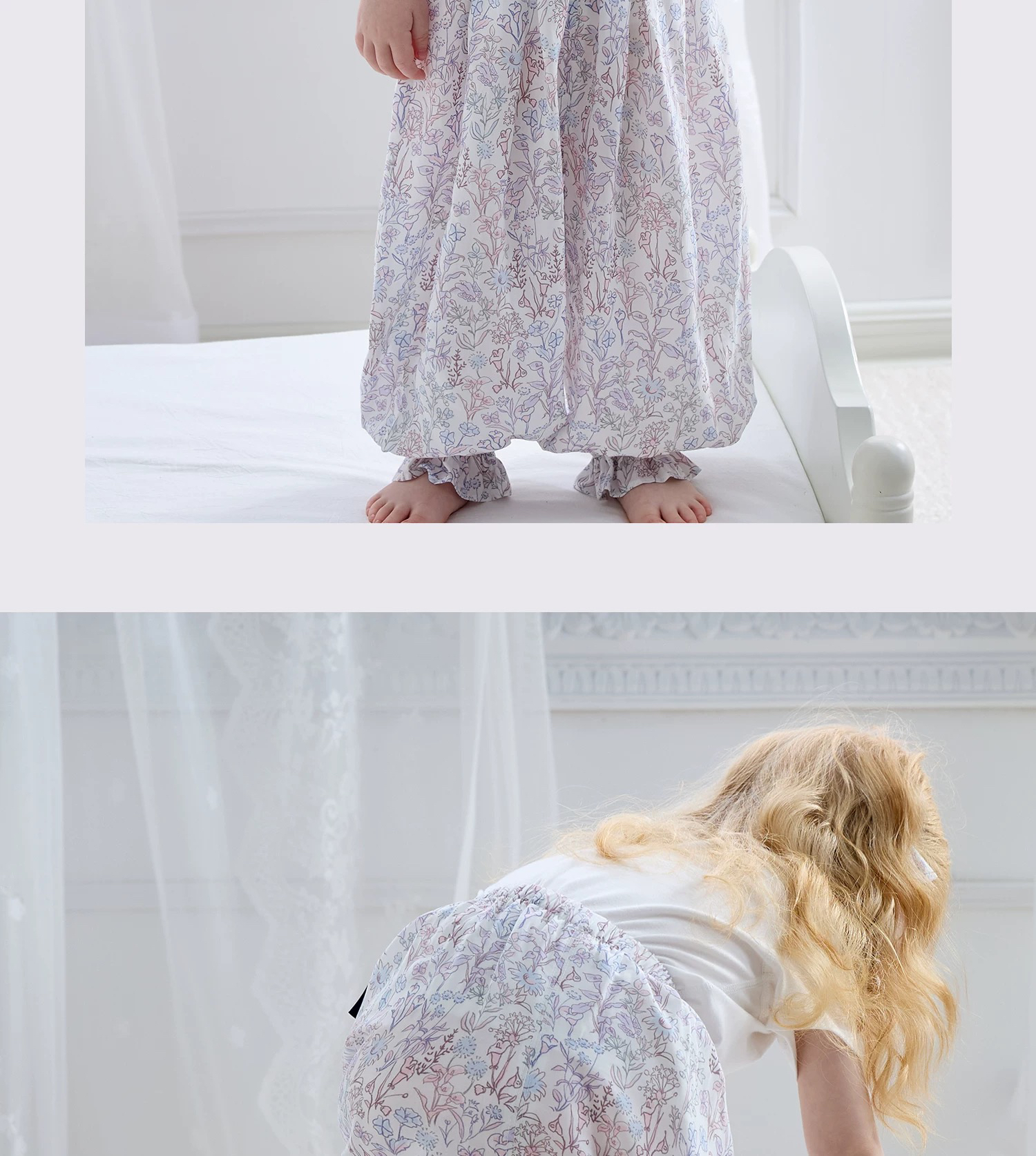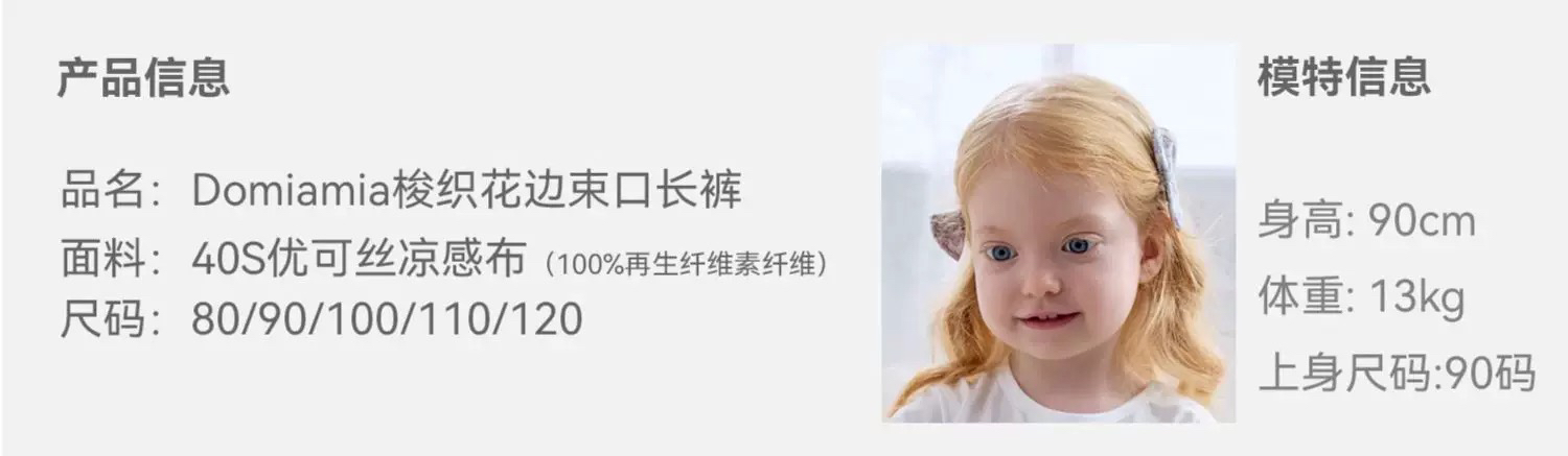 Domiamia 女宝宝梭织花边束口长裤 防蚊清凉家居裤 轻薄透气