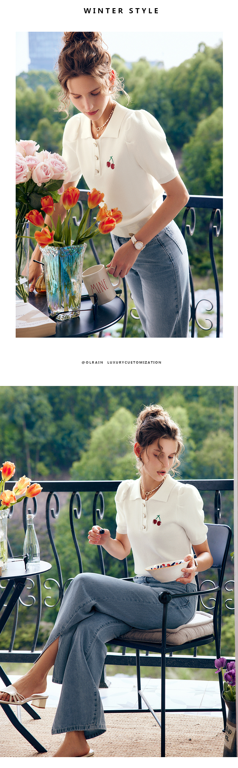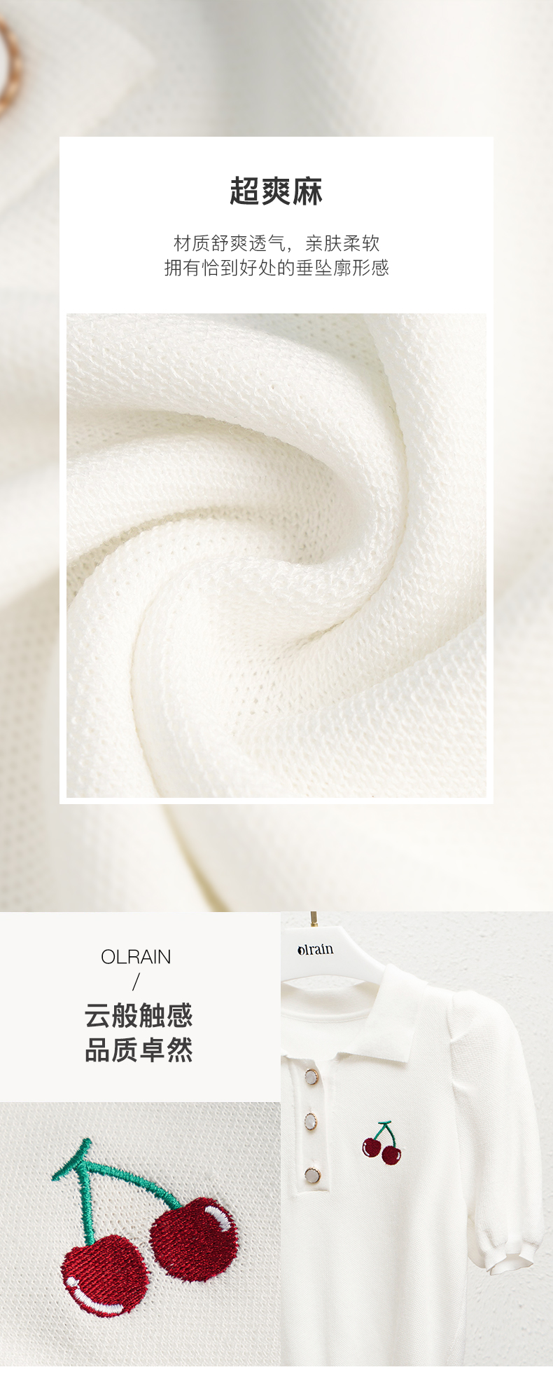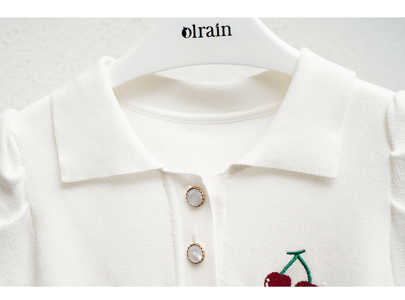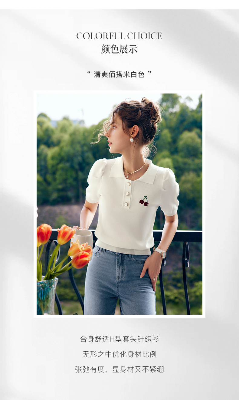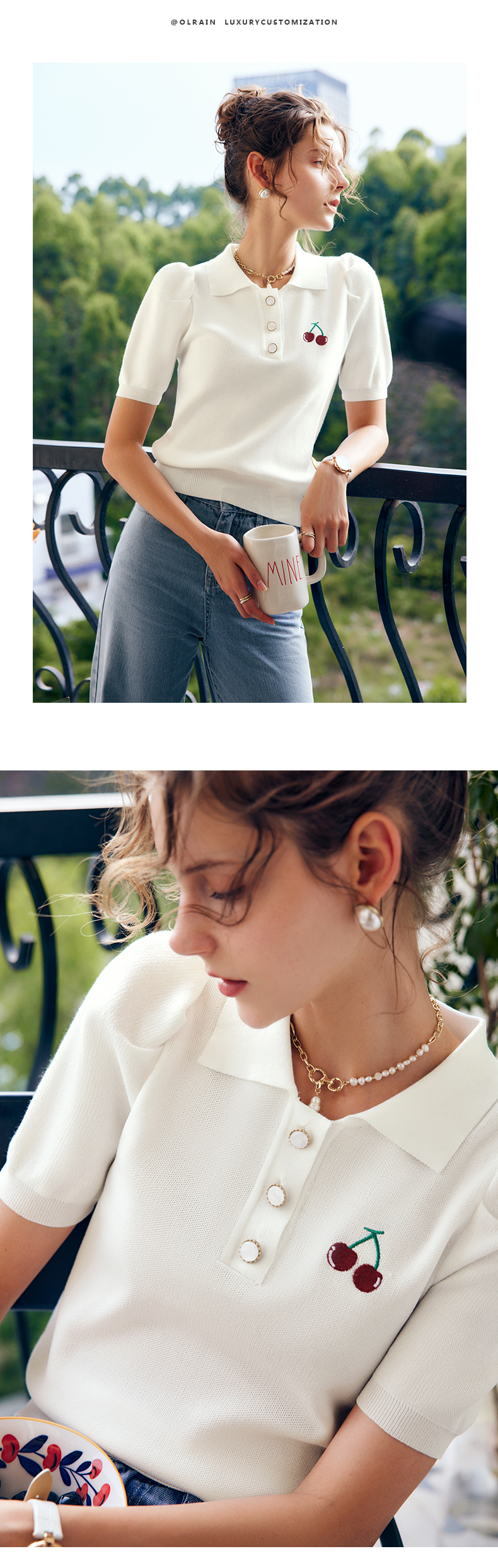 欧芮儿OLrain法式白色POLO领针织衫女夏季2022新款修身套头衫上衣