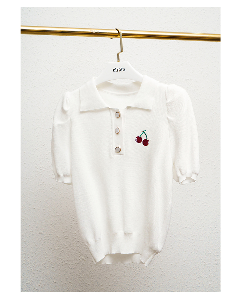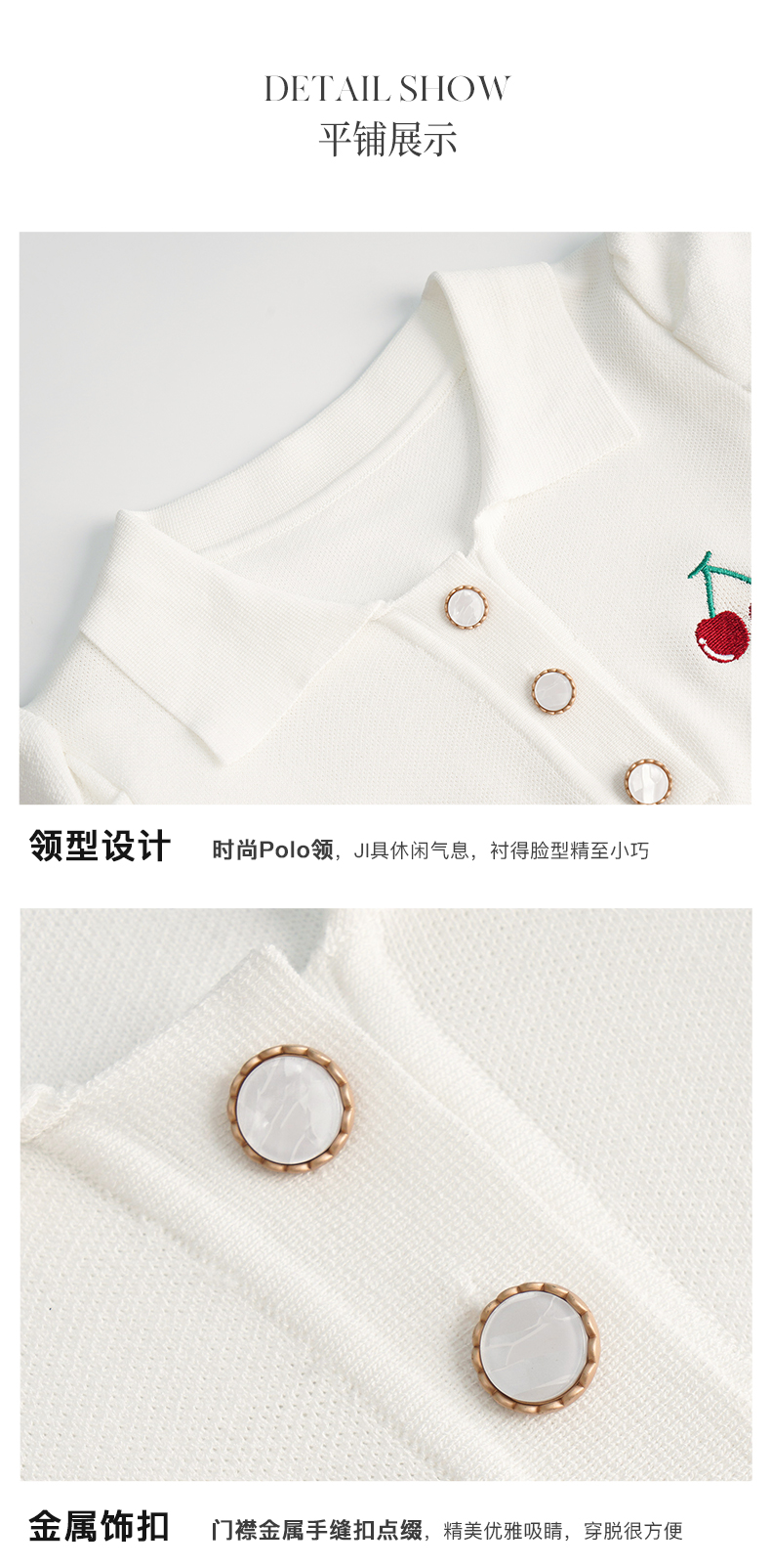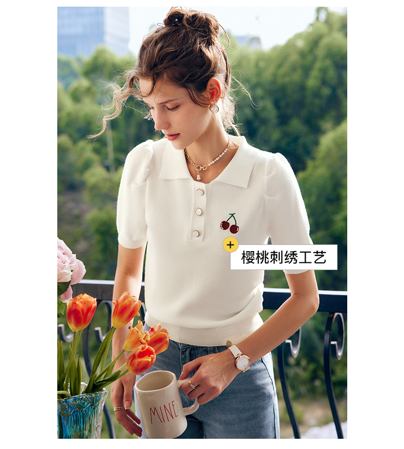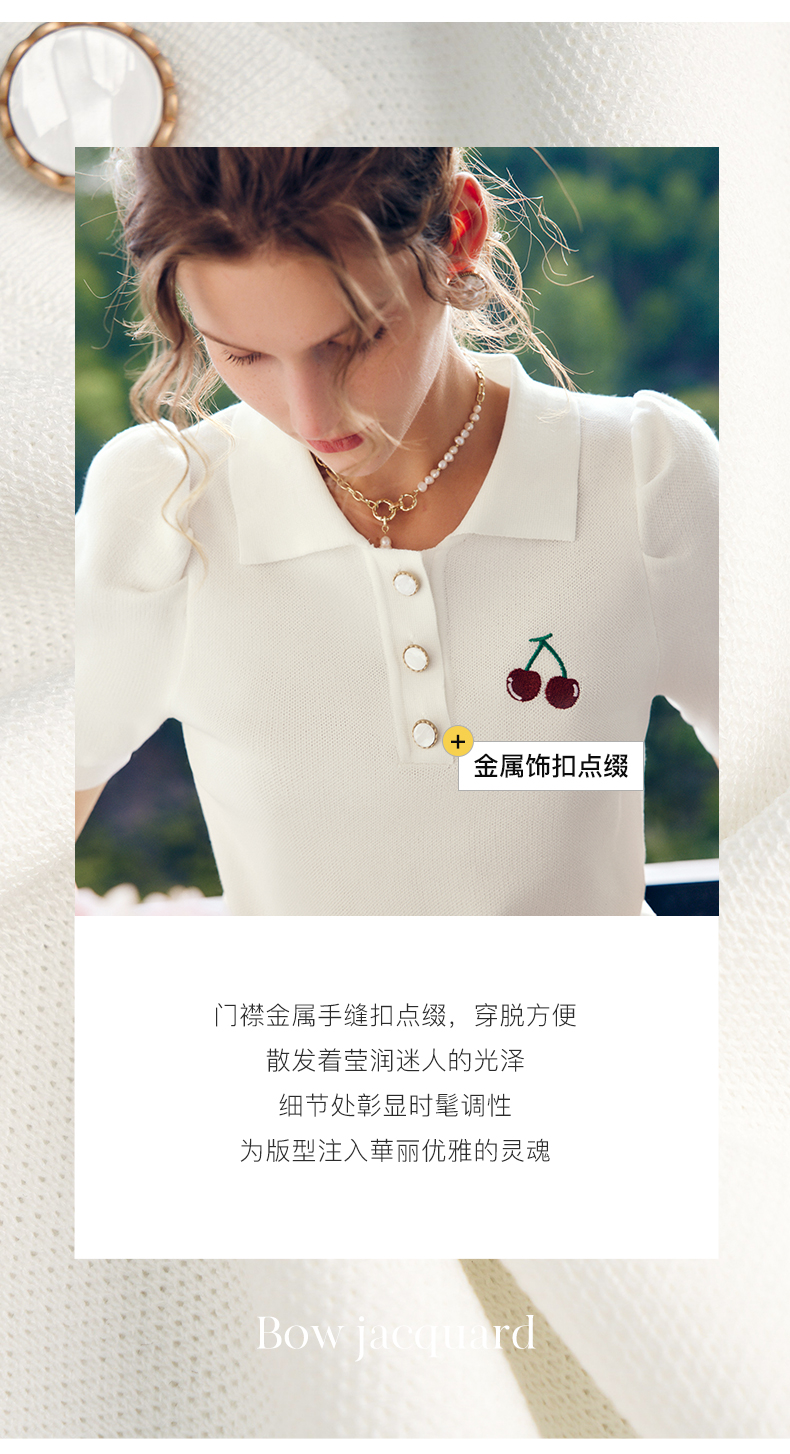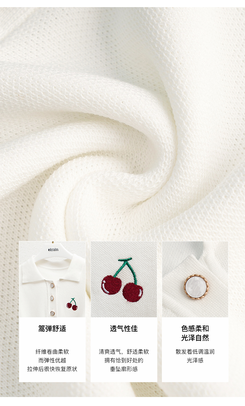 欧芮儿OLrain法式白色POLO领针织衫女夏季2022新款修身套头衫上衣