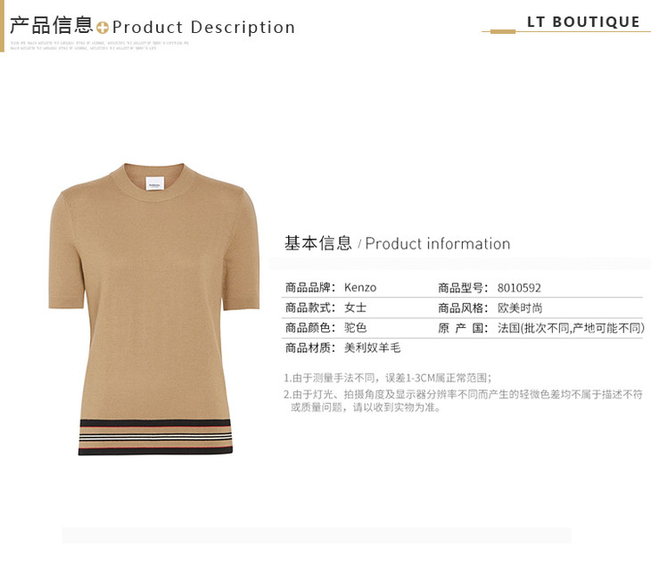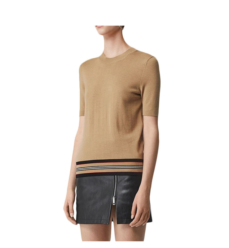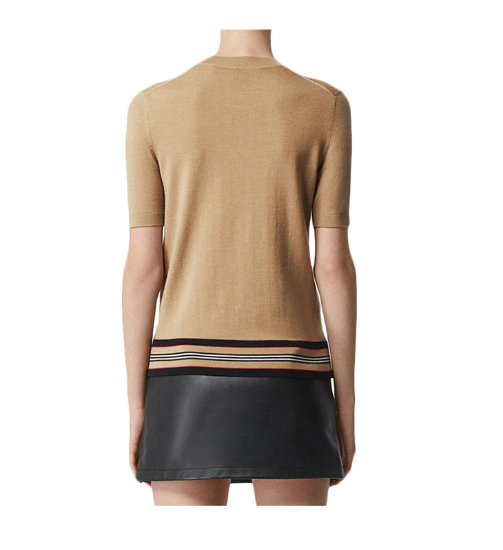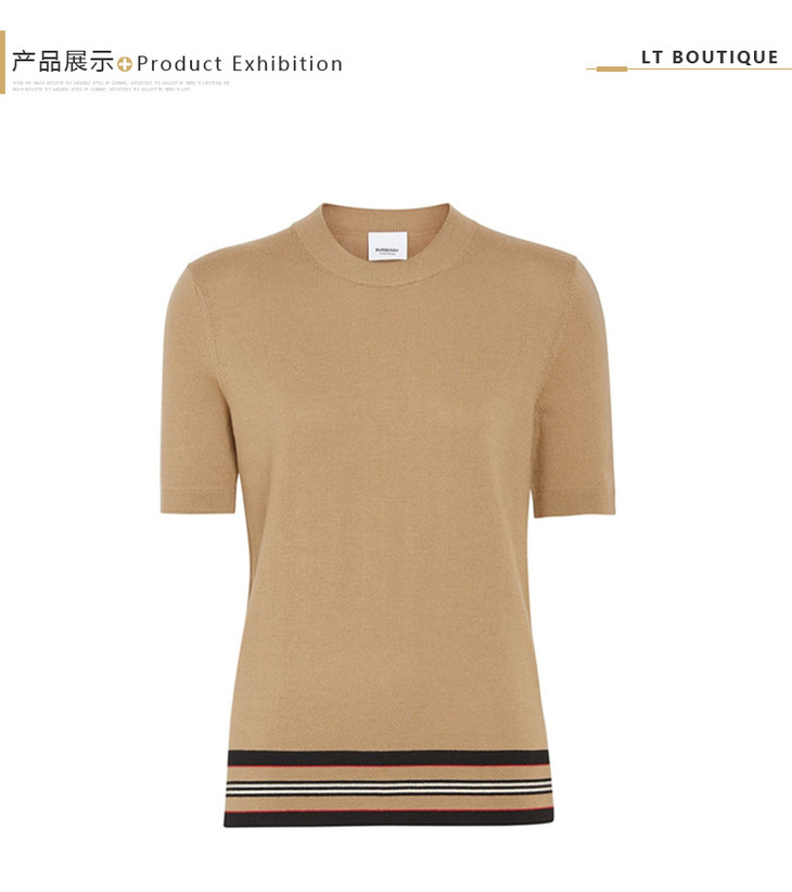 【二】BURBERRY 博柏利 女士驼色美利奴羊毛短袖毛衫 卡其色 8010592 A1420
