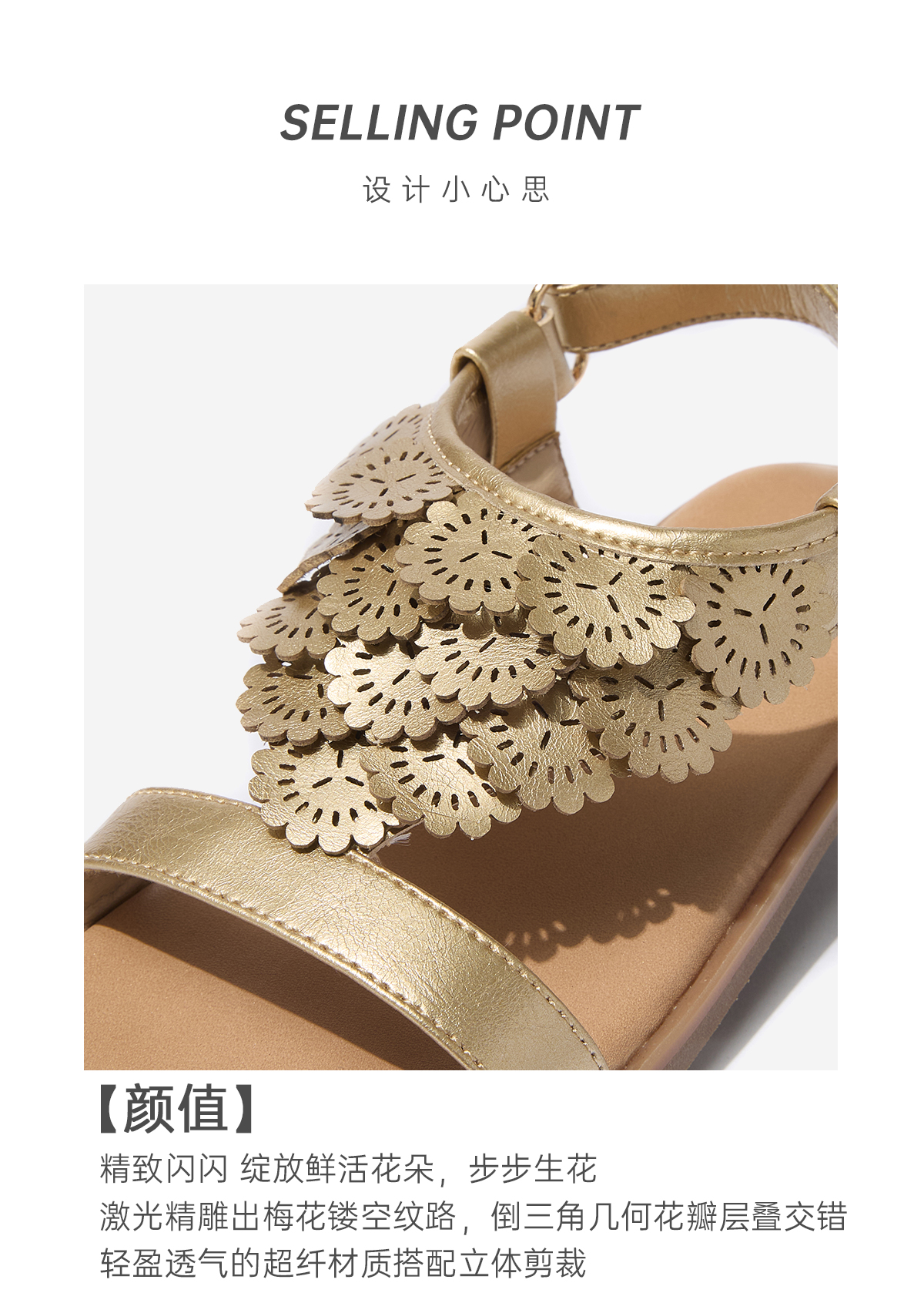 littletime女童凉鞋2025夏新款儿童洋气时尚繁花公主鞋沙滩鞋